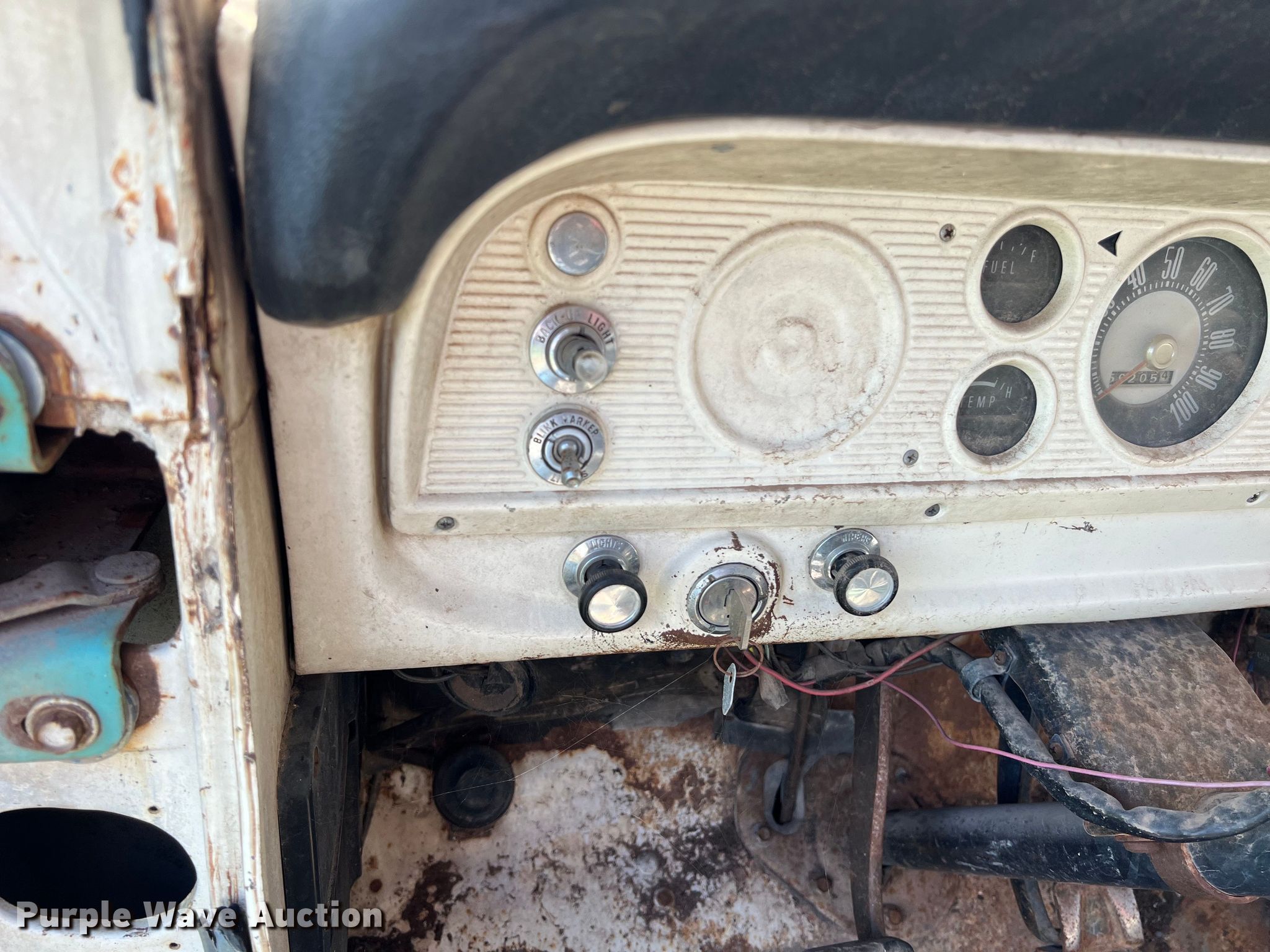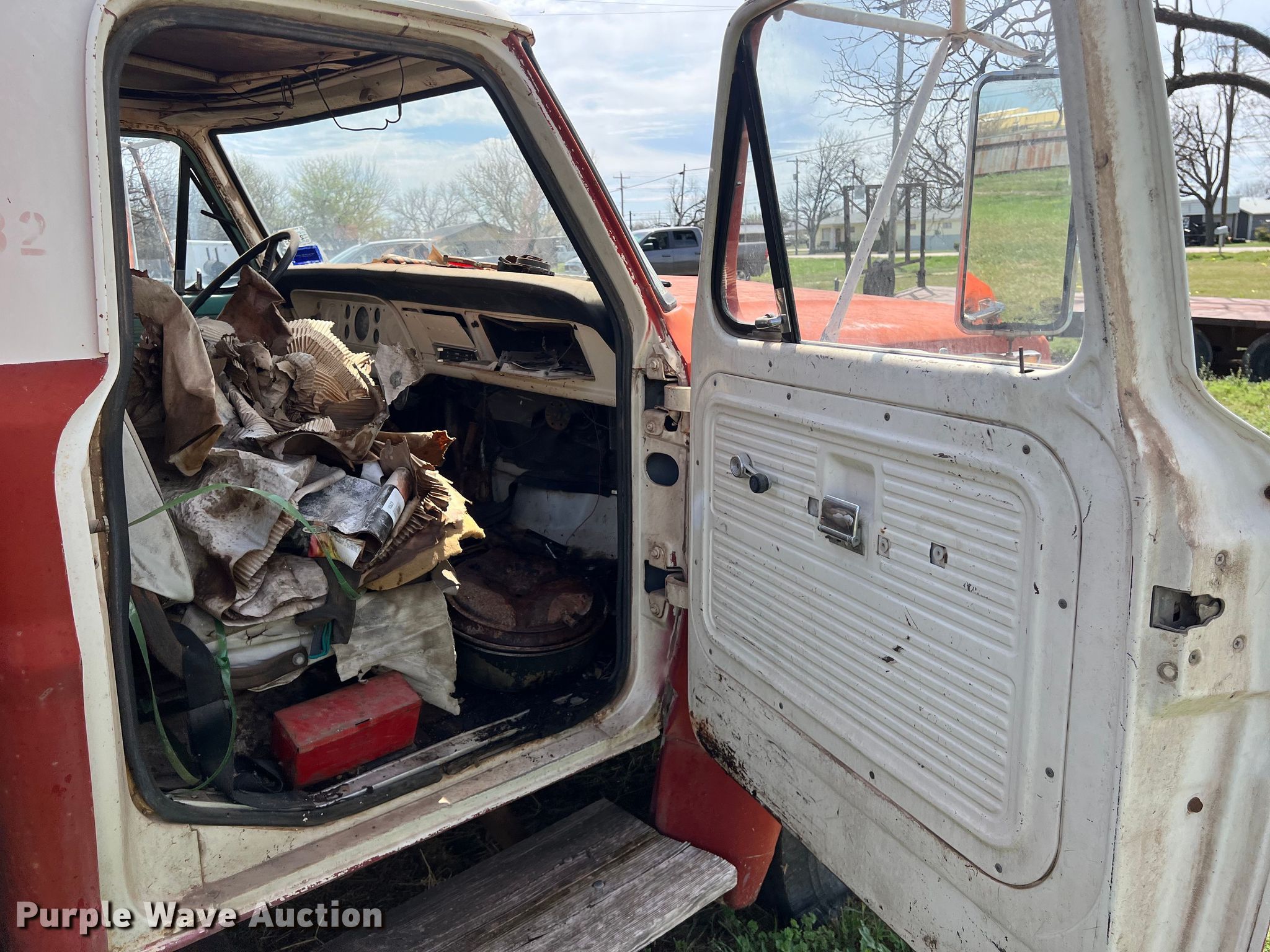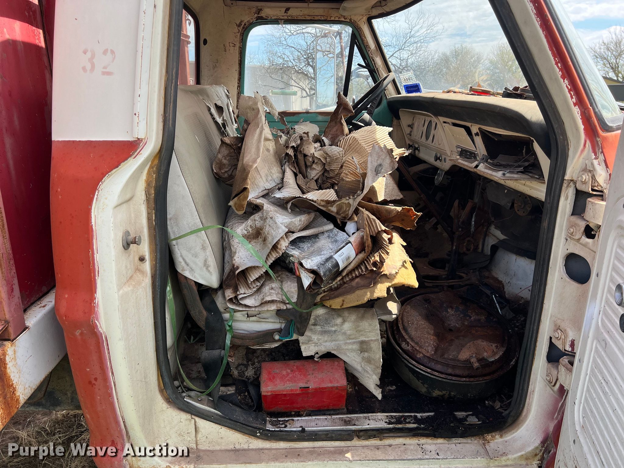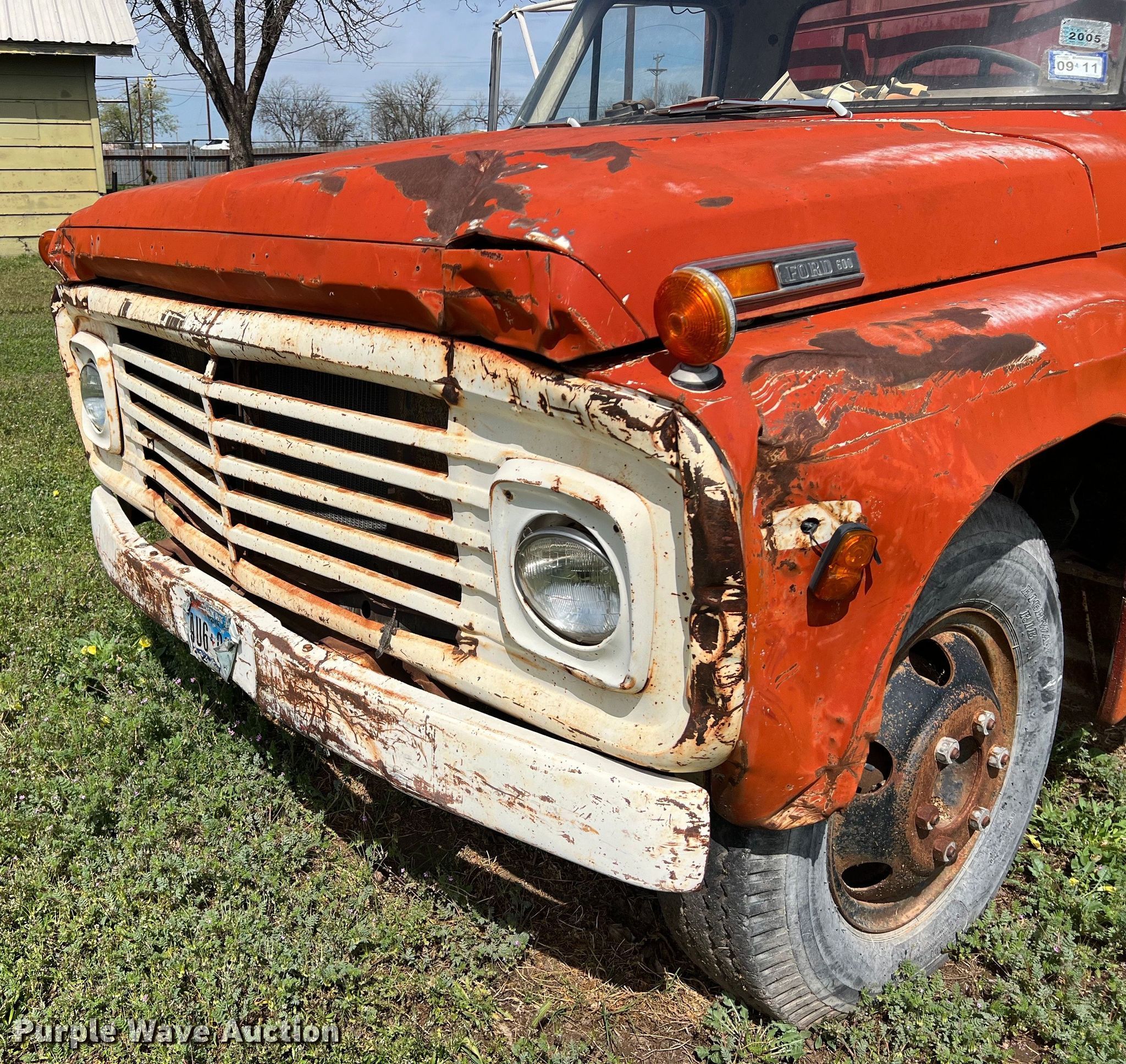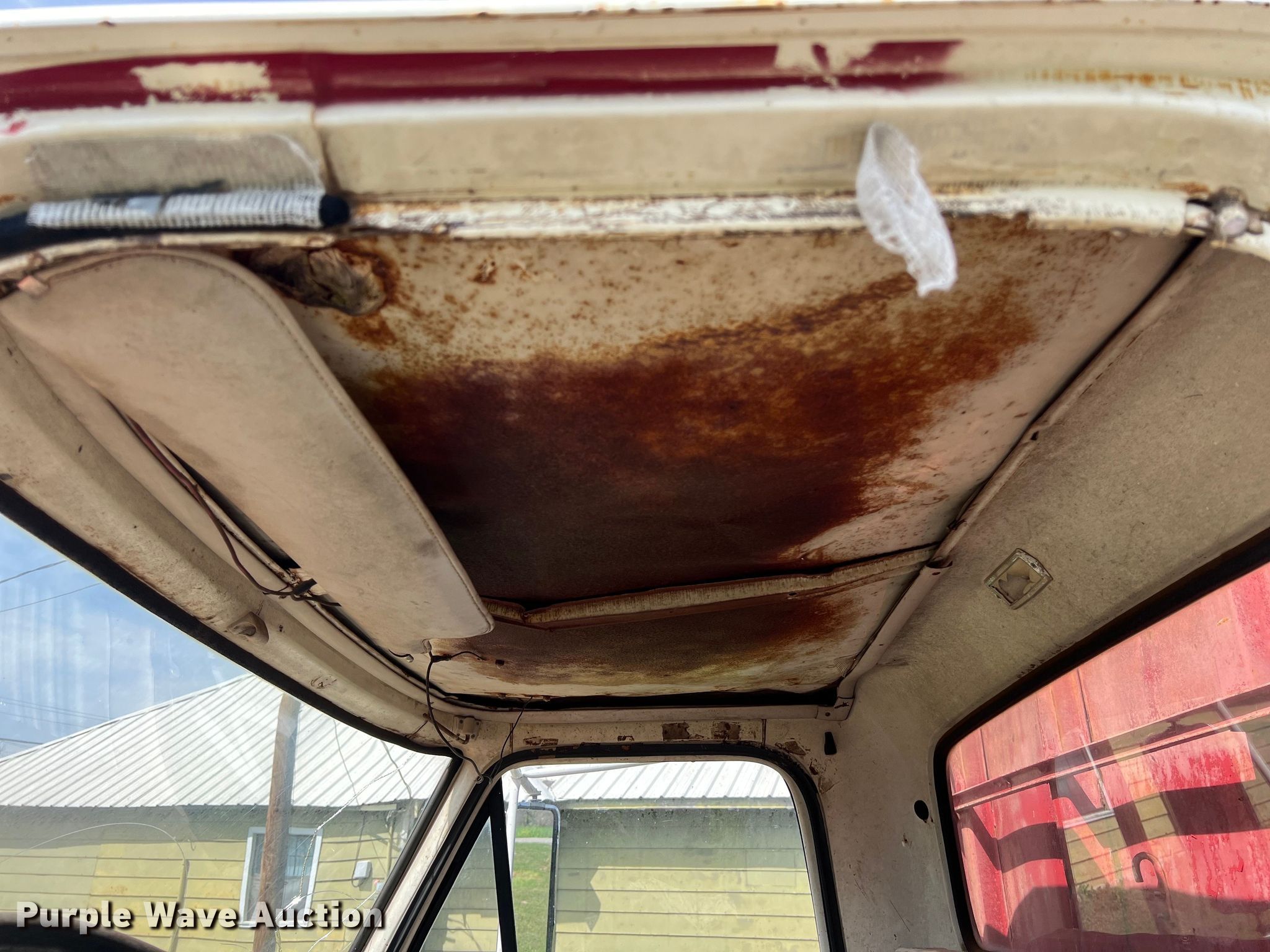 1968 Ford F600 grain truck. Miles: 59,205 on odometer, VIN: F60CKC75260. Engine Cylinders: 8, Fuel type: Gas. Transmission Manual, Speed: 5. Chassis Axles: Single, Suspension: Spring, Brakes: Hydraulic, PTO. Interior Heat. Features Dump bed Fruehauf, 15' 6" L x 7' 10" W, Side board height: 40", Bed type: Steel, Ram: Dual, End gate: Manual. Tires Size: 9.00-20. Notes Windshield chipped or cracked, Bed contents included, Flat tires, Non-operational unit. Texas title. Title distribution may be delayed up to 14 days from verification of funds. 1400 Avenue C. Ballinger, TX 76821
