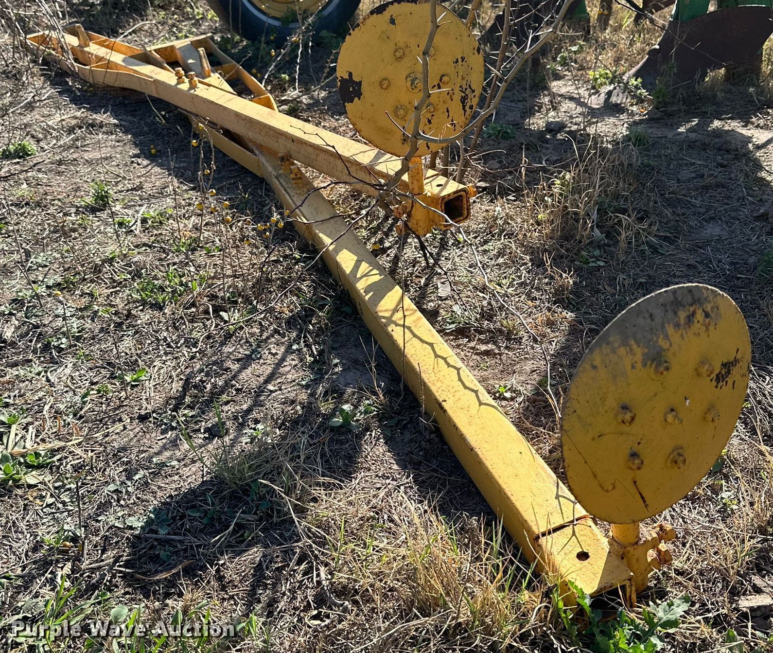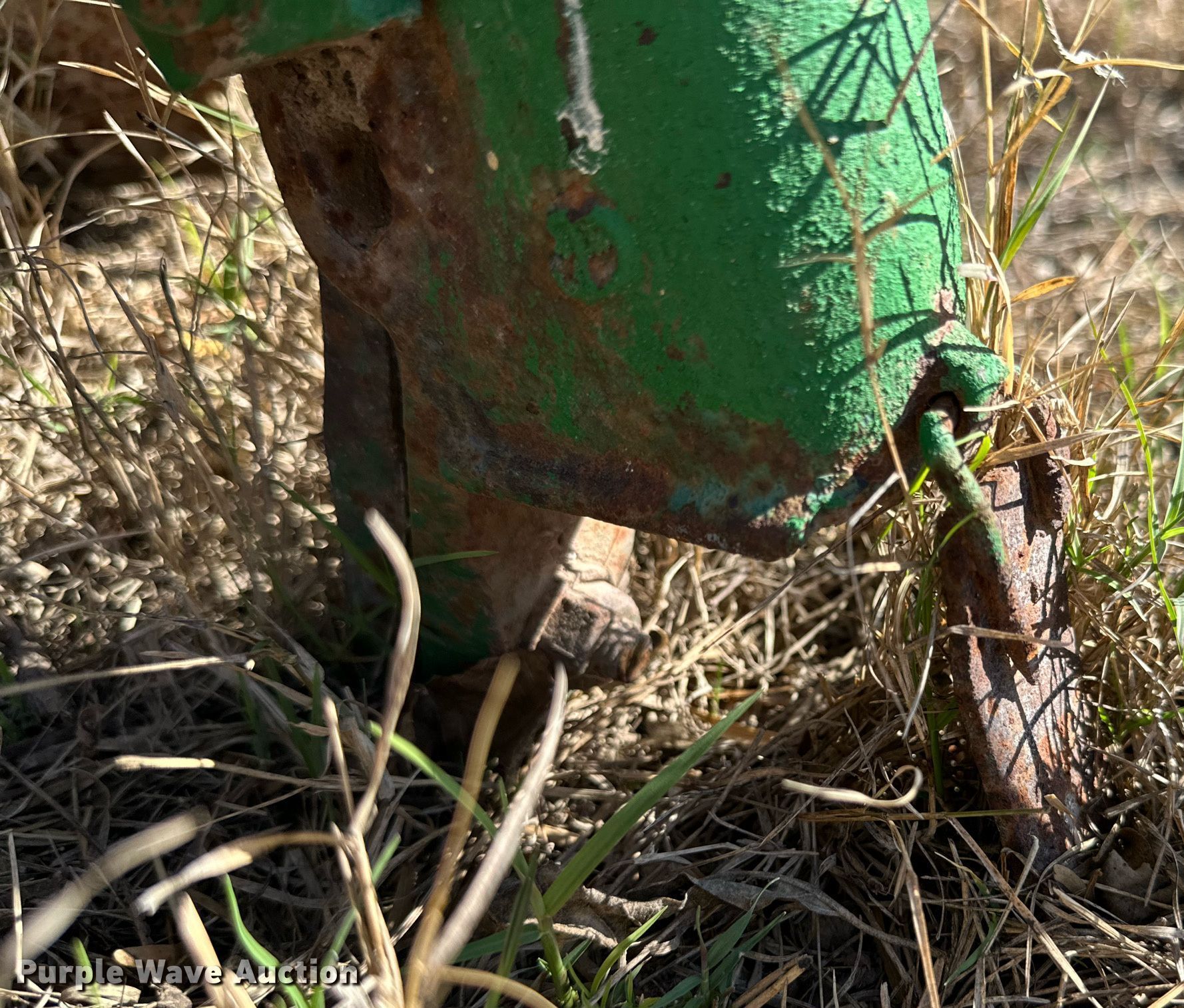 John Deere planter. Width: 18', Row units: 6, Row spacing: 36". Features Frame Hitch: Three point, Marker arm, Seed delivery Individual seed hoppers, Row units Meter drive: Ground, Down pressure: Spring. Tires Drive/ outside tire size: 225/70R15. Notes Marker arms removed but included, Seed hopper lid missing. 338 Willory Farm Road LLC. 338 Willory Farm RD. Quemado, TX 78877
