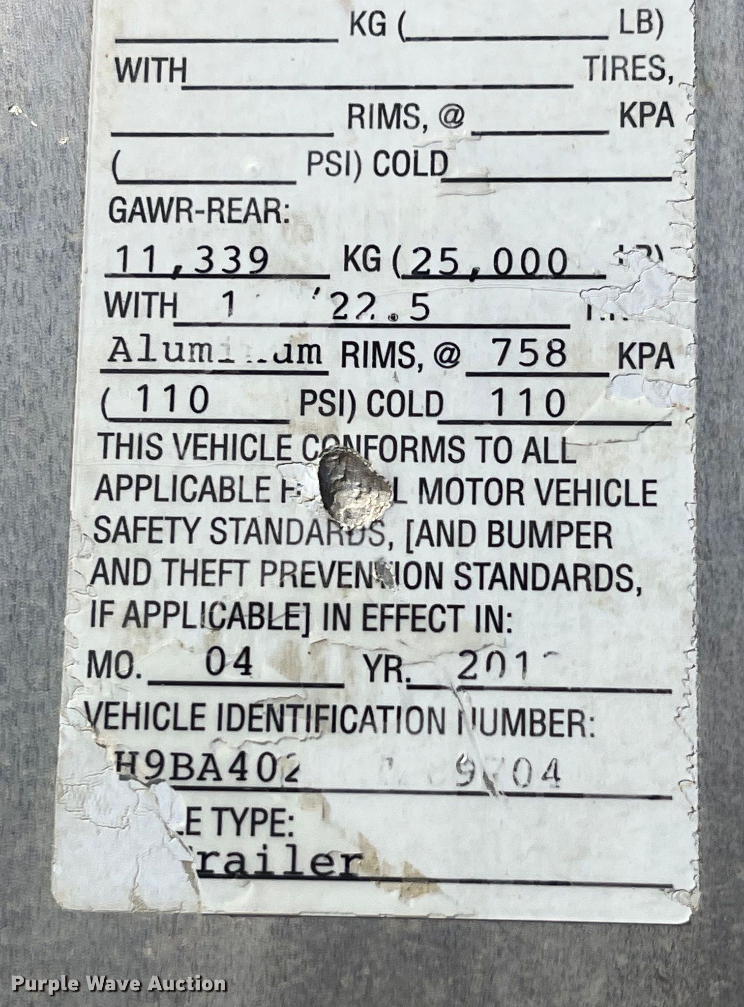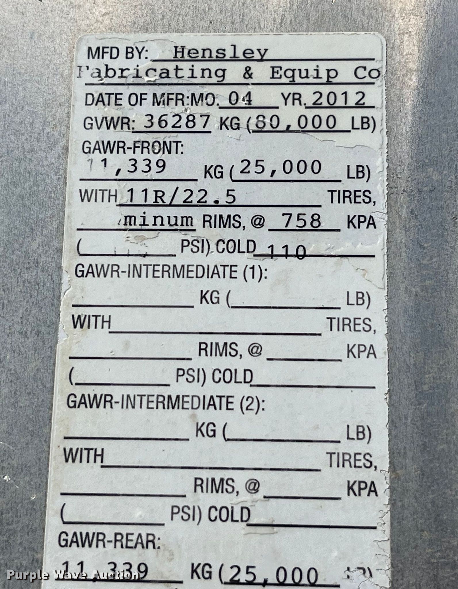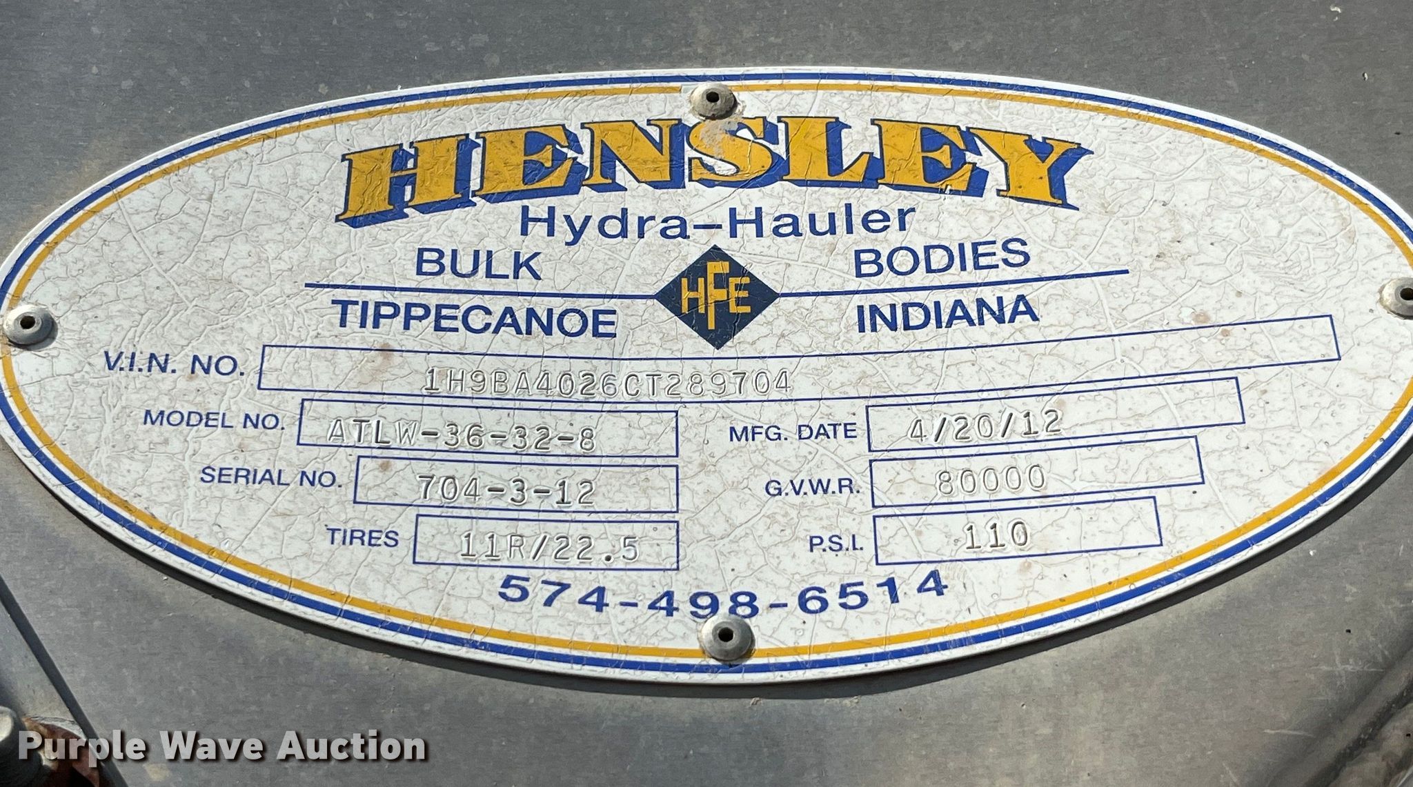 Purple Wave is selling a used Fertilizer or Feed Delivery Trailer in Missouri. This item is a 2012 Hensley ATLW-36-32-8 feed delivery trailer with the following: VIN: 1H9BA4026CT289704, Unit #: 3832