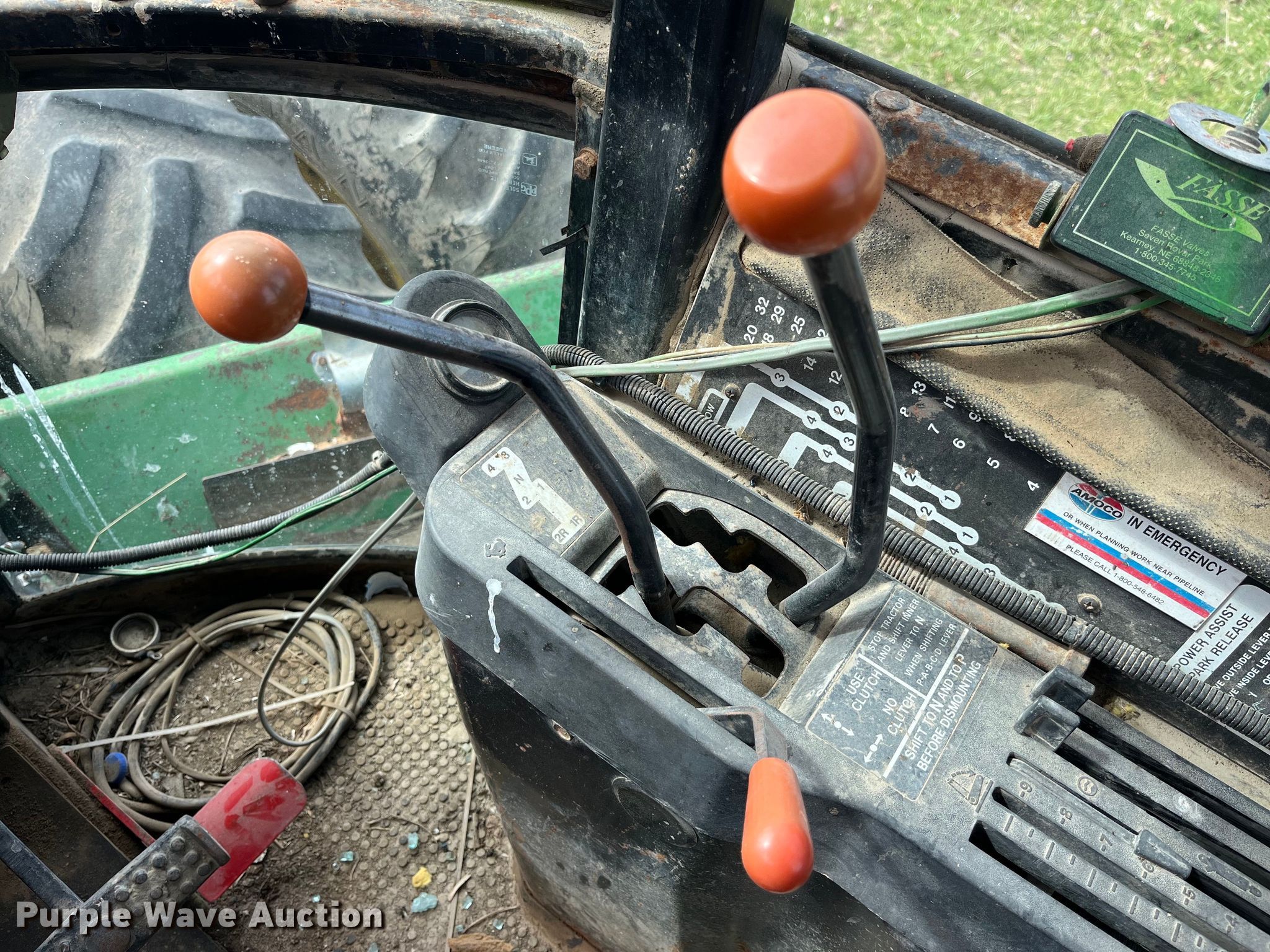 John Deere 8630 4WD tractor. Hours: 8,886 on meter, Serial: 6619AR-01 029931RG. Engine John Deere, Cylinders: 6, Fuel type: Diesel. Transmission Quad-range, 16F - 6R, Differential lock. Operators station AC, Heat. Features PTO: 1000, Three point, Seven pin outlet, Hydraulic remote sets Rear: 5, Front blade John Deere, Width: 156.5", Height: 33", Blade controls: Two-lever. Tires Size: 20.8-38, Duals. Notes Engine issues , Non-operational unit. Otter Creek Farms. Clarence, MO 63437