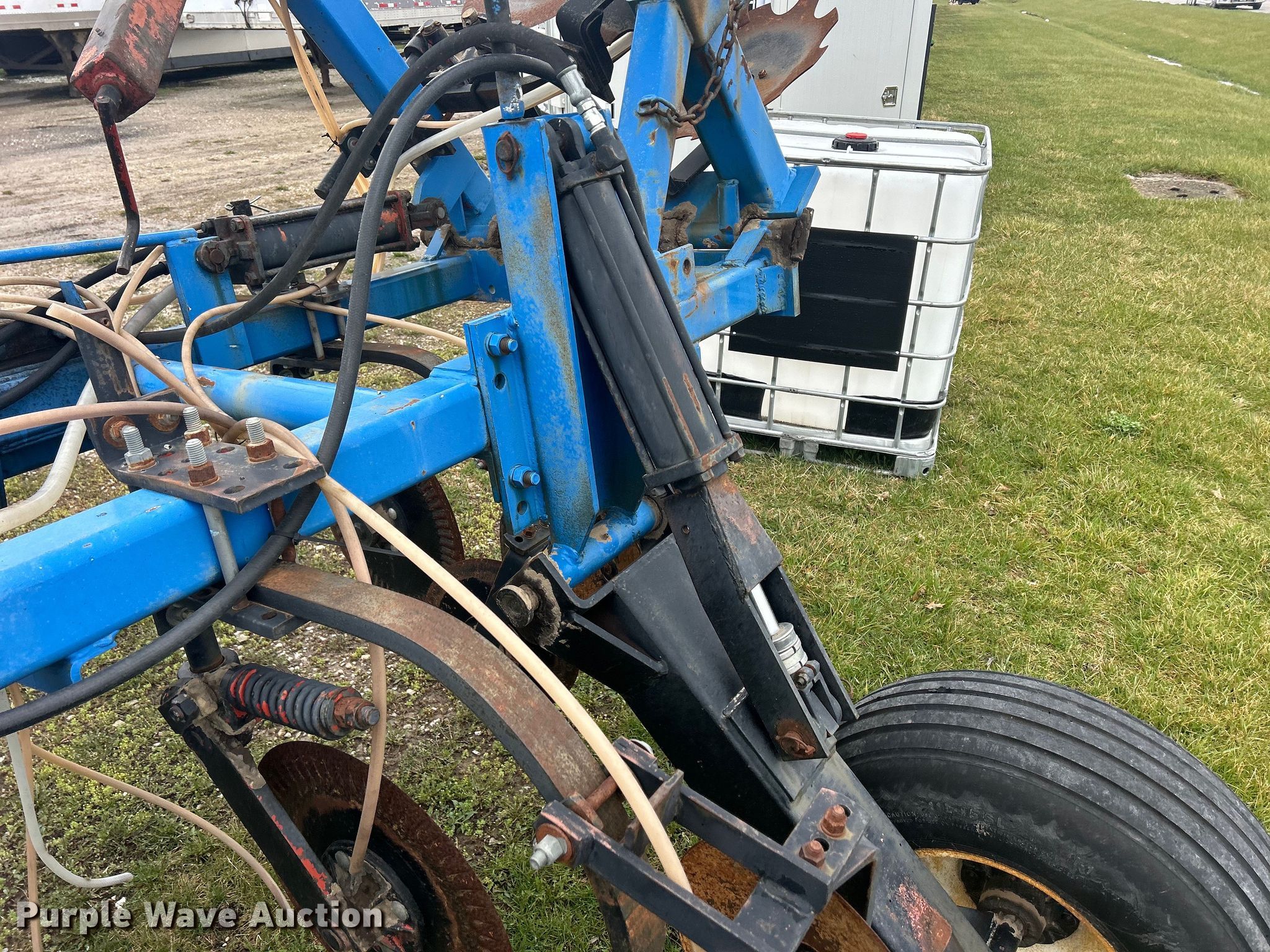 Blue Jet liquid fertilizer applicator. Features. Boom Width: 27', Sections: 3, Hydraulic fold, Hydraulic height control, Liquid/nh3 applicator Rows: 11, Spacing: 32", Delivery type: Knife. Tires Size: 11L-15. Quality Equipment. 1415 W Washington St. Mount Pleasant, IA 52641