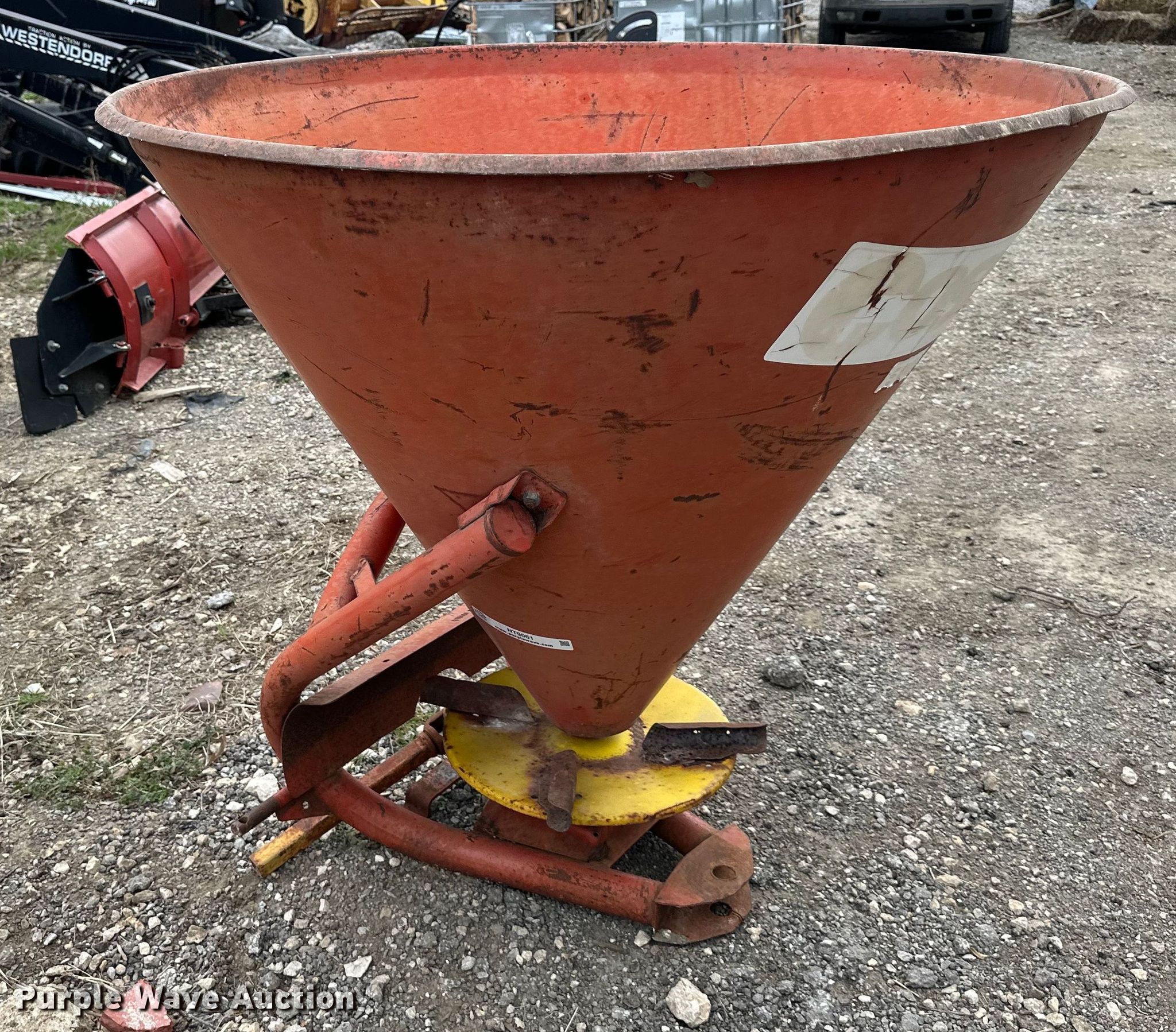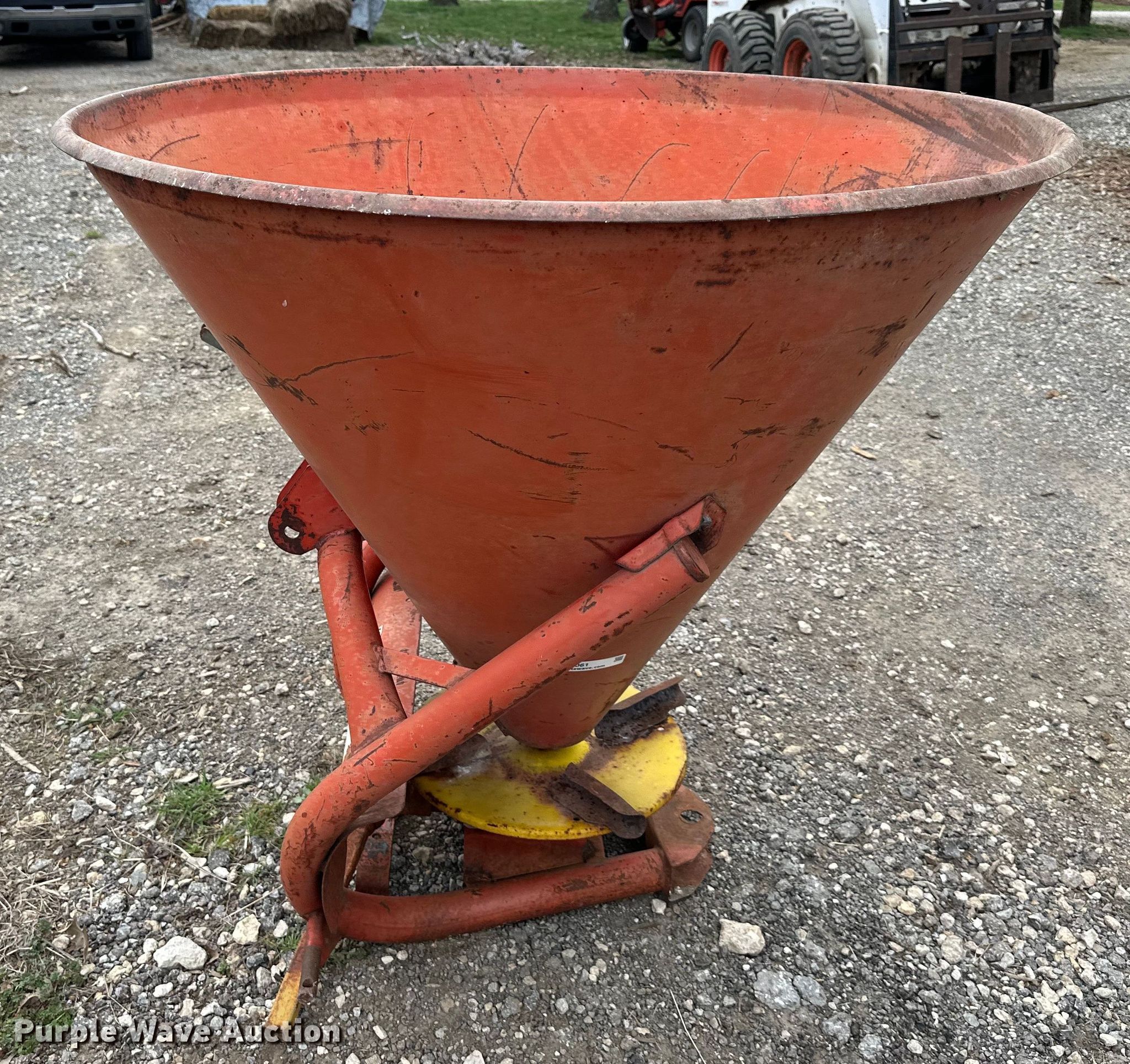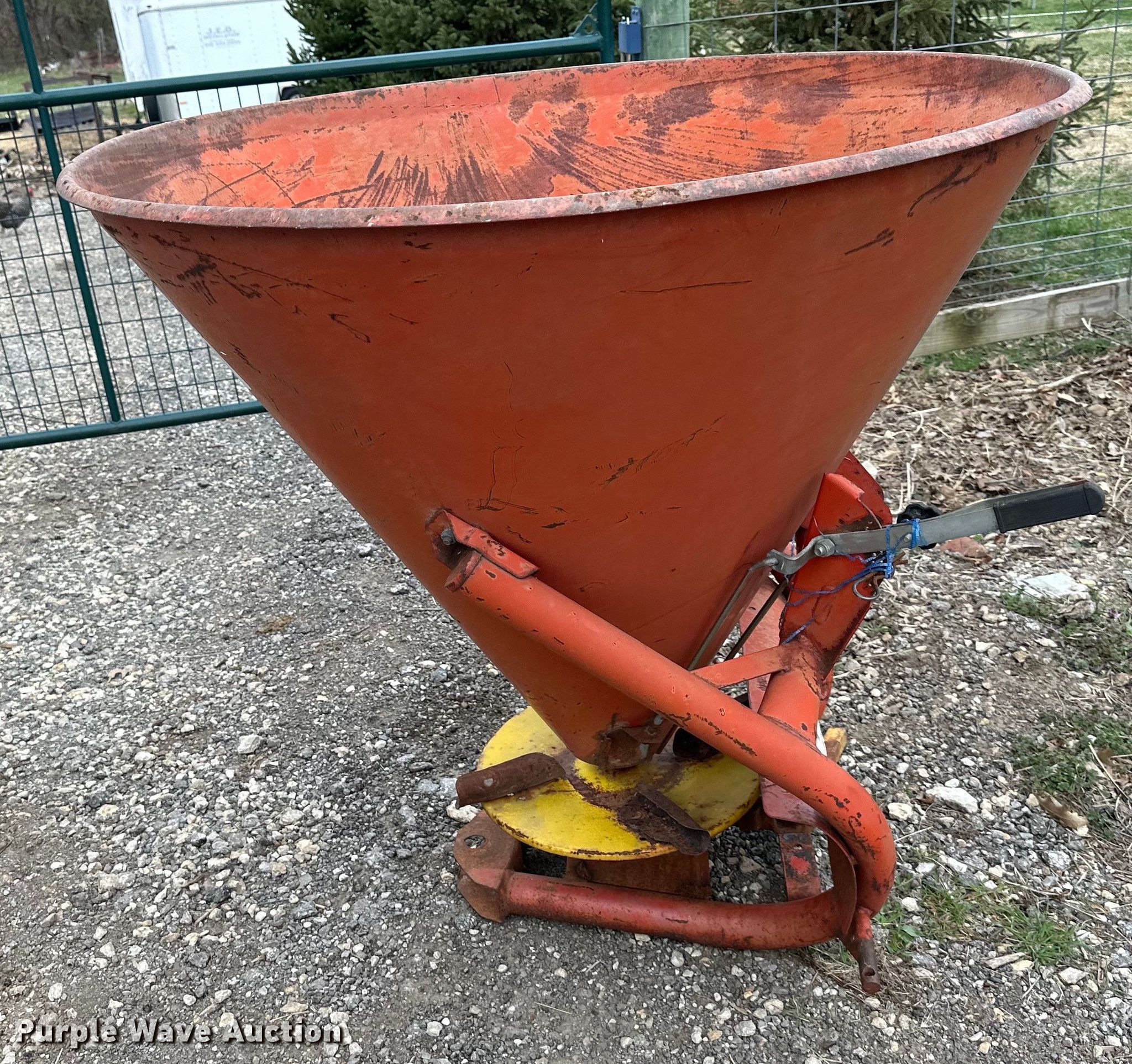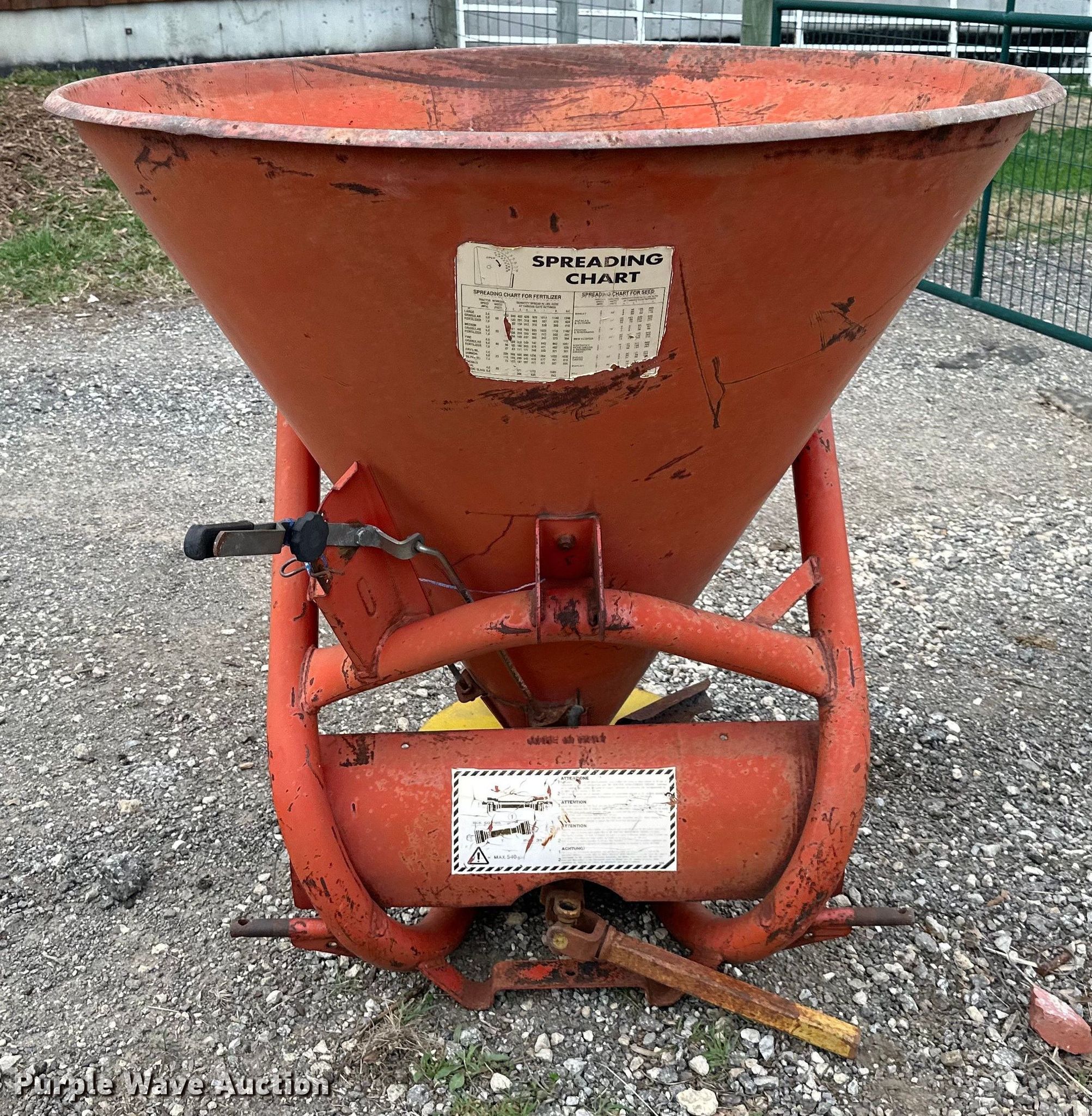Purple Wave is selling a used Applicator Attach. in Kansas. This item is a Spreader with the following: PTO: 540, Diameter: 45", Height: 40", Hitch: Three point