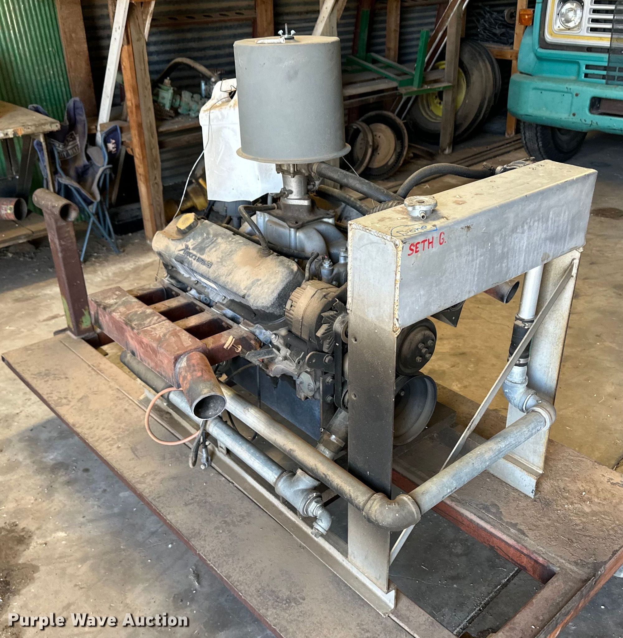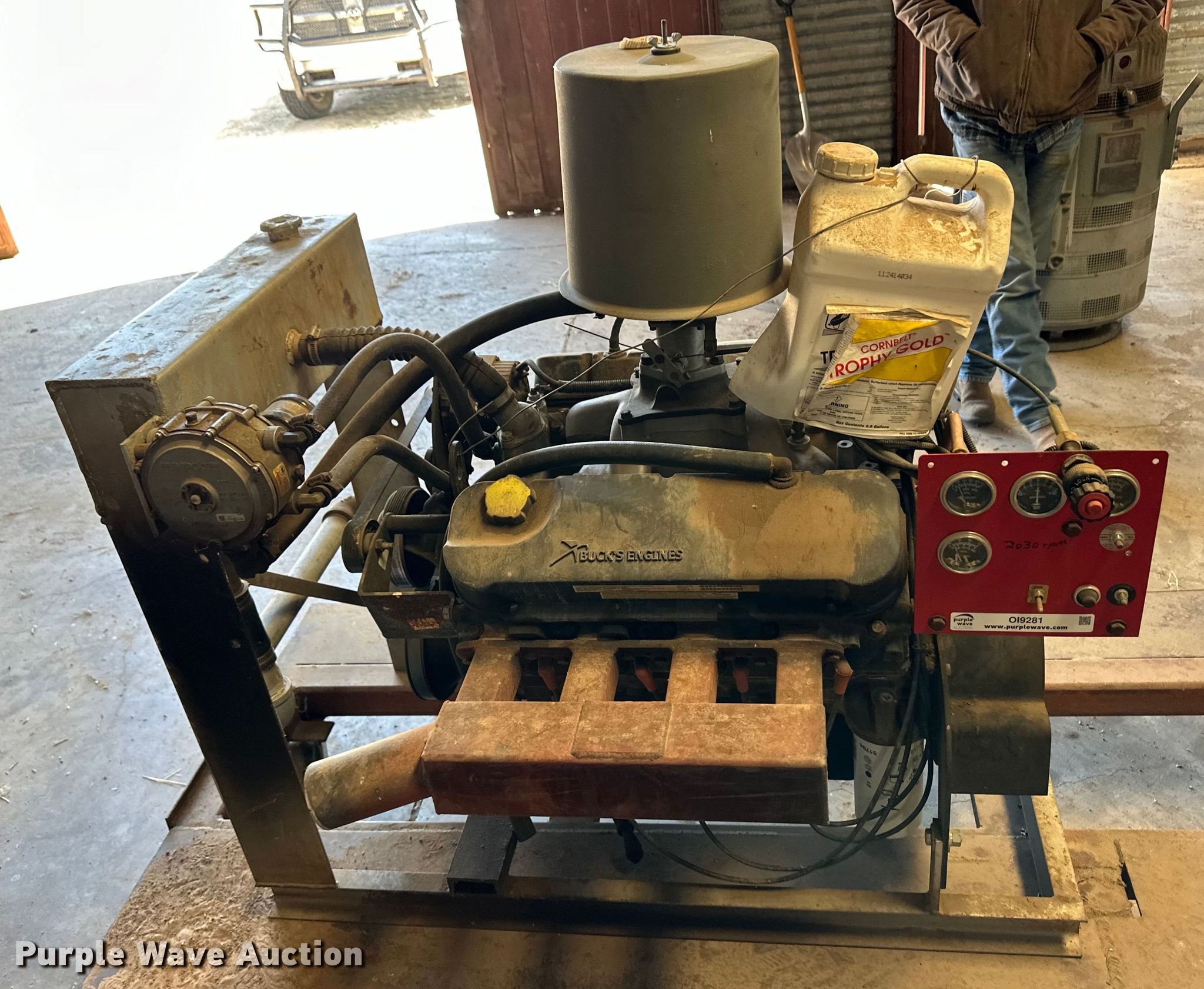 Irrigation pump. Engine. Buck's engine, Displacement: 8.0L, Cylinders: 8, Fuel type: LPG. Notes Possible engine issues, uses oil. Gillespie Farms. Moscow, KS 67952