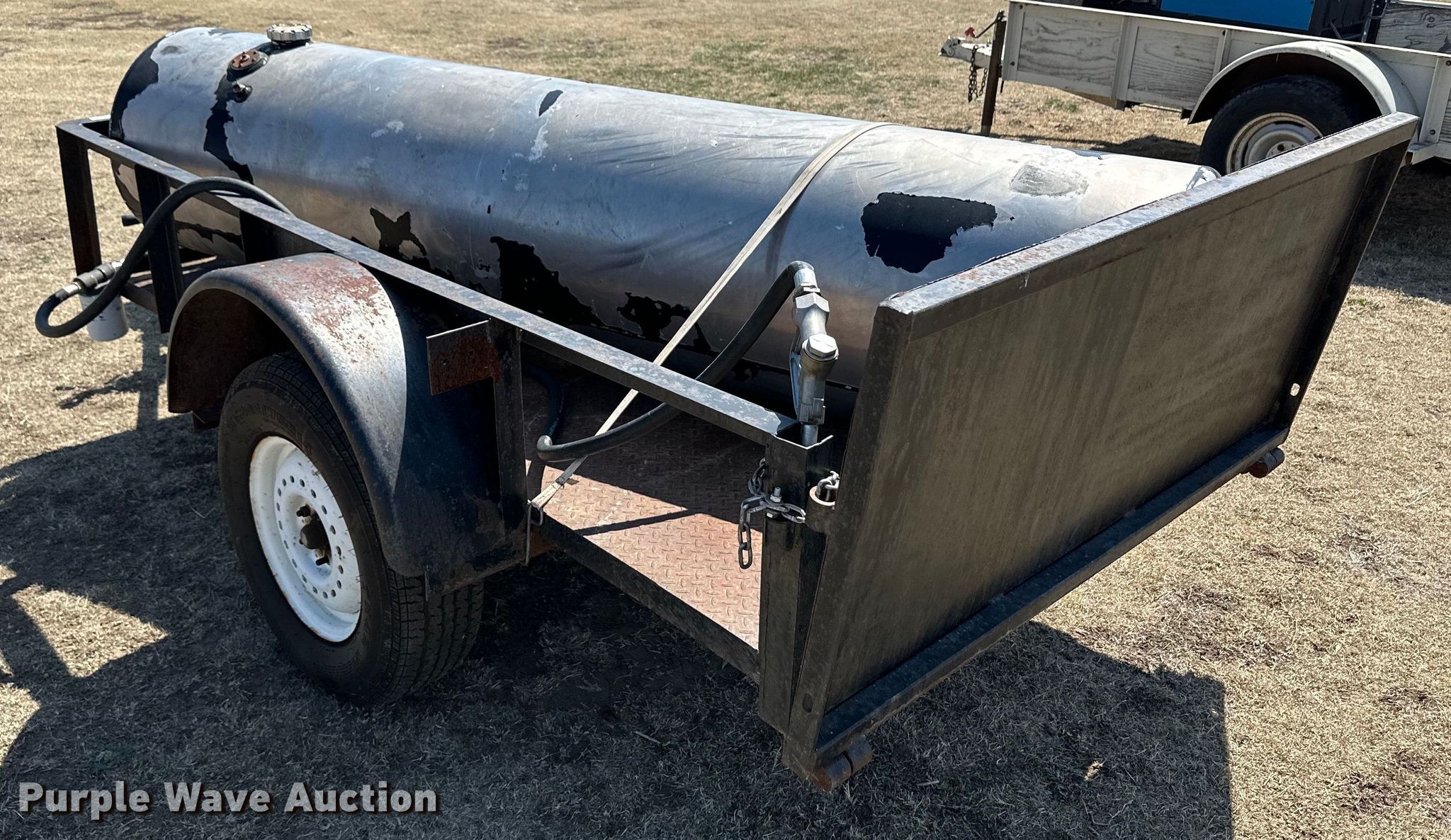 Purple Wave is selling a used Tank Trailer in Kansas. This item is a Shop built tank trailer with the following: Overall: 11' L x 68" W