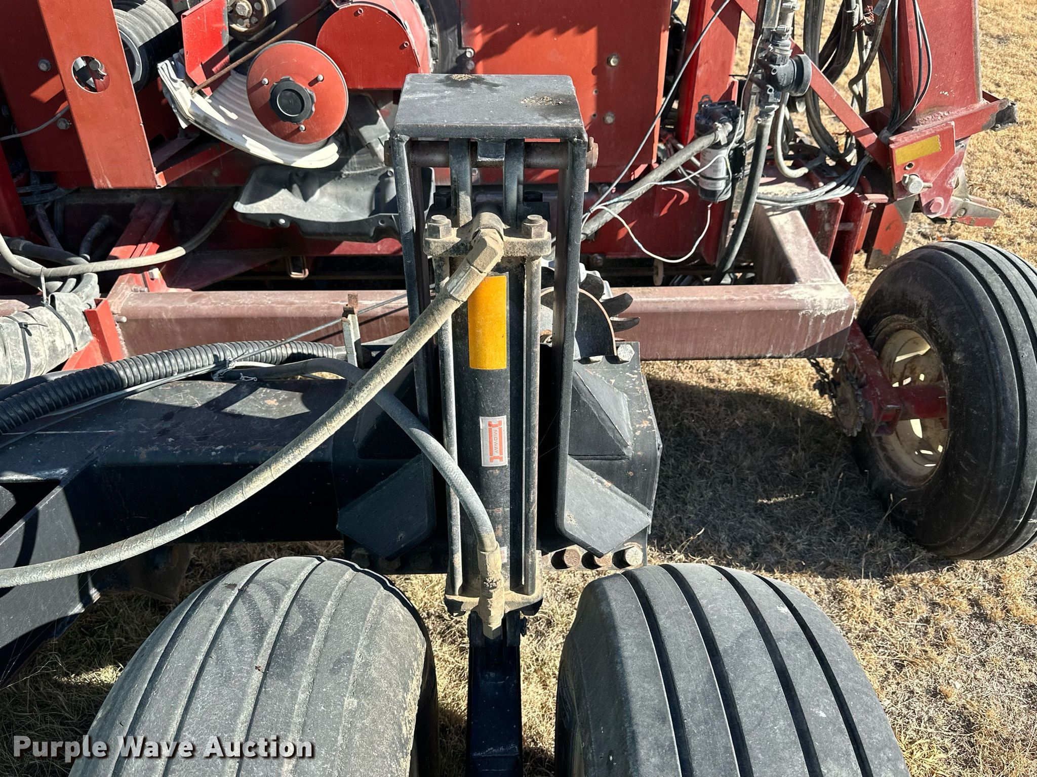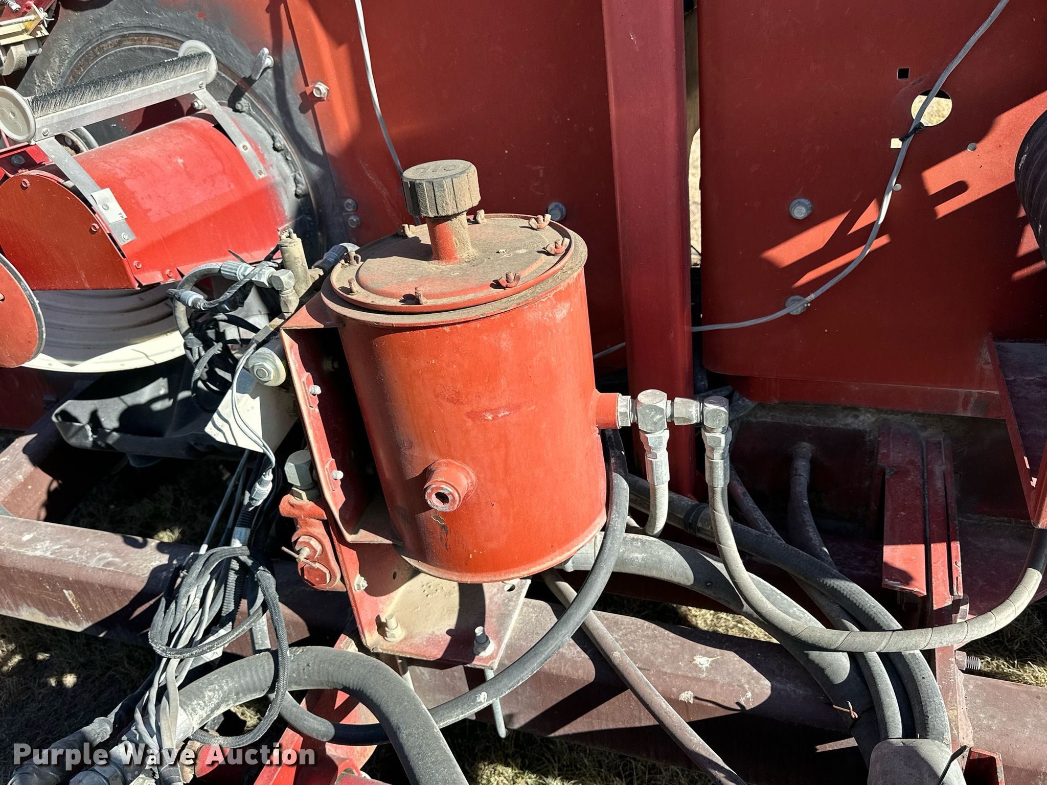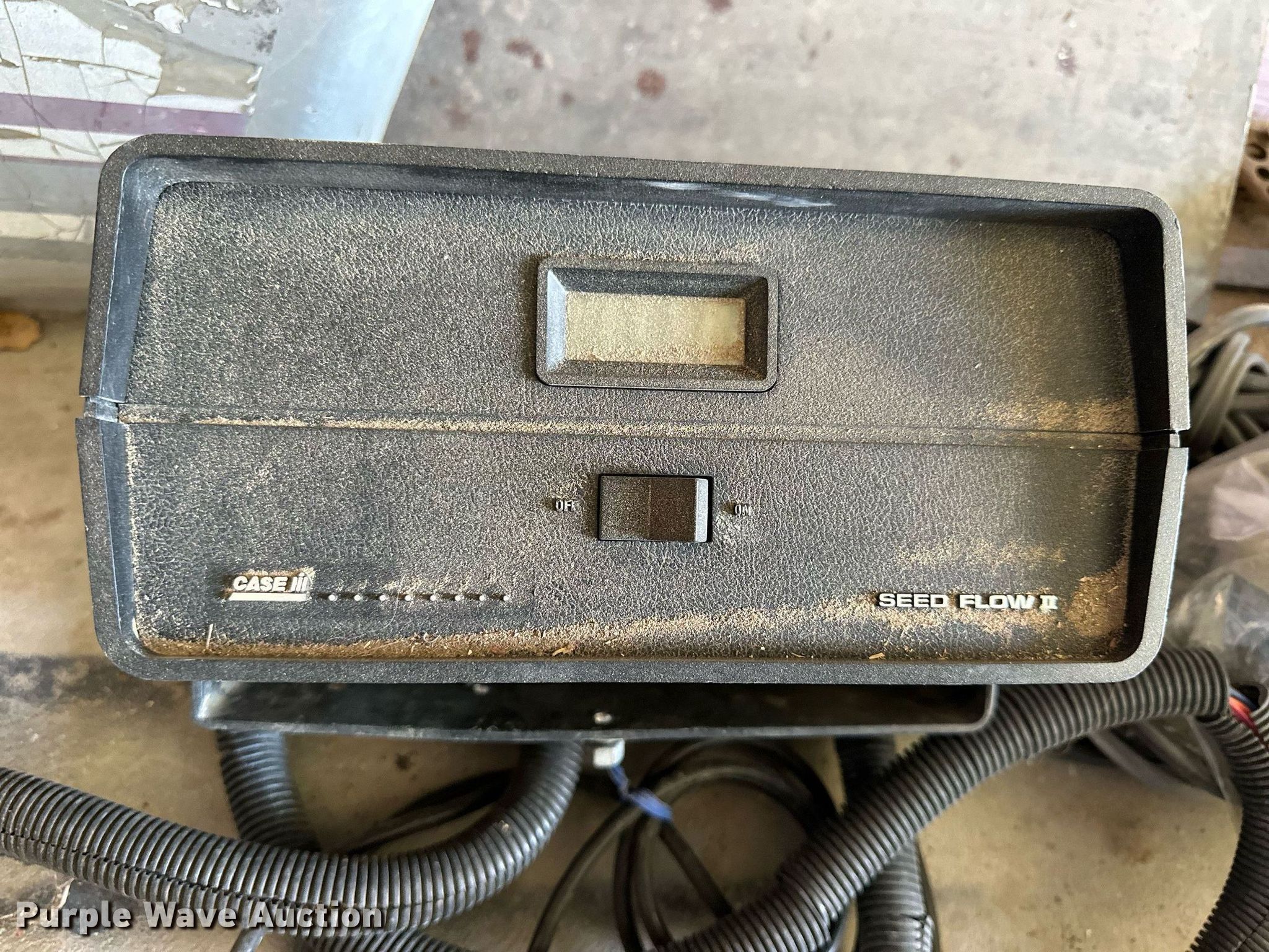 Case IH 955 no-till planter. Width: 30', Row units: 12, Row spacing: 30", Serial: JAG1012018. Features Hydraulic PTO pump, Frame Hydraulic fold Wing fold, Seed delivery Bulk fill system, Capacity: 30 bushels, Row units Meter drive: Ground, Down pressure: Spring, Row cleaners, No-till coulters, Seed firmers, Disk openers: Double, Gauge wheels: Double, Closing system: Single Type: Rubber, Fertilizer/ insecticide Fertilizer Liquid capacity: 500 gallons, (2) milo drums, (2) corn drums, (2) bean drums, Elk creek caddy, Selector shut off system, Monitor for Planter & Selector, (16) unused seed boots. Tires Transport tire size (4) Front: 12.5L-15, (4) Rear: 9.5-14, Quantity: 8, Outside drive tire size: 9.5L-14, Quantity: 2. Notes Manual Included. Downs, KS 67437