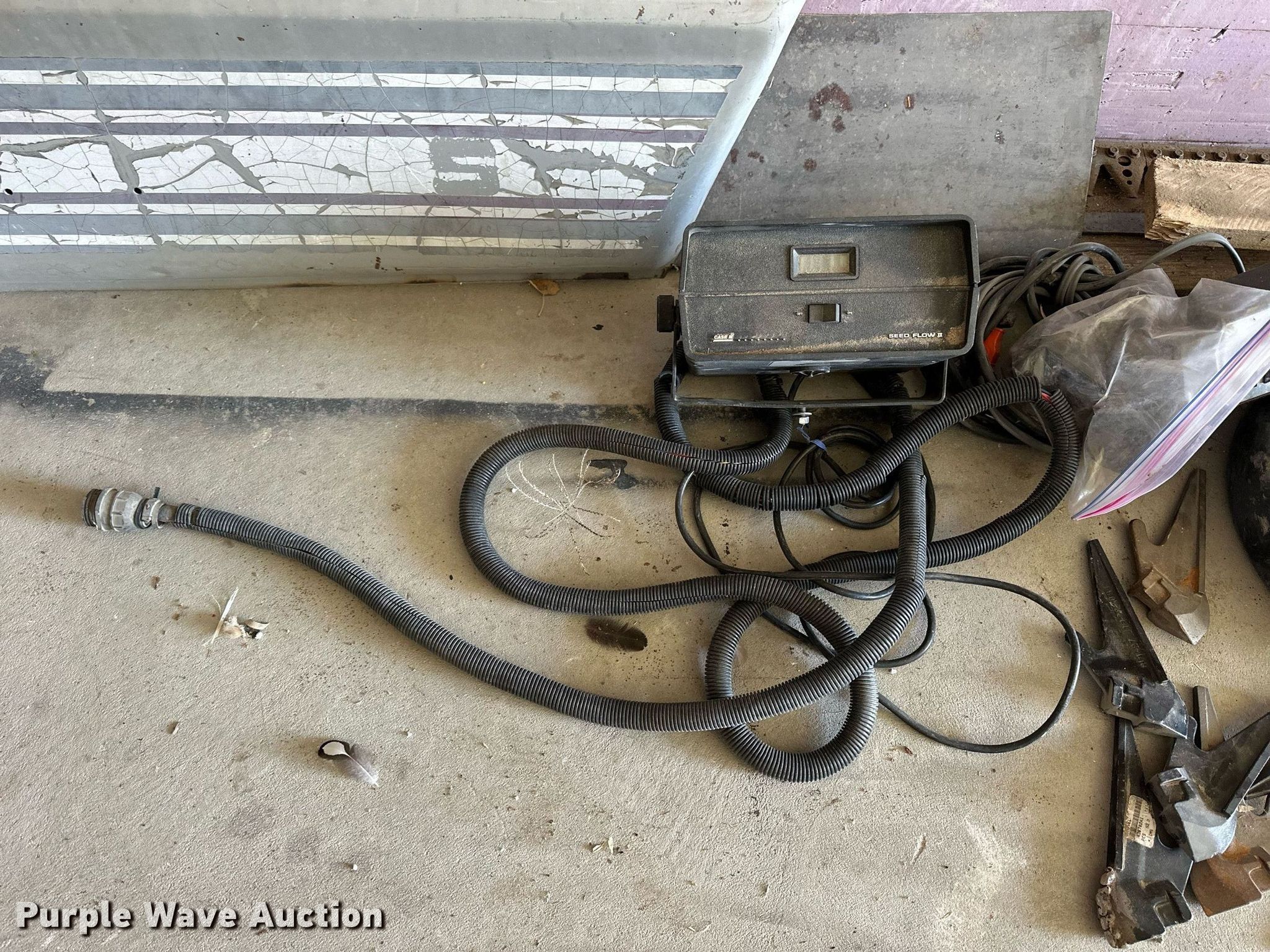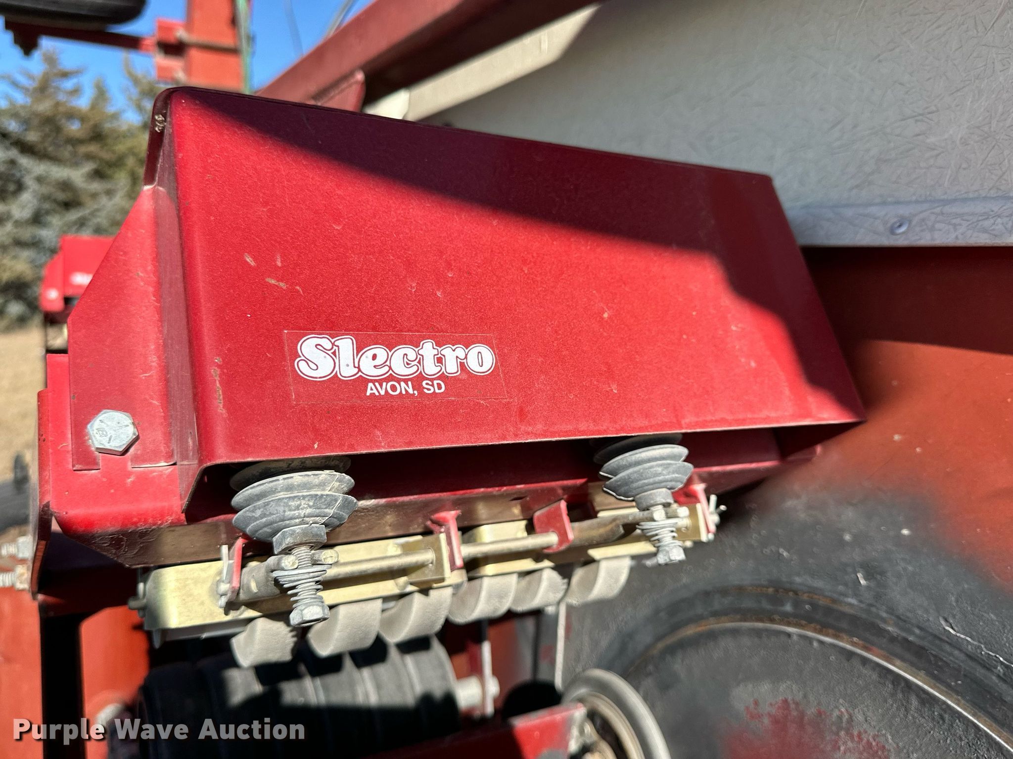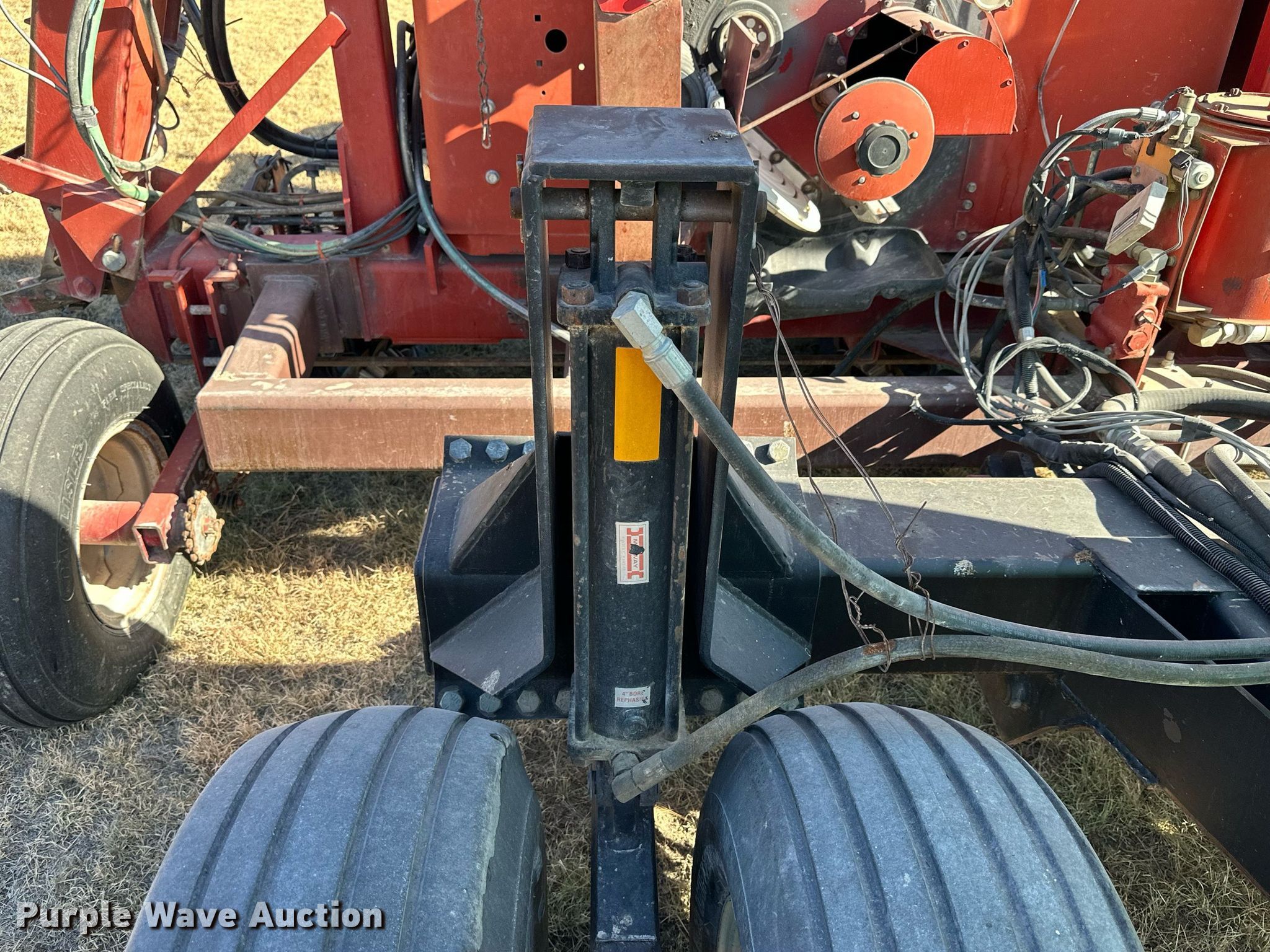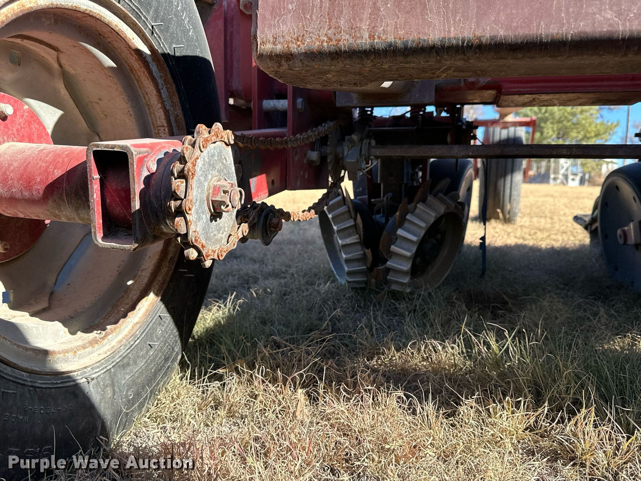 Case IH 955 no-till planter. Width: 30', Row units: 12, Row spacing: 30", Serial: JAG1012018. Features Hydraulic PTO pump, Frame Hydraulic fold Wing fold, Seed delivery Bulk fill system, Capacity: 30 bushels, Row units Meter drive: Ground, Down pressure: Spring, Row cleaners, No-till coulters, Seed firmers, Disk openers: Double, Gauge wheels: Double, Closing system: Single Type: Rubber, Fertilizer/ insecticide Fertilizer Liquid capacity: 500 gallons, (2) milo drums, (2) corn drums, (2) bean drums, Elk creek caddy, Selector shut off system, Monitor for Planter & Selector, (16) unused seed boots. Tires Transport tire size (4) Front: 12.5L-15, (4) Rear: 9.5-14, Quantity: 8, Outside drive tire size: 9.5L-14, Quantity: 2. Notes Manual Included. Downs, KS 67437