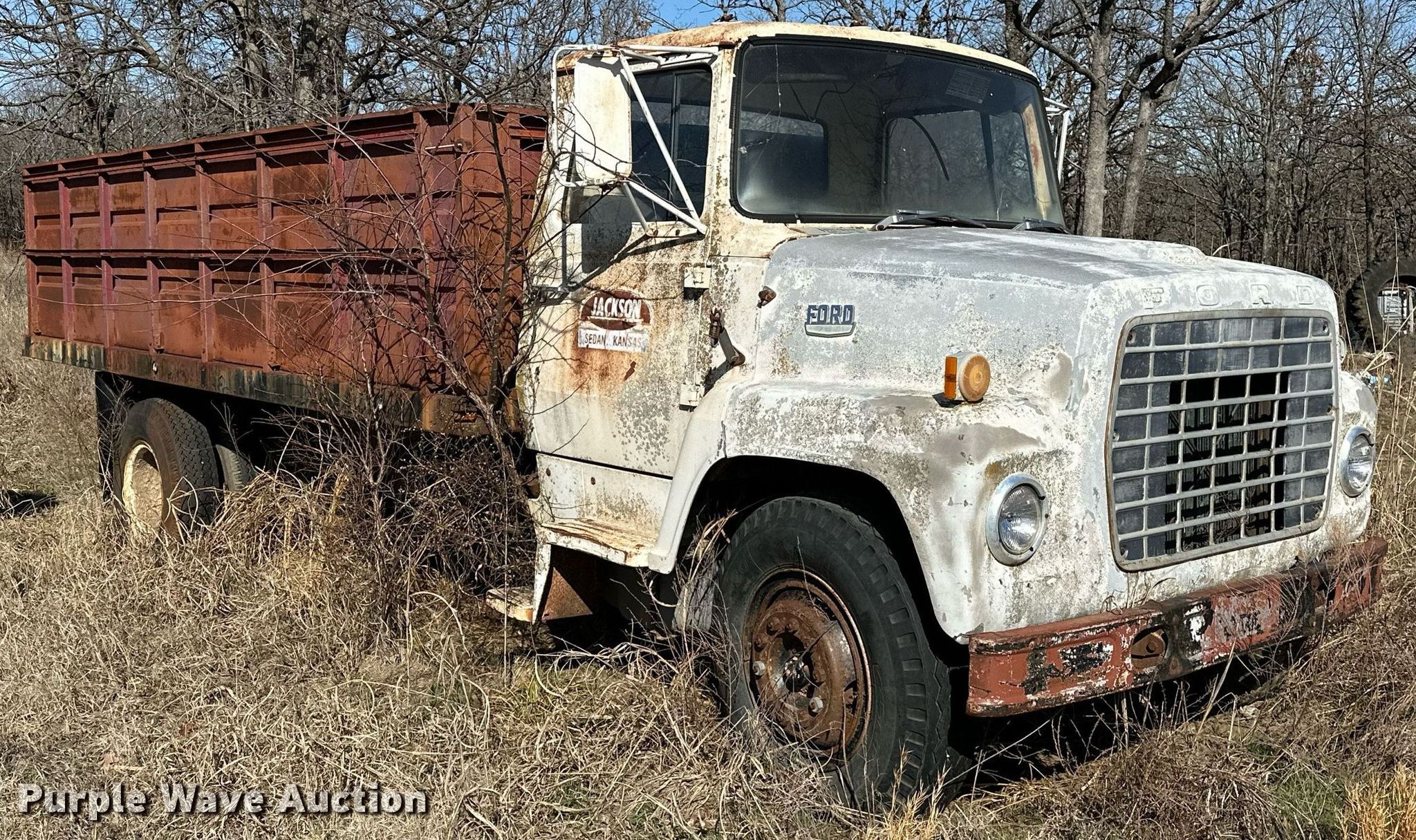 Purple Wave is selling a used Grain Truck in Oklahoma. This item is a 1971 Ford 750 grain truck with the following: Miles: 14,361 on odometer, VIN: N75EVL94014