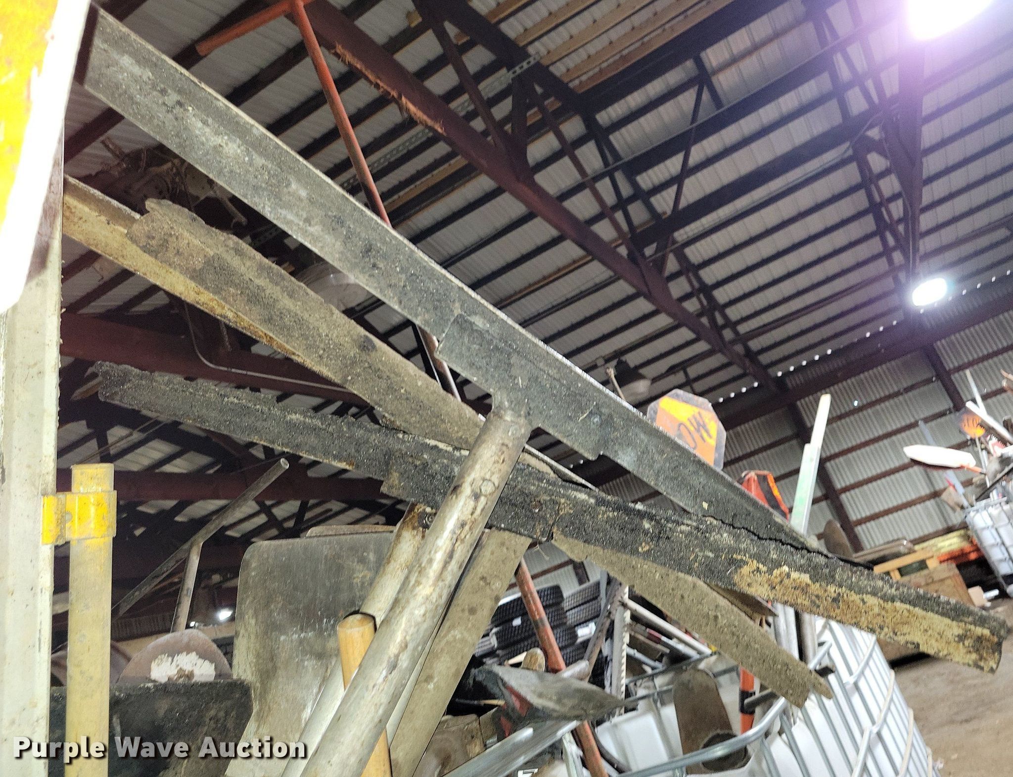 (2) bins of tools. Shovels, Brooms, Stop signs, Screed, Levels, Rakes, Gas cans. T.A. Schifsky & Sons, Inc - Open Inspection April 6, 10, and 13. 2370 East Hwy 36 North. St. Paul, MN 55109