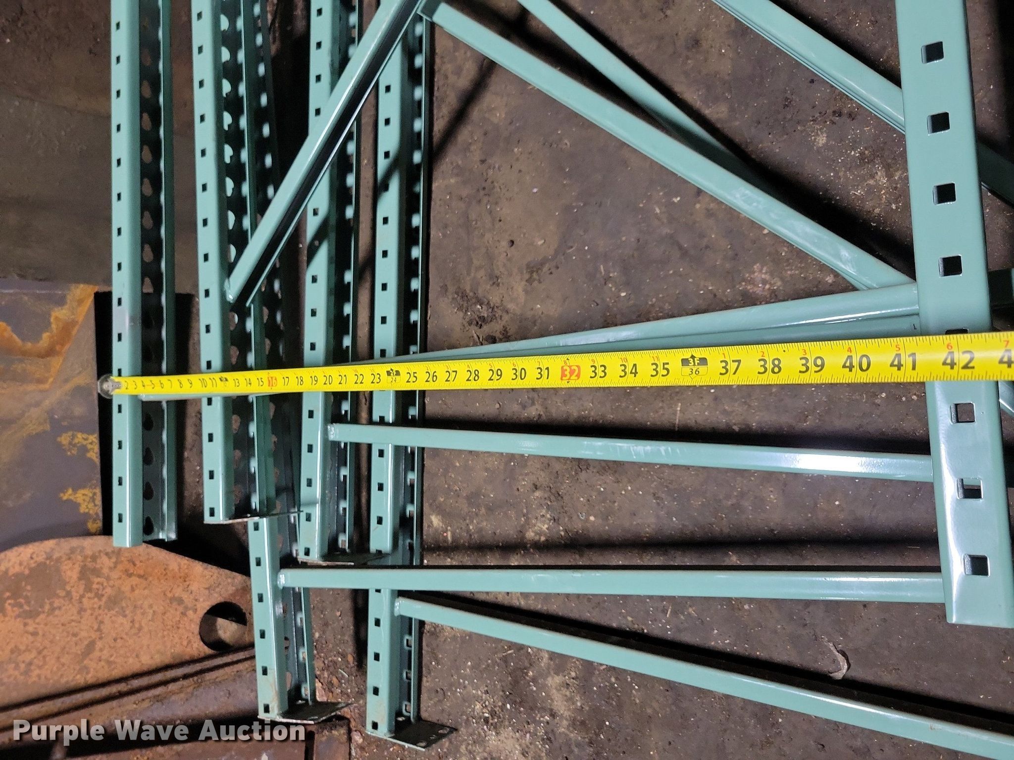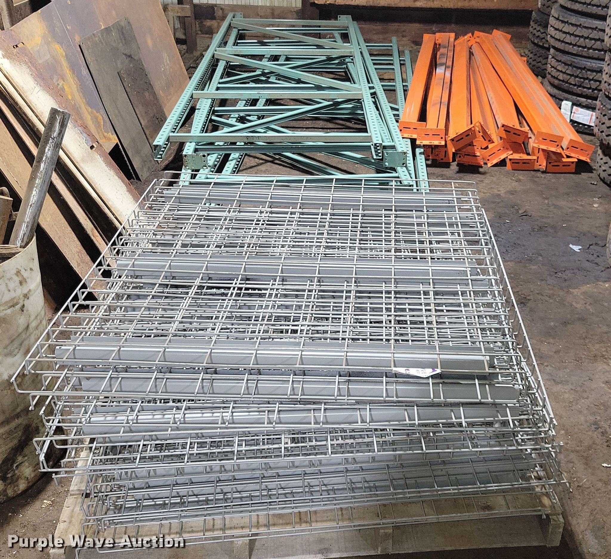 Pallet racking. Approx. 16 grates, Approx. 16 cross members, (5) upright braces. T.A. Schifsky & Sons, Inc - Open Inspection April 6, 10, and 13. 2370 East Hwy 36 North. St. Paul, MN 55109