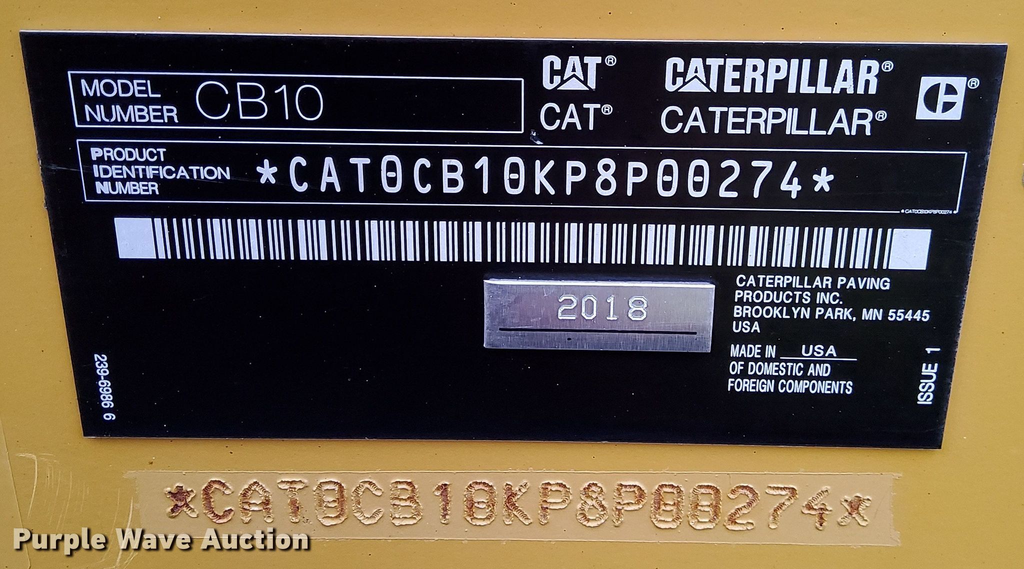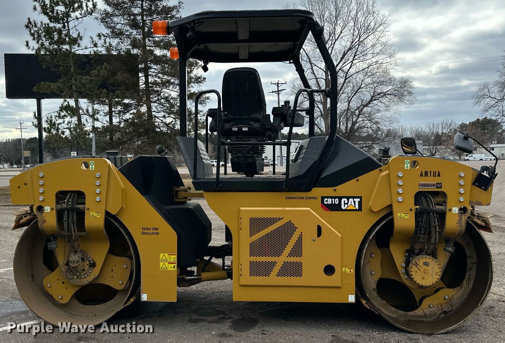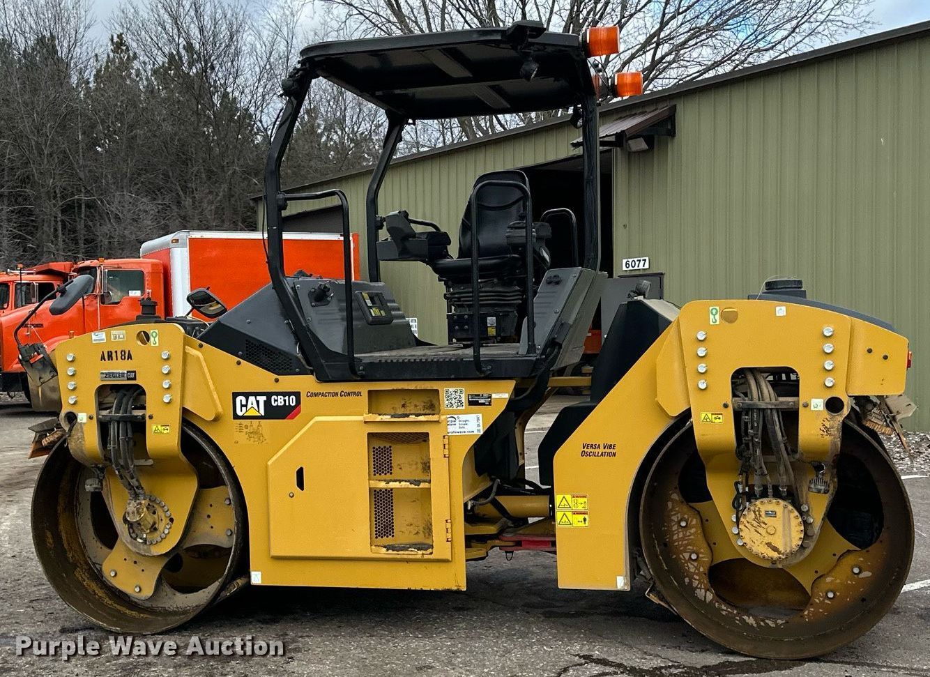 Purple Wave is selling a used Double Drum Roller Compactor in Minnesota. This item is a 2018 Caterpillar CB10 double drum vibratory roller with the following: Serial: CAT0CB10KP8P00274