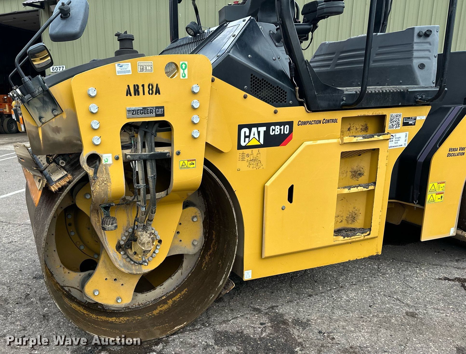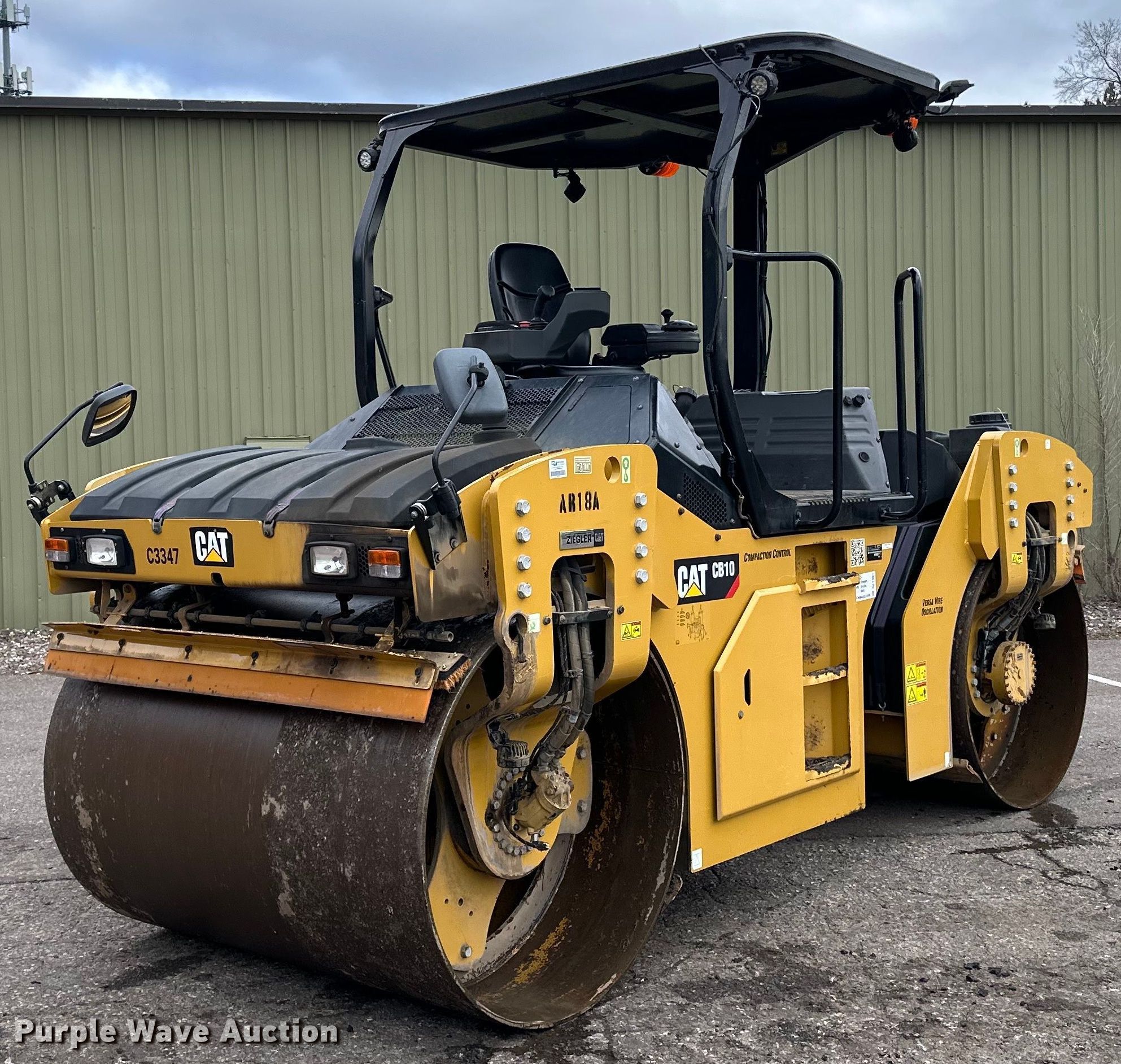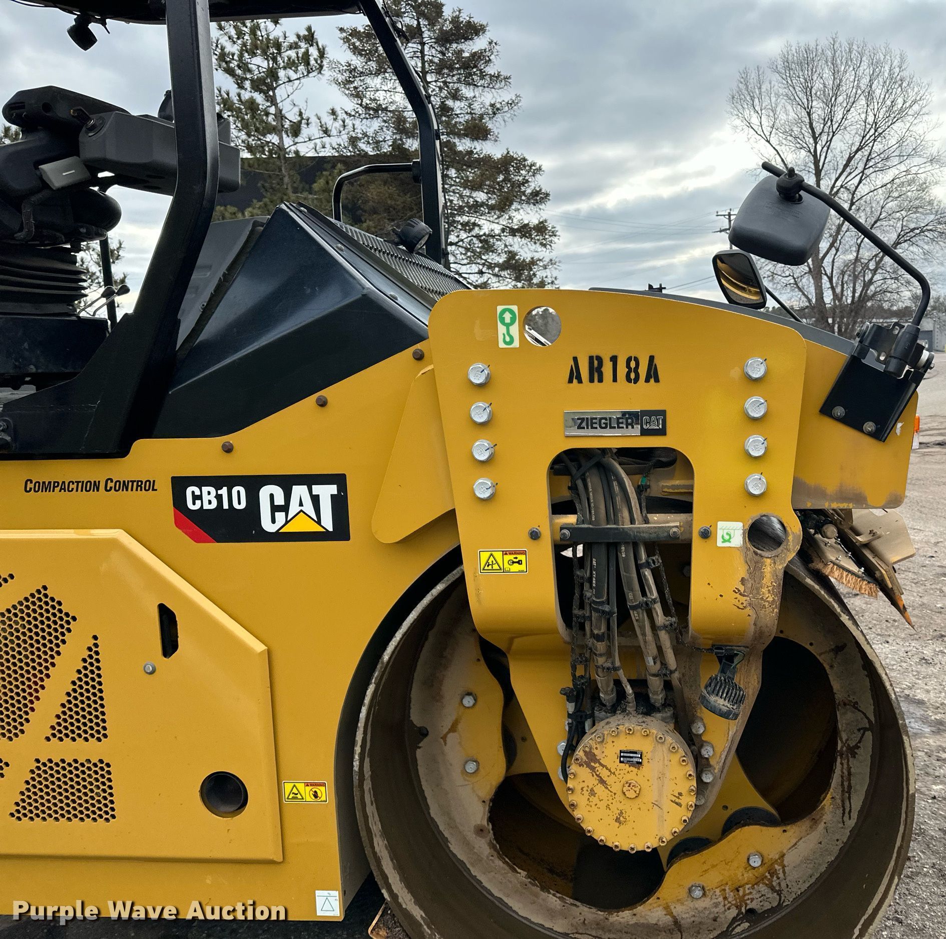 Purple Wave is selling a used Double Drum Roller Compactor in Minnesota. This item is a 2018 Caterpillar CB10 double drum vibratory roller with the following: Serial: CAT0CB10KP8P00274