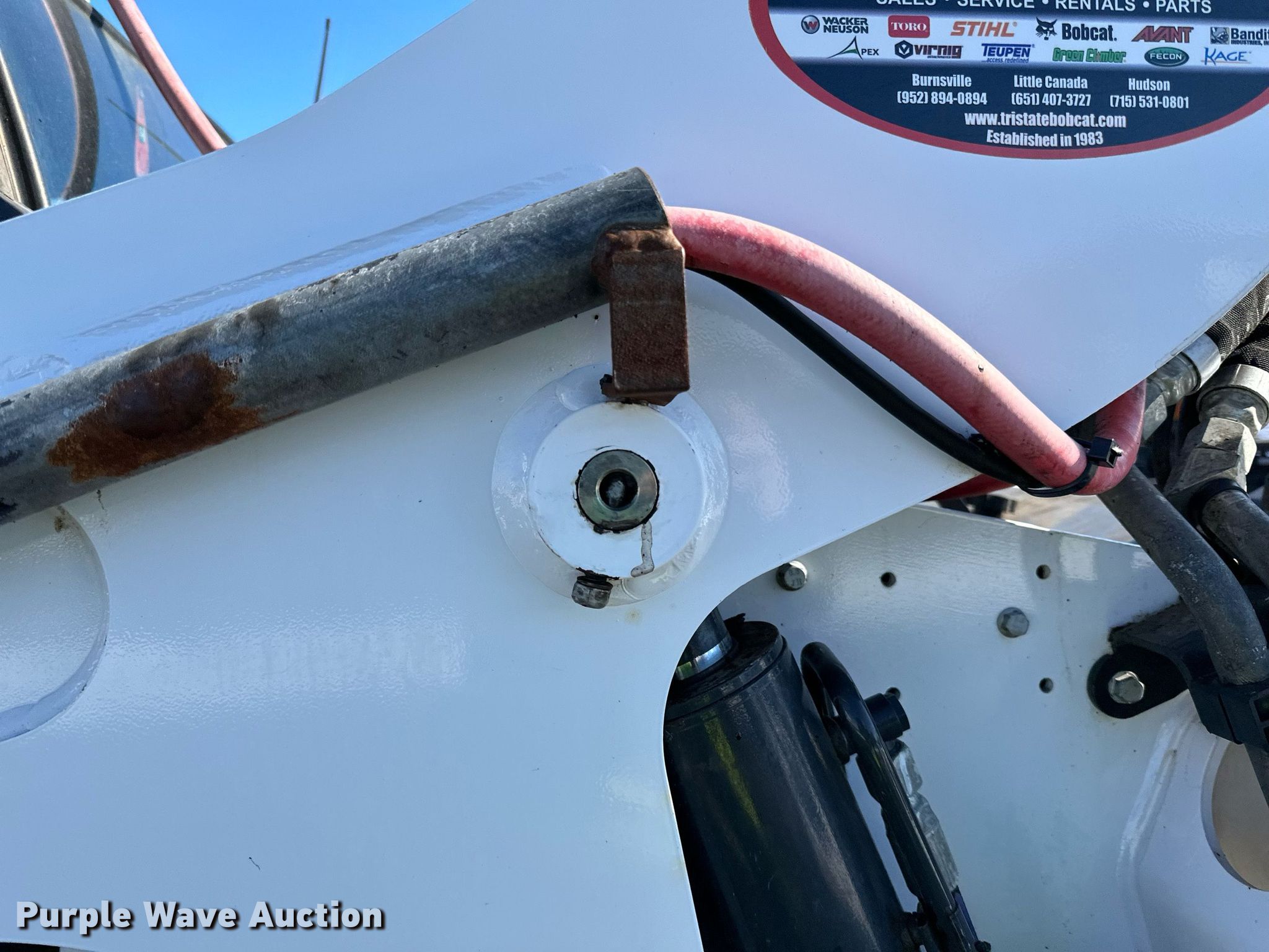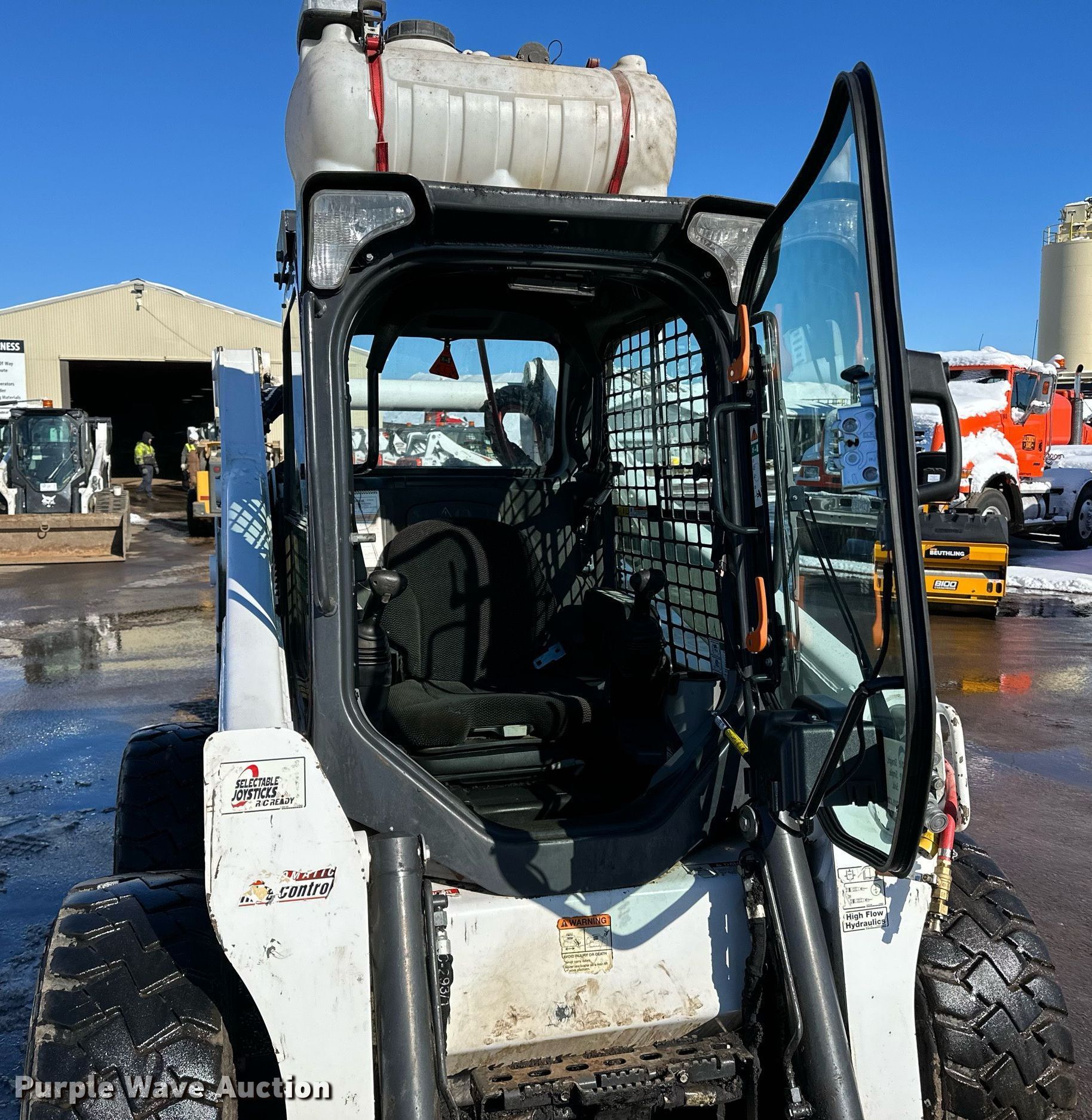 2021 Bobcat S770 skid steer loader. Hours: 1,567 on meter, Serial: AT5A14810, Unit #: SS21B. Engine Bobcat, Displacement: 3.4L, Cylinders: 4, Fuel type: Diesel. Transmission Hydrostatic, Two speed travel. Operators station Enclosed cab, AC, Heat, Bucket control: Hand, Pattern changer, Electronic Monitoring System panel, Backup camera, Ride control. Features Auxiliary hydraulics High flow hydraulics, Auxiliary electrical outlet, Quick coupler: Hydraulic, Bucket Width: 74", Cutting edge: Bolt-on, Wash down system. Tires Size: 12R16.5, Brand: Michelin. T.A. Schifsky & Sons, Inc - Open Inspection April 6, 10, and 13. 2370 East Hwy 36 North. St. Paul, MN 55109