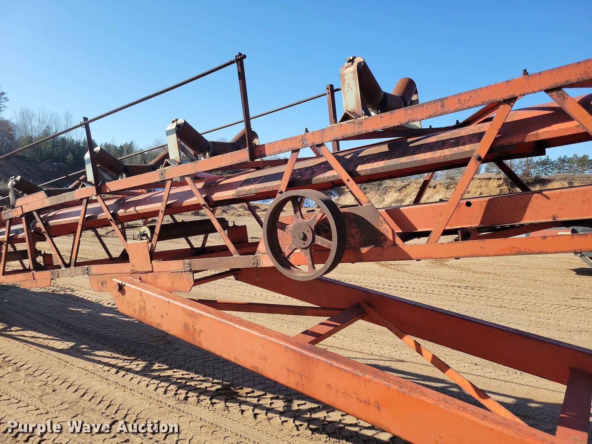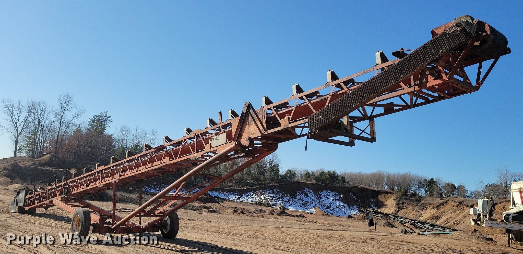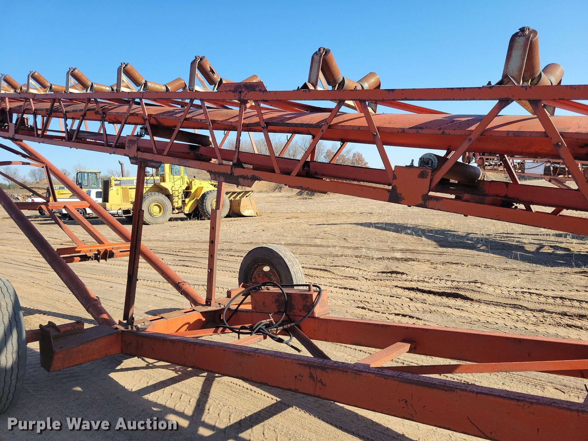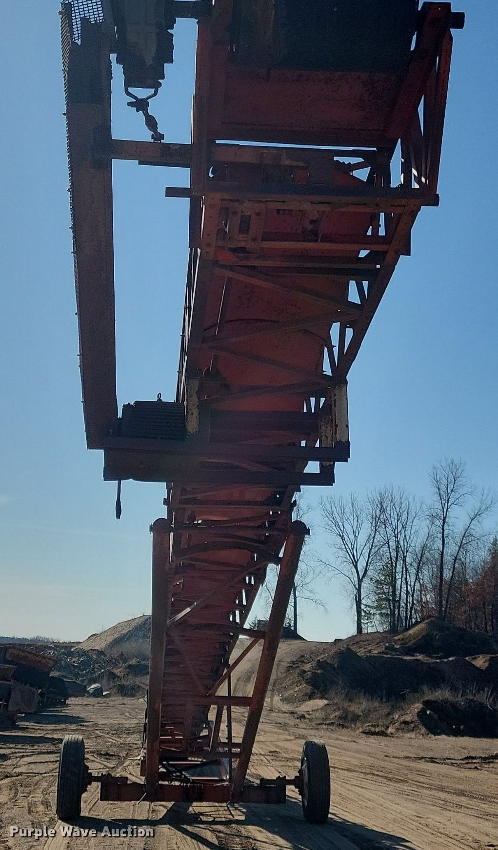 1965 Atlas 130 conveyor. Serial: 344019, Unit #: 8010. Features Conveyor Length: 80', Width: 24", Input hopper Length: 4', Width: 3'. Tires Tire size: 11R22.5. Notes Belt missing. T.A. Schifsky & Sons, Inc. 12978 Square Lake Trail N. Stillwater, MN 55082