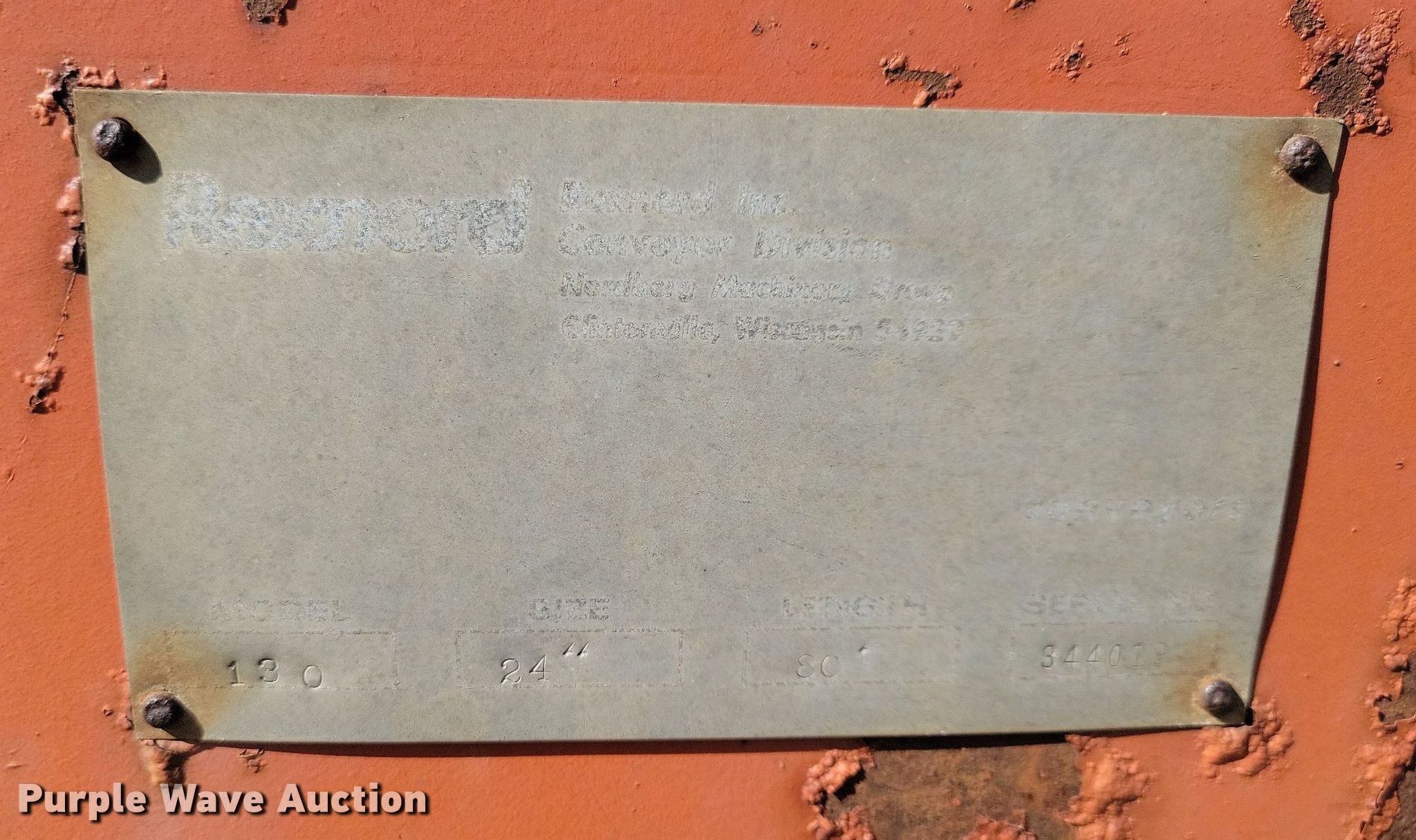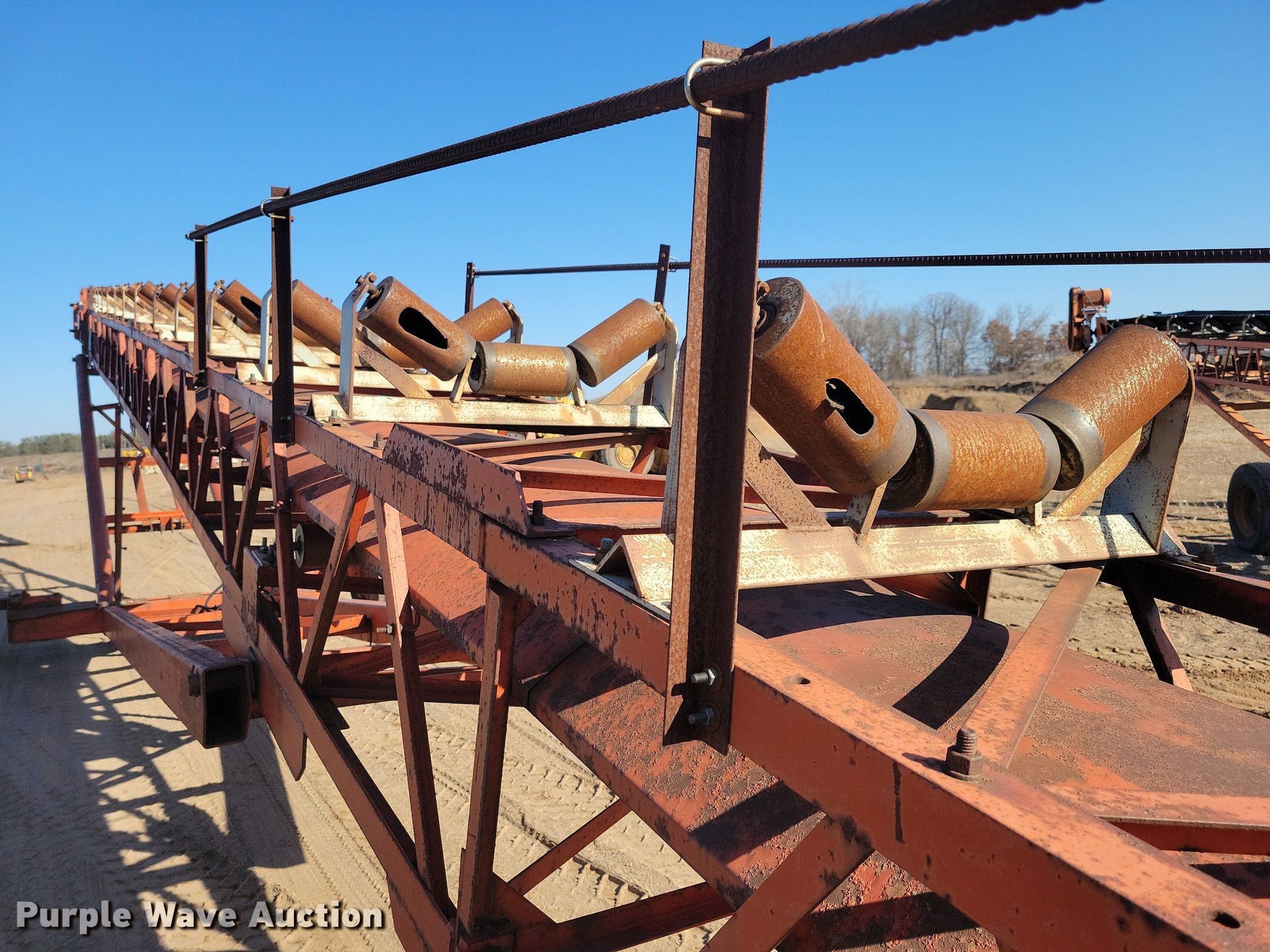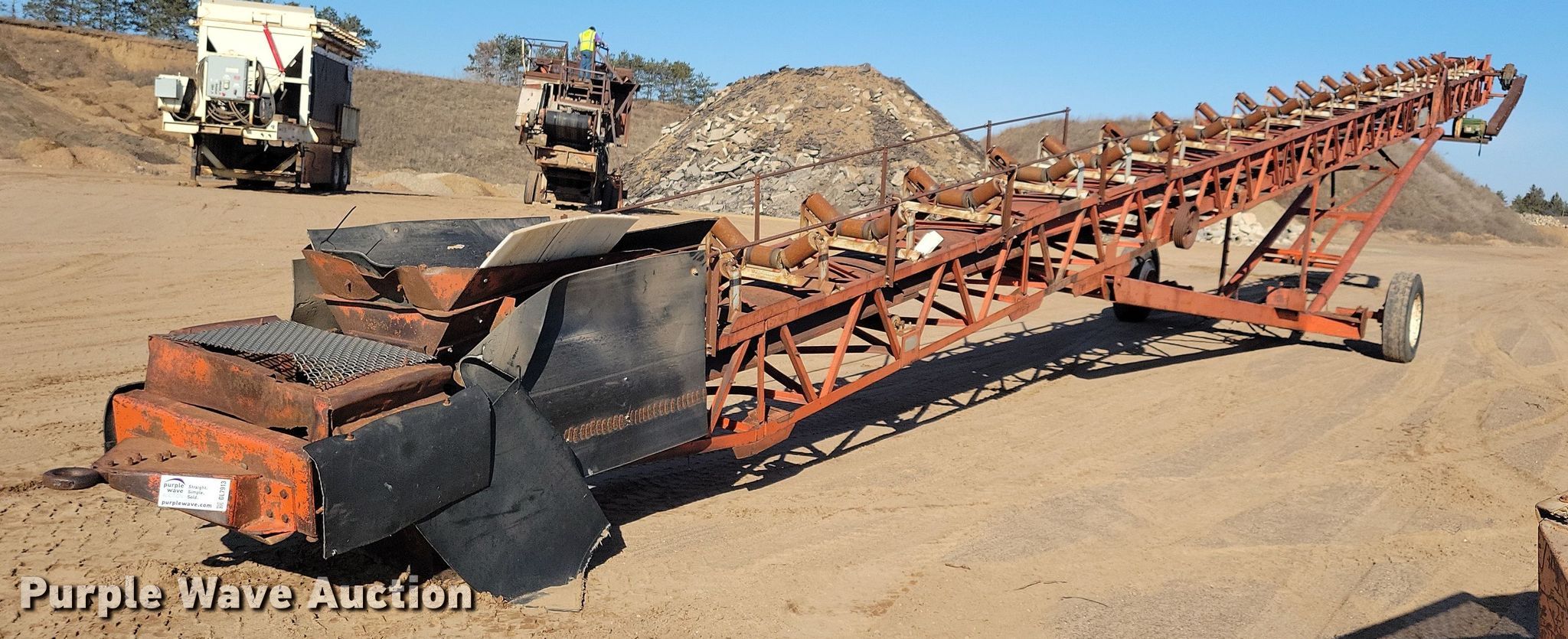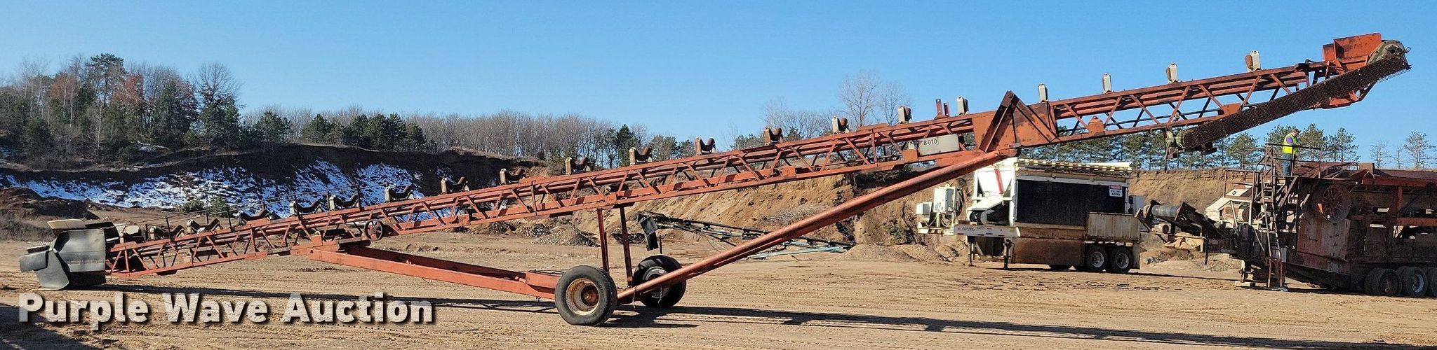 1965 Atlas 130 conveyor. Serial: 344019, Unit #: 8010. Features Conveyor Length: 80', Width: 24", Input hopper Length: 4', Width: 3'. Tires Tire size: 11R22.5. Notes Belt missing. T.A. Schifsky & Sons, Inc. 12978 Square Lake Trail N. Stillwater, MN 55082