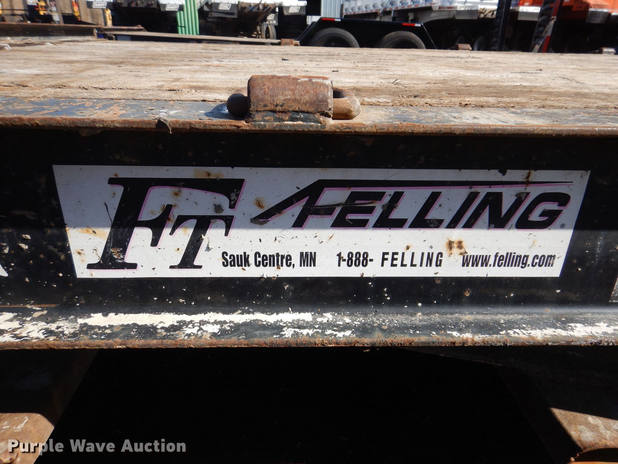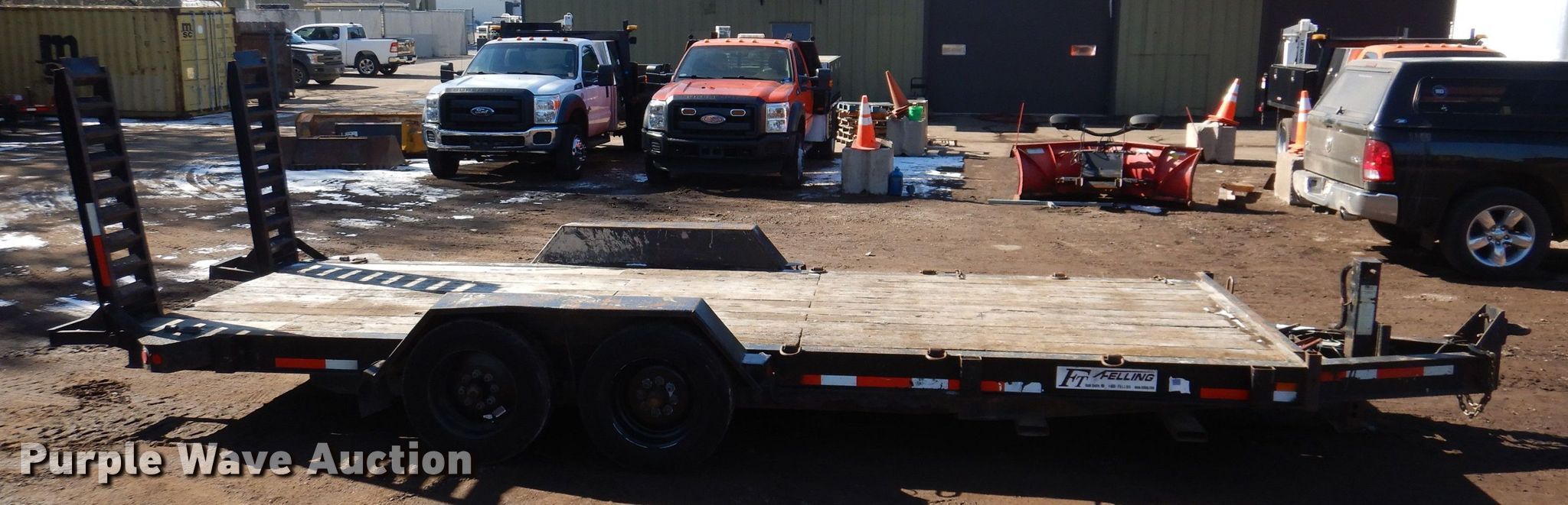 2008 Felling FT16DE equipment trailer. VIN: 5FTEE202381031453, Unit #: T08A. Dimensions Overall: 26' 6" L x 102" W, Deck: 20' L x 79" W, Deck height: 23", Ramps: Manual Length: 5'. Features Deck type: Wood. Chassis Hitch: Pintle, Landing gear: Single, Suspension: Spring, Brakes: Electric, Axles: Tandem, GVWR: 18,000 lbs, GAWR: 8,000 lbs. Tires Steel wheels, Size: 215/75R17.5. Minnesota title. T.A. Schifsky & Sons, Inc - Open Inspection April 6, 10, and 13. 6077 Lake Elmo Avenue North. Stillwater, MN 55082