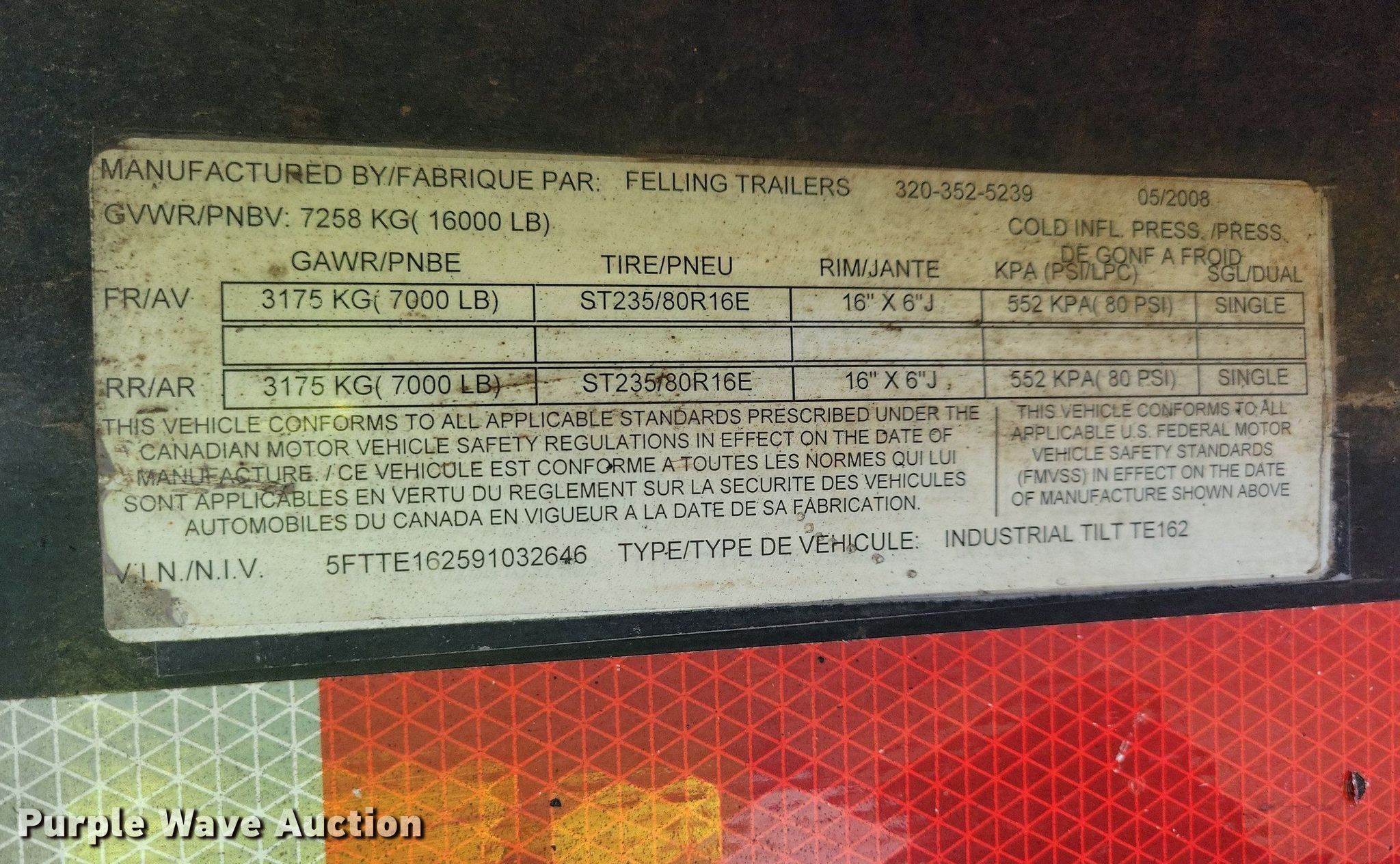 Purple Wave is selling a used Equip. Trailer in Minnesota. This item is a 2009 Felling FT14IT tilt deck equipment trailer with the following: VIN: 5FTTE162591032646, Unit #: T09A