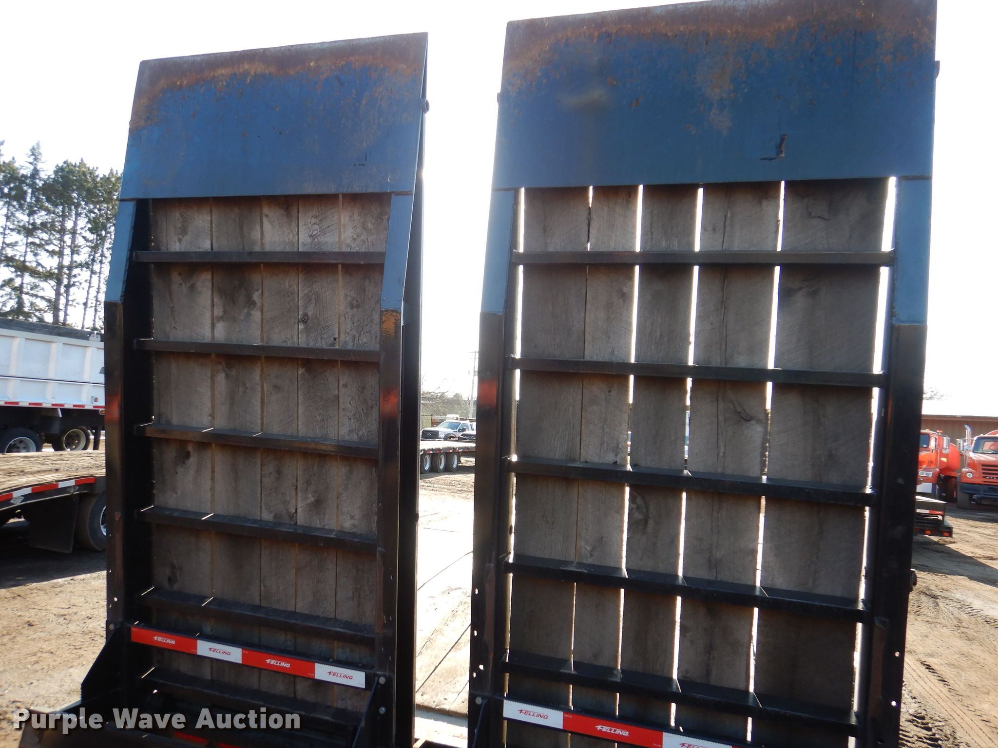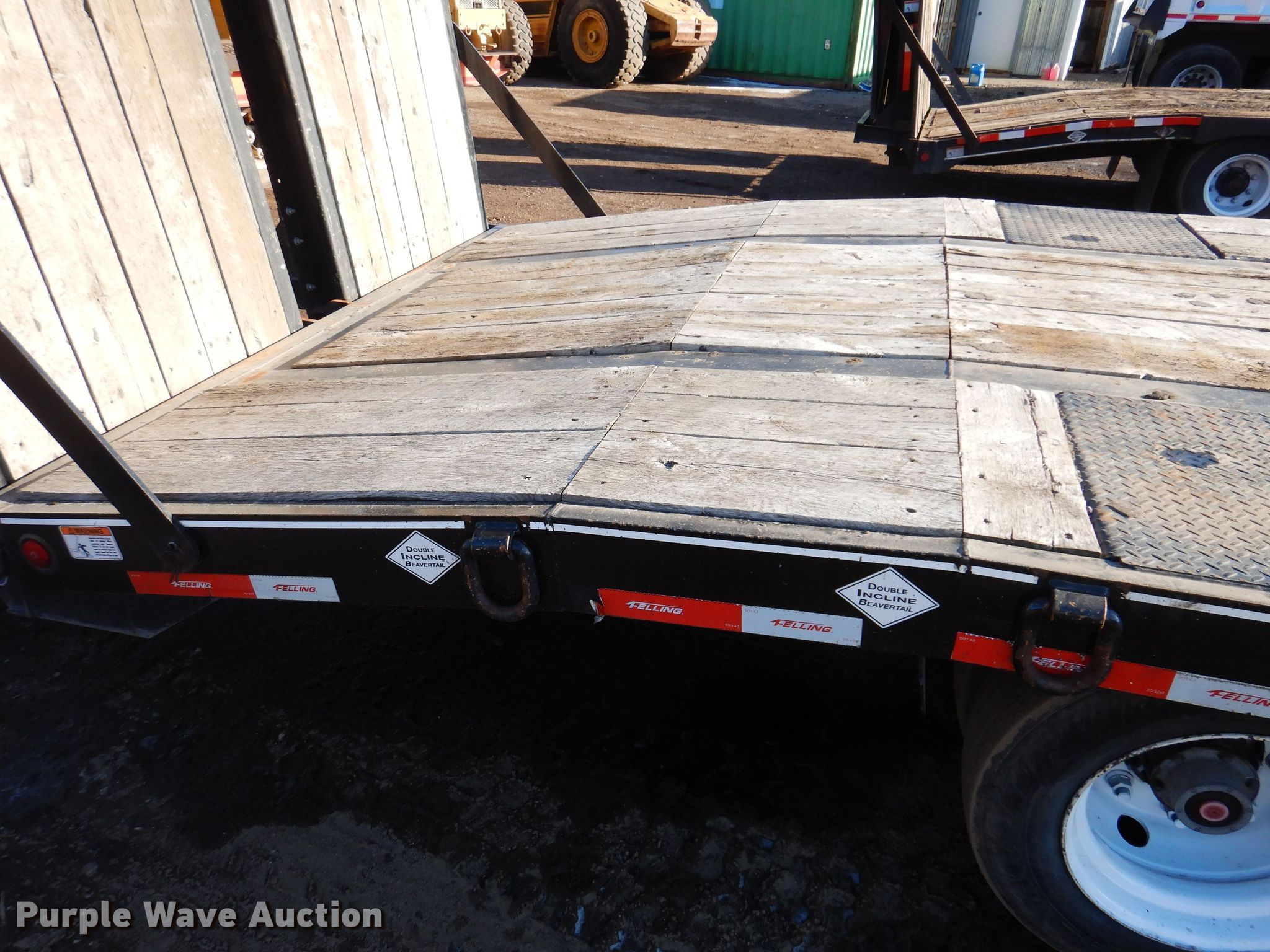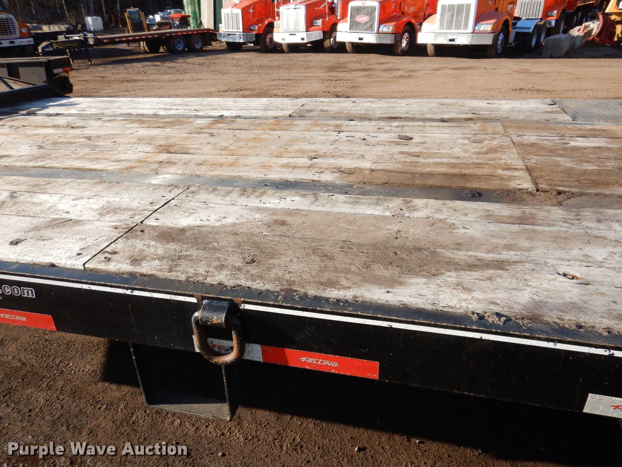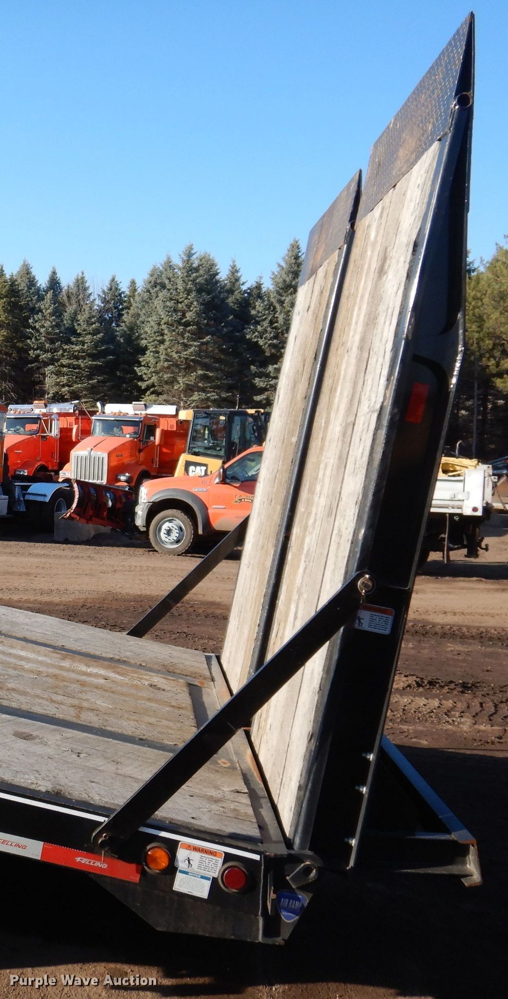 2021 Felling FT50-3LP equipment trailer. VIN: 5FTCF3833M1002424. Dimensions Overall: 37' 2" L x 102" W, Deck: 24' L x 102" W, Deck height: 35", Tail length: 6', Ramps: Air Length: 8'. Features Deck type: Wood. Chassis Hitch: Pintle, Landing gear: Dual, Suspension: Spring, Brakes: Air, Axles: Triple, GVWR: 60,700 lbs, GAWR: 18,160 lbs. Tires Steel wheels, Size: 215/75R17.5. T.A. Schifsky & Sons, Inc - Open Inspection April 6, 10, and 13. 6077 Lake Elmo Avenue North. Stillwater, MN 55082