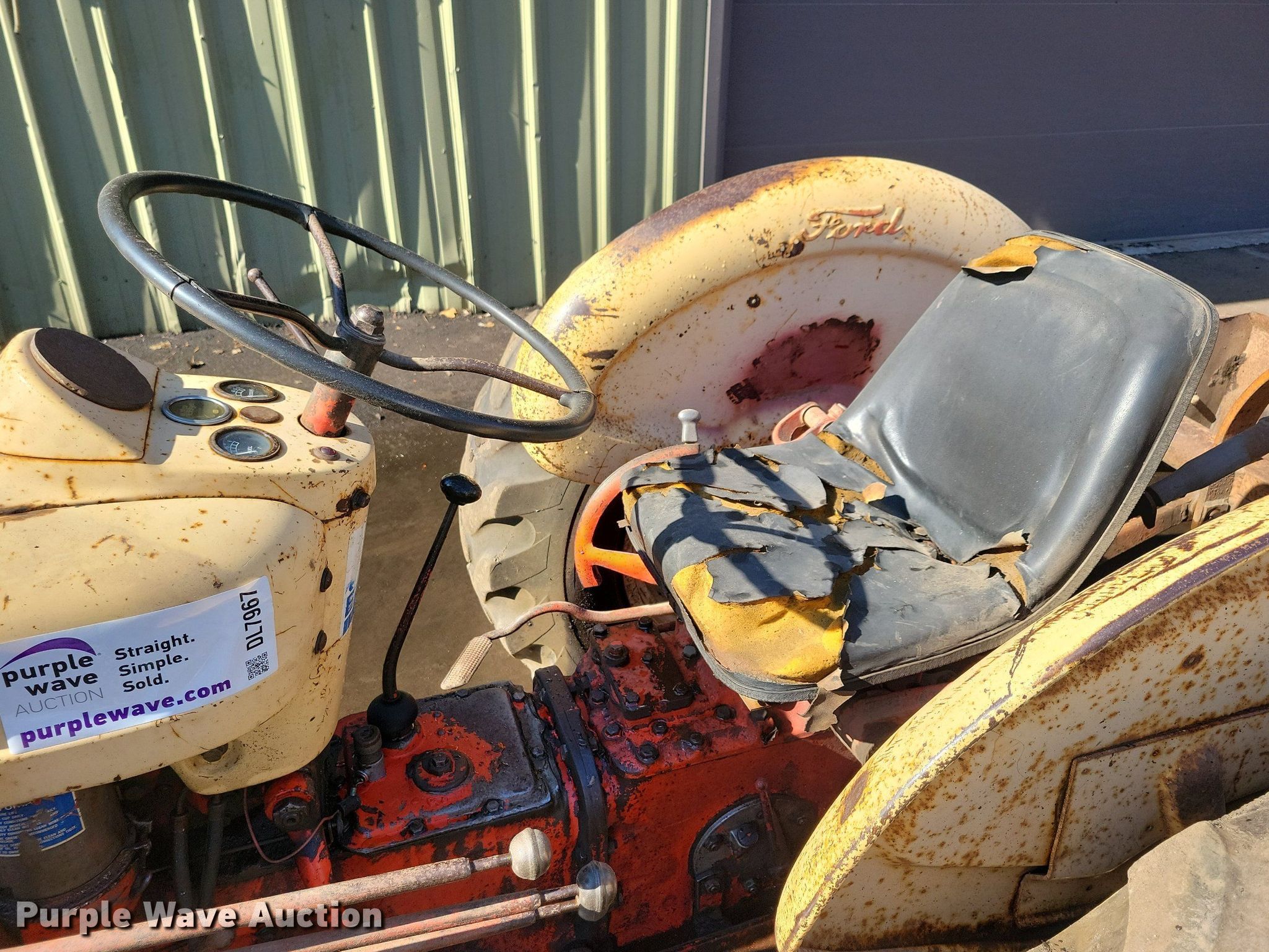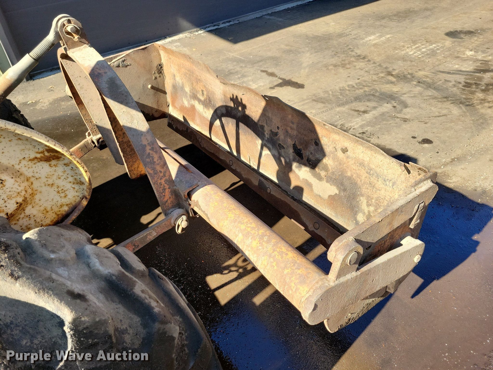 Ford 2000 Industrial landscape tractor. Engine. Cylinders: 4, Fuel type: Gas. Transmission Manual, 4F - 1R, Differential lock. Features PTO: 540, Three point Top link, Broom Width: 66", Box blade Width: 65". Tires Front: 7.5-16, Rear: 12-24. Notes Non-operational unit. T.A. Schifsky & Sons, Inc - Open Inspection April 6, 10, and 13. 6077 Lake Elmo Avenue North. Stillwater, MN 55082