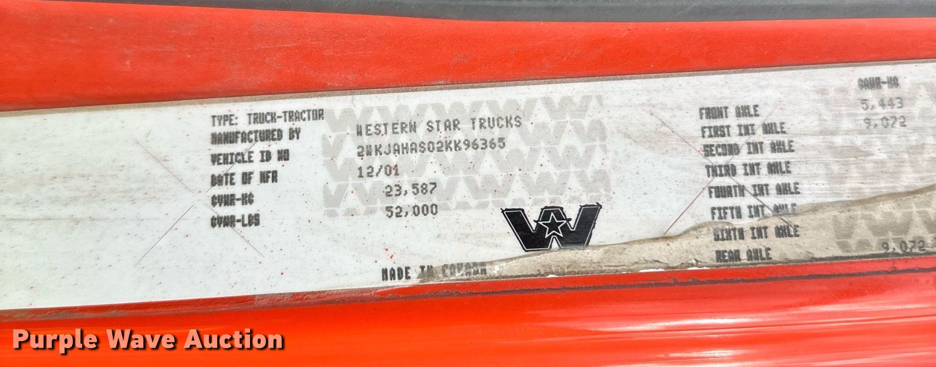 Purple Wave is selling a used Truck Tractor in Minnesota. This item is a 2002 Western Star 4900 semi truck with the following: Miles: 620,905 on odometer, Hours: 3,038 on meter, VIN: 2WKJAHAS02KK96365