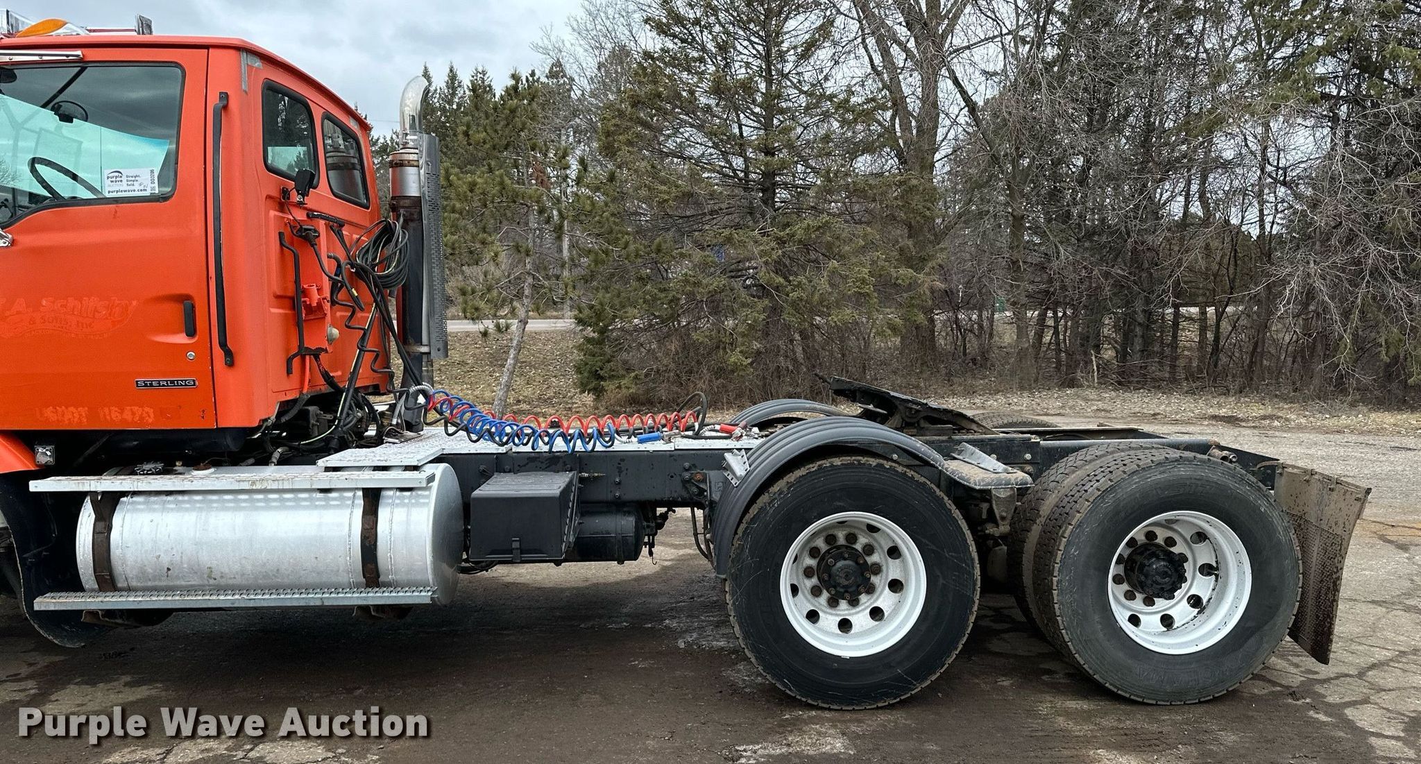 1999 Sterling LT9511 semi truck. Miles: 675,869 on odometer, VIN: 2FWPNWEB4XAA09430. Engine Caterpillar C12, Serial: 9NS10717, Displacement: 12.0L, Cylinders: 6, Fuel type: Diesel, HP: 410, kW: 306. Transmission Eaton Fuller RTLO18, Manual, Speed: 18. Chassis Axles: Tandem, Differential lock: Full, Suspension: Air, Brakes: Air, PTO, Wet kit, GVWR: 52,000 lbs FAWR: 12,000 lbs, RAWR: 20,000 lbs. Interior AC, Heat, Heated mirrors, Power windows, Power locks, Cruise control. Features Deck plate: Steel, Fifth wheel type: Air operated, Sliding, Fuel tank: Dual. Tires Size: 11R22.5. Notes Engine overhauled at 524,864 miles. View repairs. Minnesota title. Title distribution may be delayed up to 30 days from verification of funds. T.A. Schifsky & Sons, Inc - Open Inspection April 6, 10, and 13. 6077 Lake Elmo Avenue North. Stillwater, MN 55082