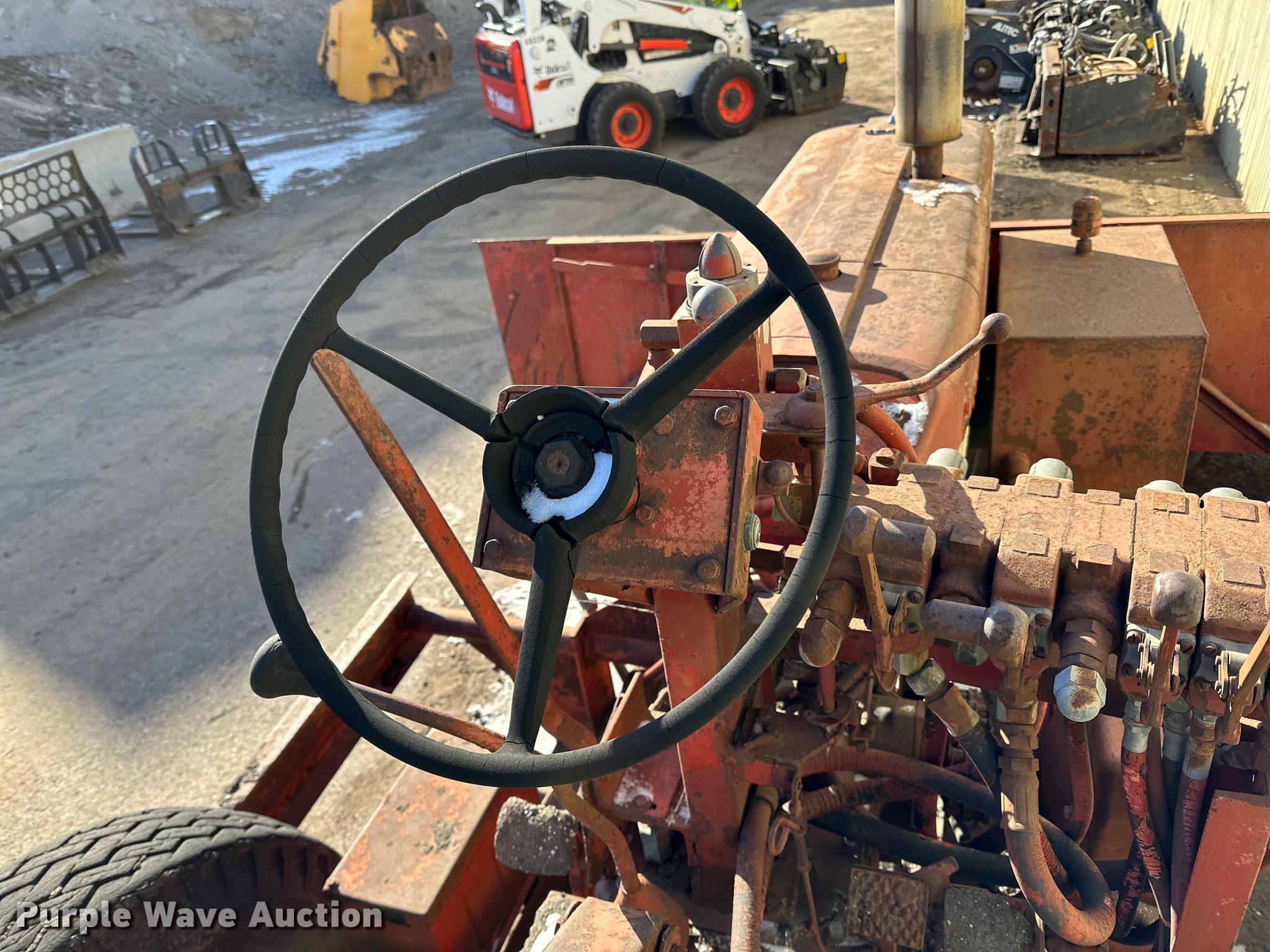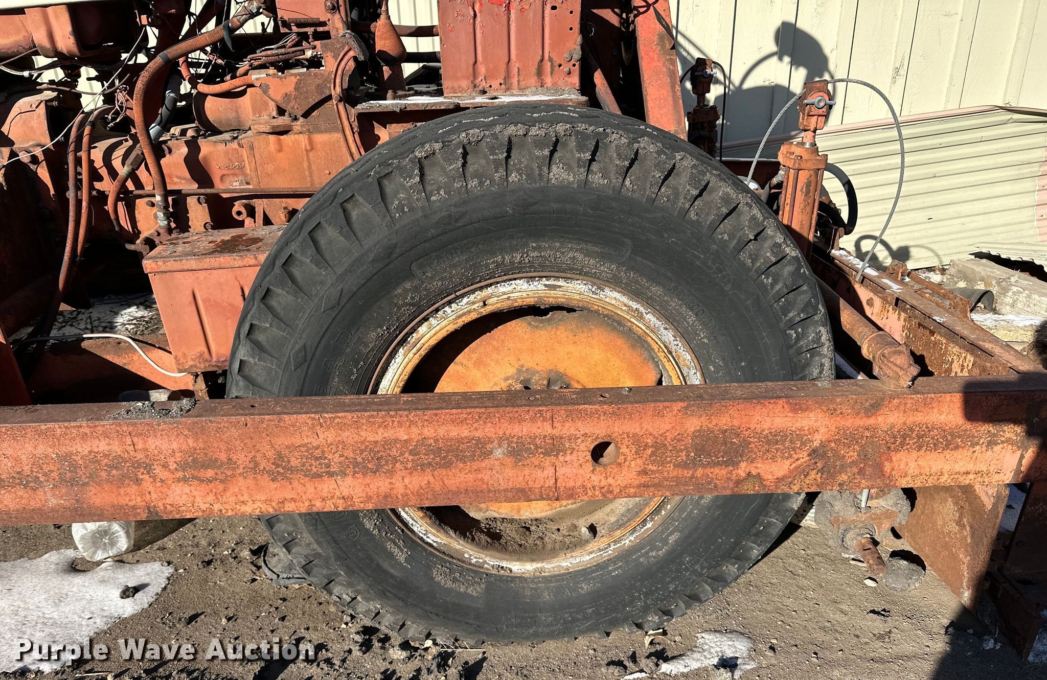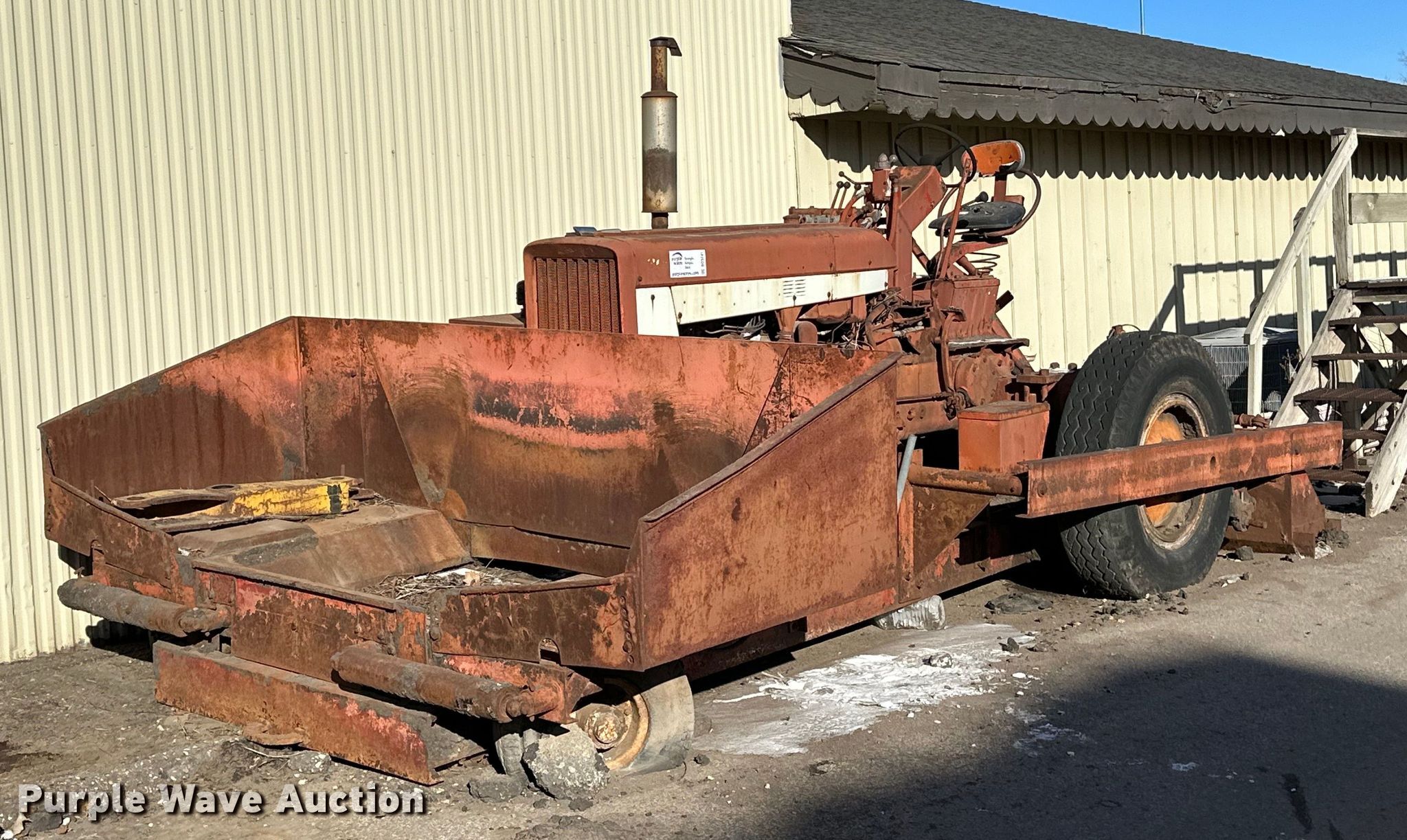 Paver. Hours: 2,674 on meter. Engine Cylinders: 6, Fuel type: Gas. Transmission 5F - 1R. Features Screed, Paving width: 8', Screed heater: Propane, Front spread hopper width: 10', Material conveyor Width: 40". Tires Rear: 12.00-24. Notes Hopper contents not included, Front tires flat, Dead battery, Non-operational unit. T.A. Schifsky & Sons, Inc - Open Inspection April 6, 10, and 13. 2370 East Hwy 36 North. St. Paul, MN 55109