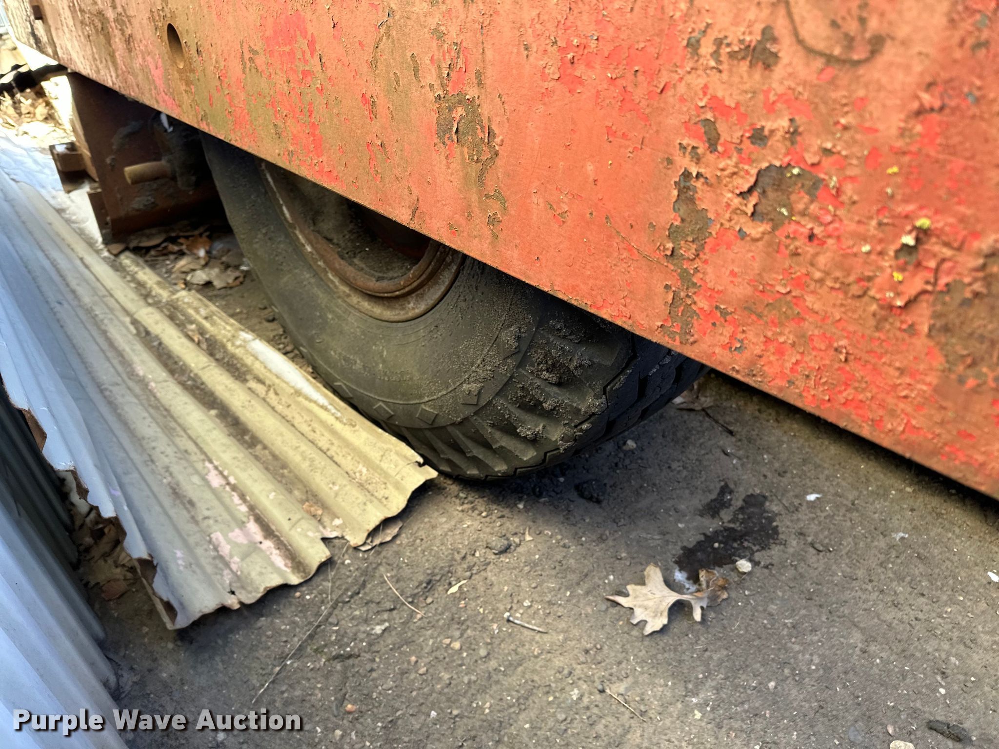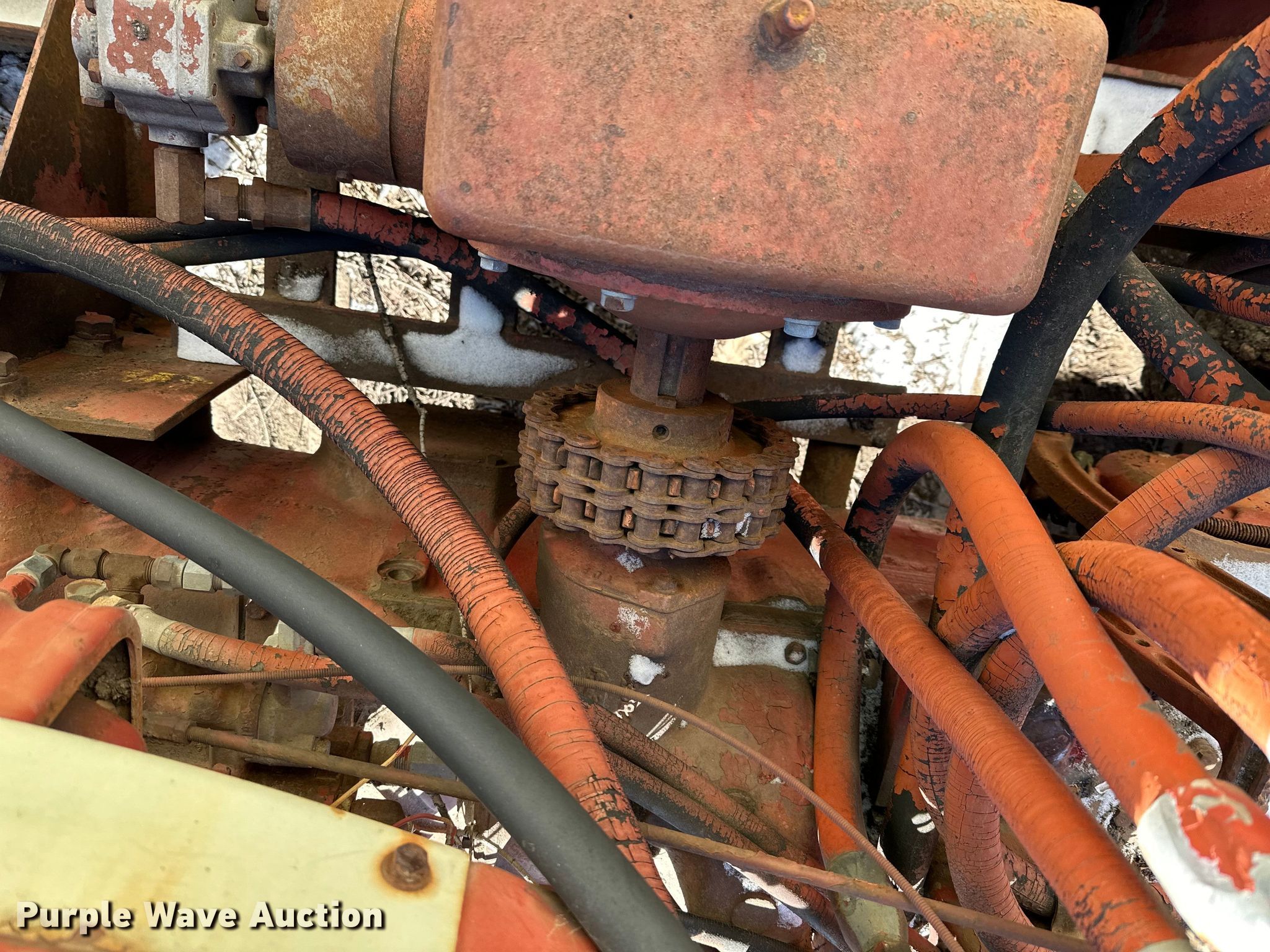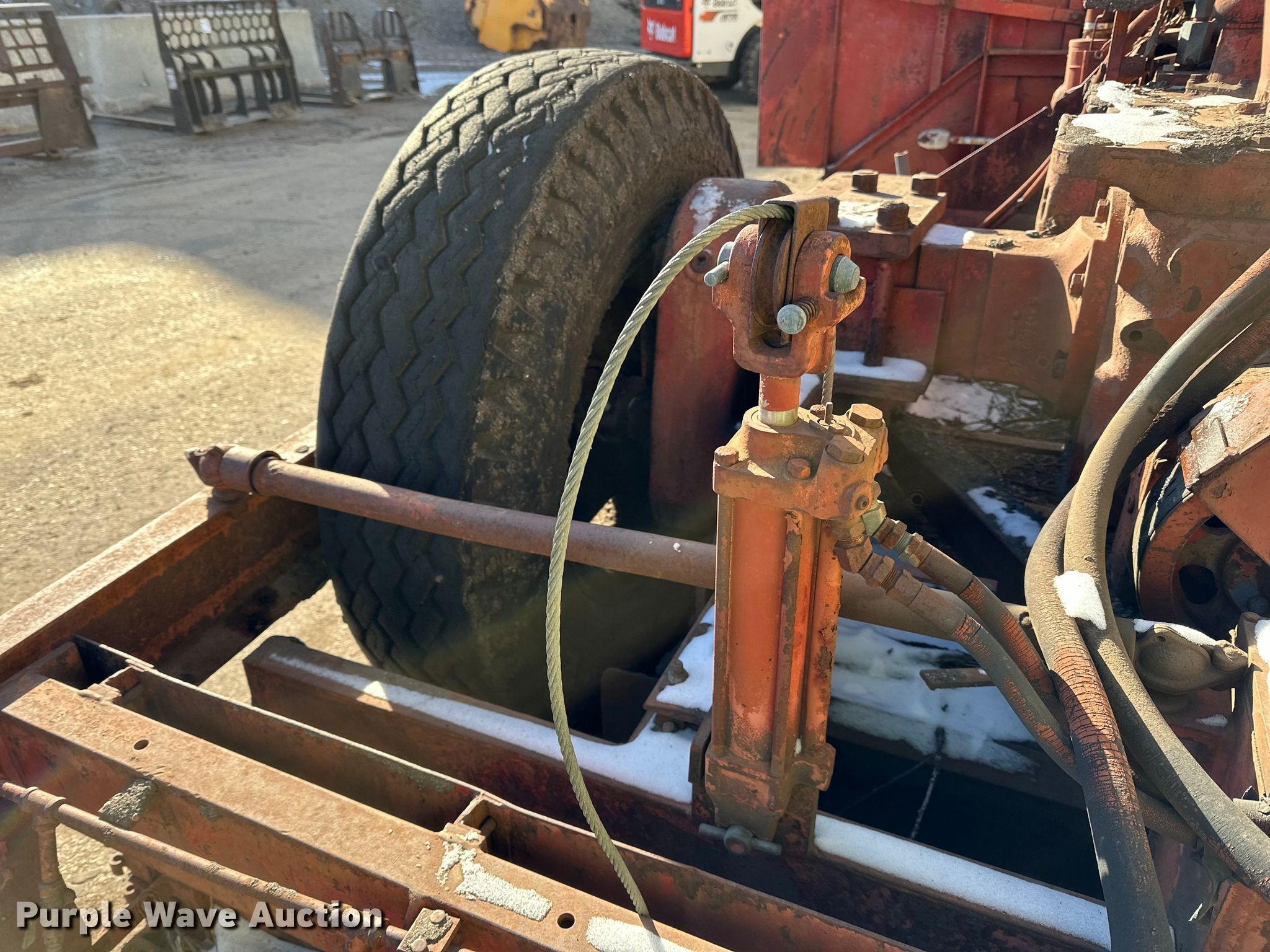 Paver. Hours: 2,674 on meter. Engine Cylinders: 6, Fuel type: Gas. Transmission 5F - 1R. Features Screed, Paving width: 8', Screed heater: Propane, Front spread hopper width: 10', Material conveyor Width: 40". Tires Rear: 12.00-24. Notes Hopper contents not included, Front tires flat, Dead battery, Non-operational unit. T.A. Schifsky & Sons, Inc - Open Inspection April 6, 10, and 13. 2370 East Hwy 36 North. St. Paul, MN 55109
