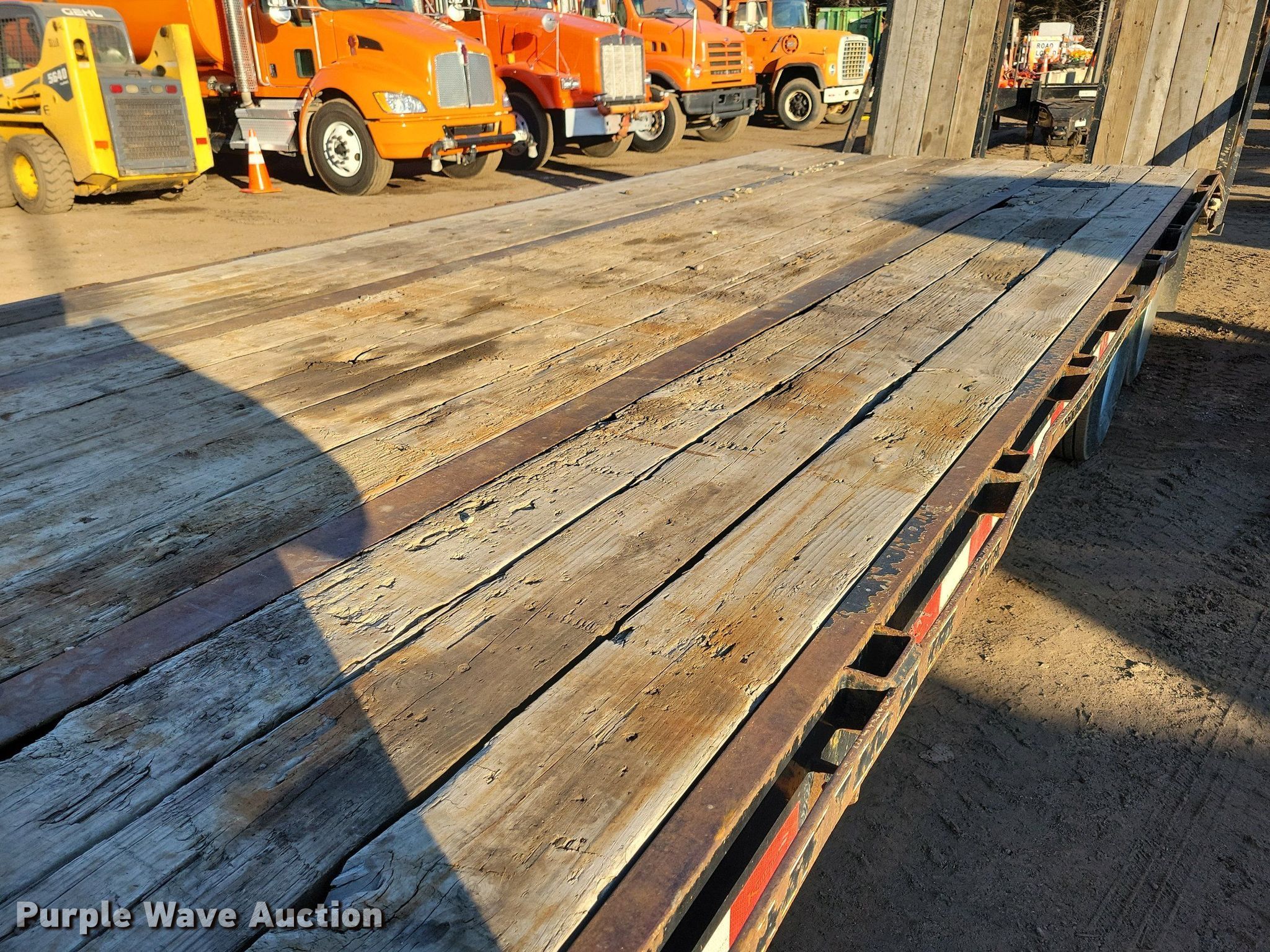 2015 Kaufman equipment trailer. VIN: 5SHFH2521FB001216, Unit #: T15B. Dimensions Overall: 30' 2" L x 101" W, Deck: 19' L x 101" W, Deck height: 2' 11", Tail length: 6', Ramps: Hydraulic Length: 8'. Features Deck type: Wood. Chassis Hitch: Pintle, Landing gear: Dual, Suspension: Spring, Brakes: Electric, Axles: Tandem, GVWR: 25,900 lbs, GAWR: 10,000 lbs. Tires Steel wheels, Size: 235/75R17.5. Minnesota title. T.A. Schifsky & Sons, Inc - Open Inspection April 6, 10, and 13. 6077 Lake Elmo Avenue North. Stillwater, MN 55082