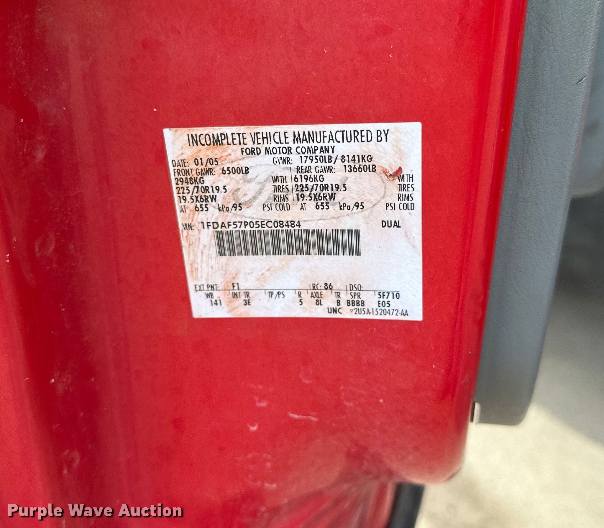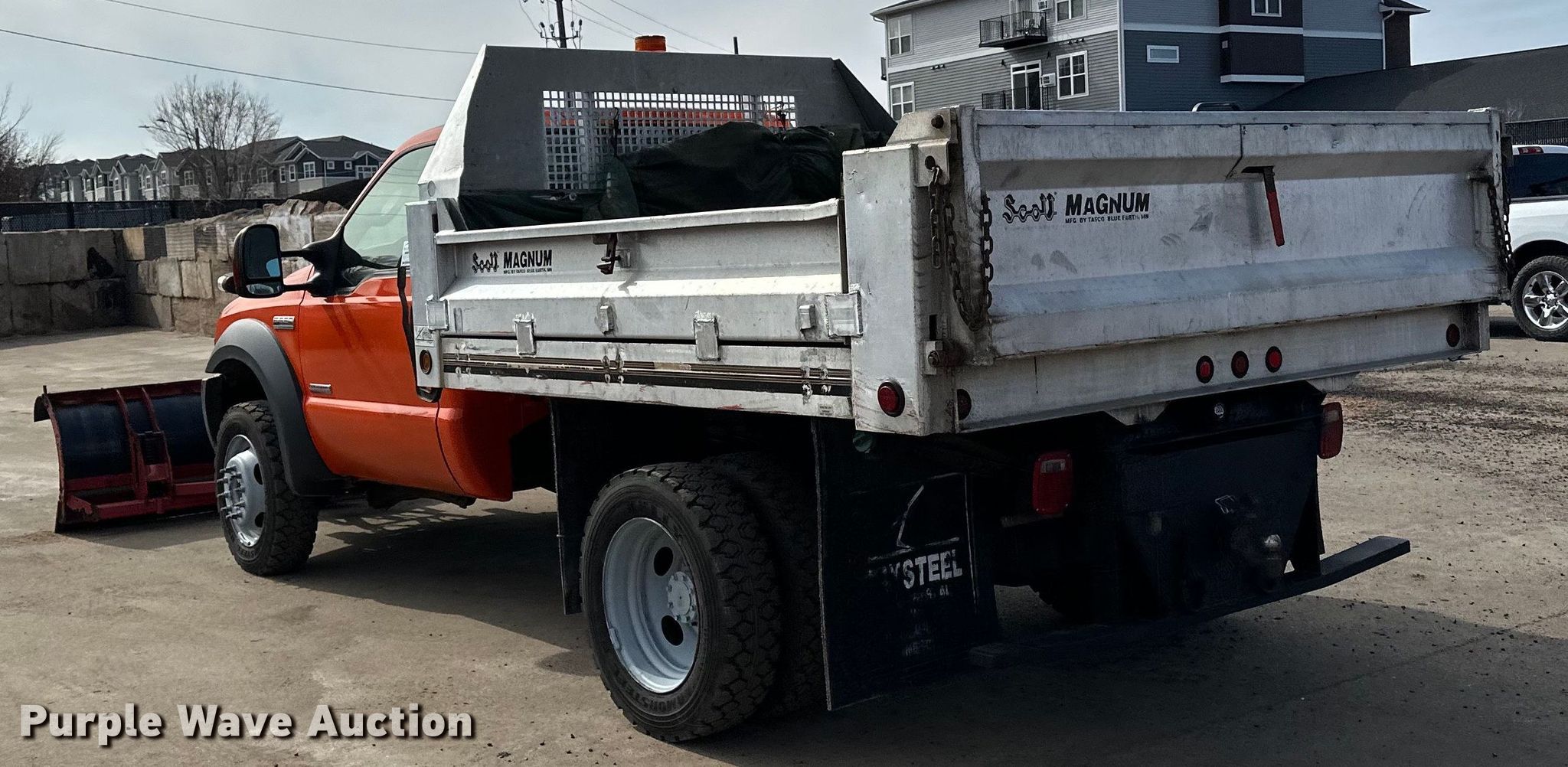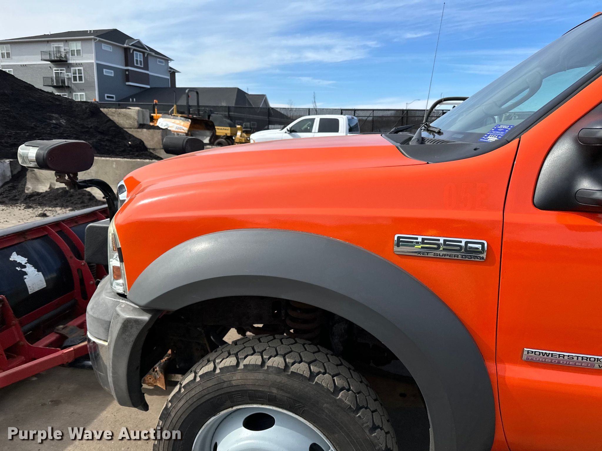 2005 Ford F550 dump truck. Miles: 142,202 on odometer, VIN: 1FDAF57P05EC08484. Engine Displacement: 6.0L V8 OHV, Cylinders: 8, Fuel type: Diesel. Transmission Automatic. Chassis Axles: Single. Interior AC, Heat, Power windows, Cruise control. Features Dump bed Ram: Single, End gate: Manual, Plow Hiniker, Width: 108". Tires Size: 225/70R19.5. Minnesota title. T.A. Schifsky & Sons, Inc - Open Inspection April 6, 10, and 13. 2370 East Hwy 36 North. St. Paul, MN 55109