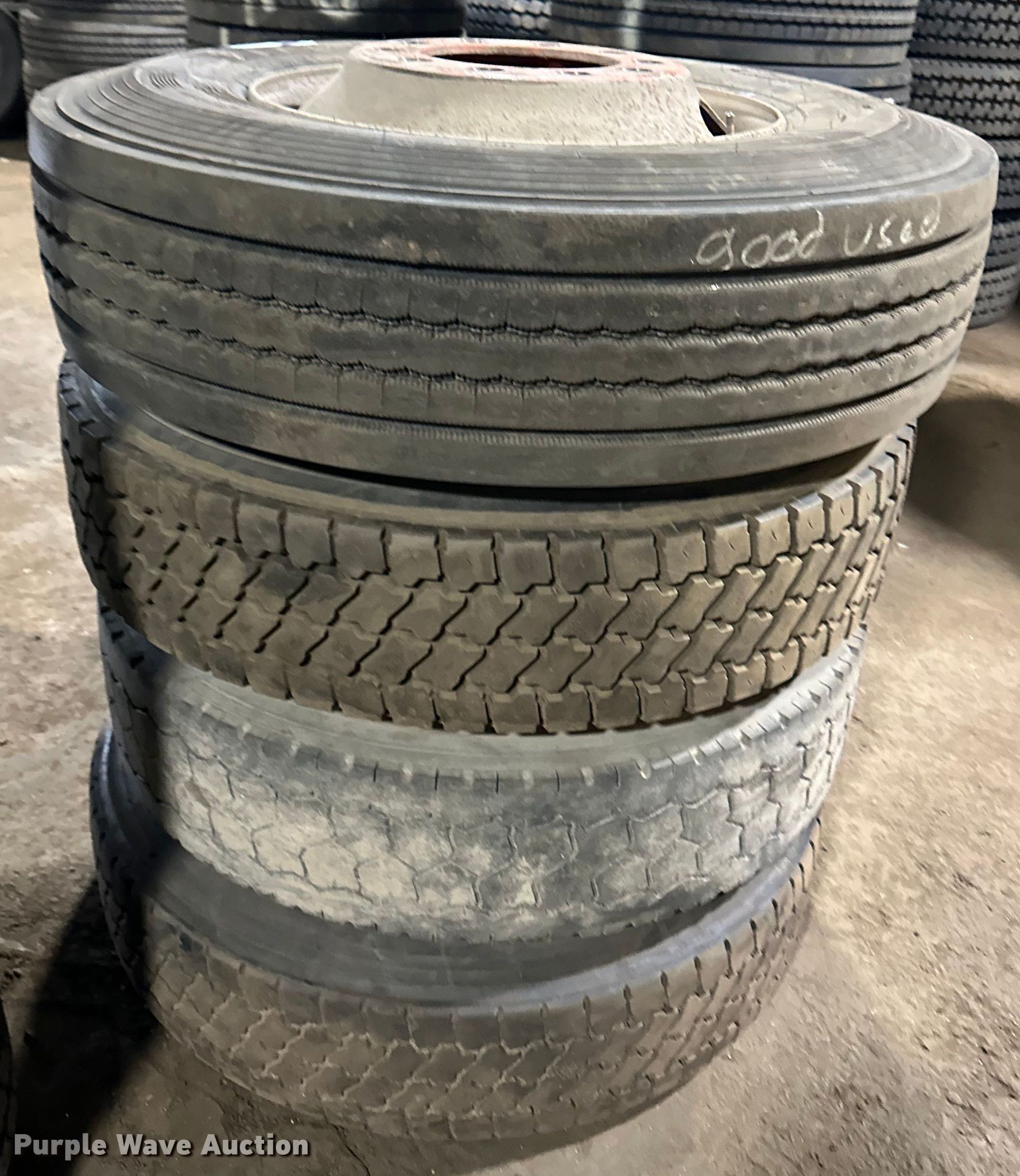 Purple Wave is selling a used Industrial Tires or Tracks in Minnesota. This item is a (4) 11R22.5 wheels and tires with the following: (4) 11R22.5 wheels and tires. T.A. Schifsky & Sons, Inc - Open Inspection April 6, 10, and 13. 2370 East Hwy 36 North . St. Paul, MN 55109