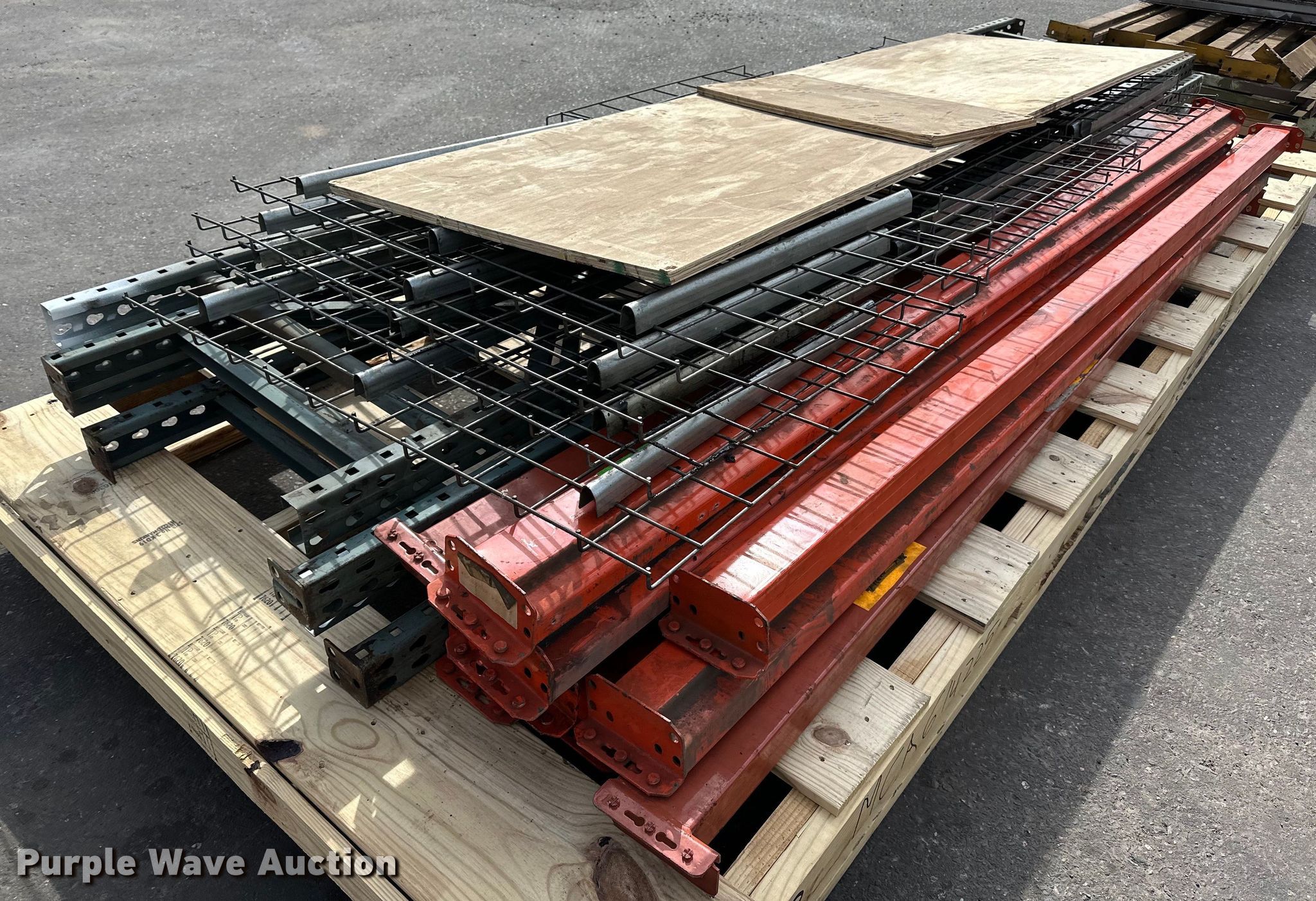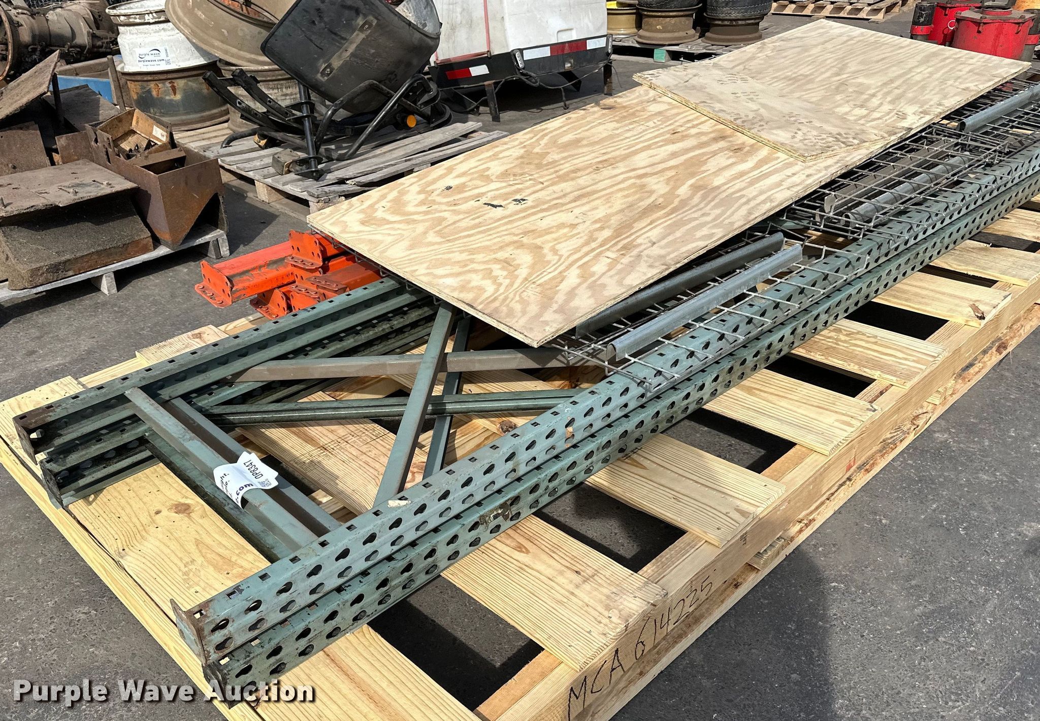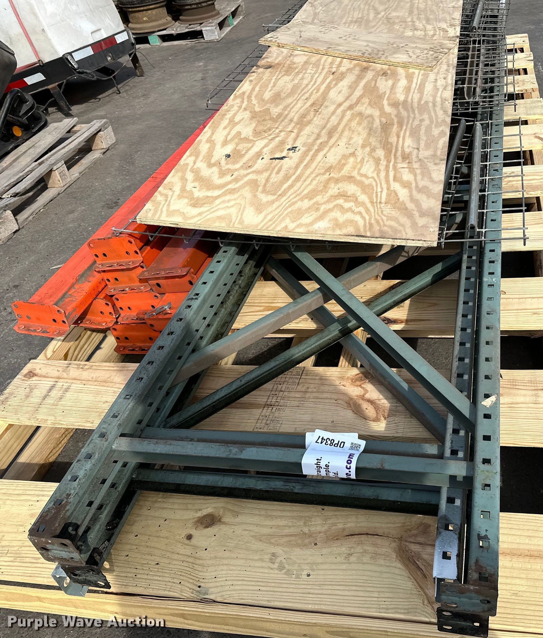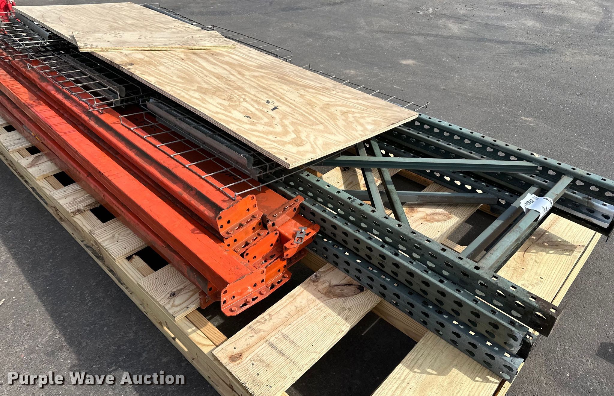 Pallet racking. (4) 12' x 30" ends, (10) 9' cross braces, (10) 44" x 31" shelves. T.A. Schifsky & Sons, Inc - Open Inspection April 6, 10, and 13. 2370 East Hwy 36 North. St. Paul, MN 55109
