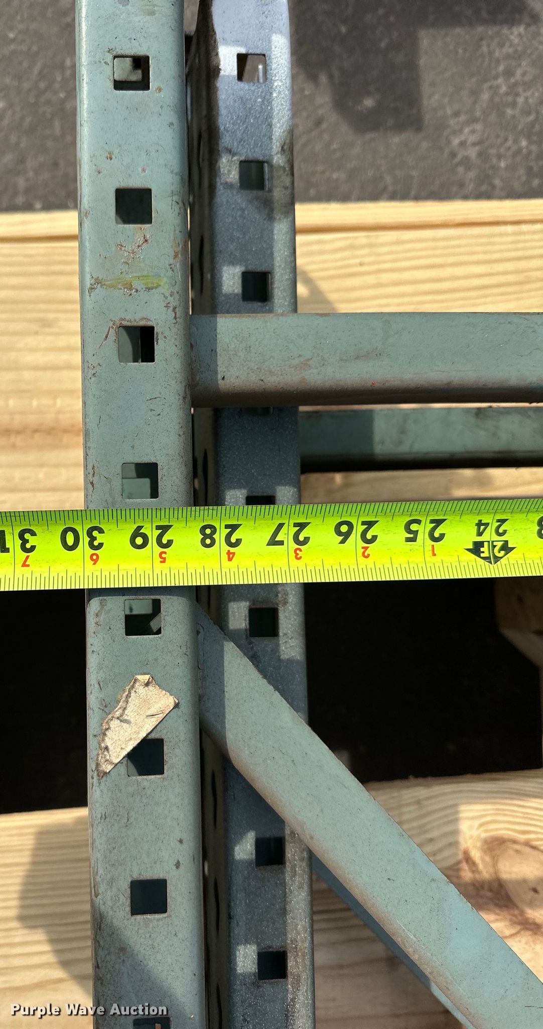 Purple Wave is selling a used Pallet Racking in Minnesota. This item is a Pallet racking with the following: (4) 12' x 30" ends, (10) 9' cross braces, (10) 44" x 31" shelves