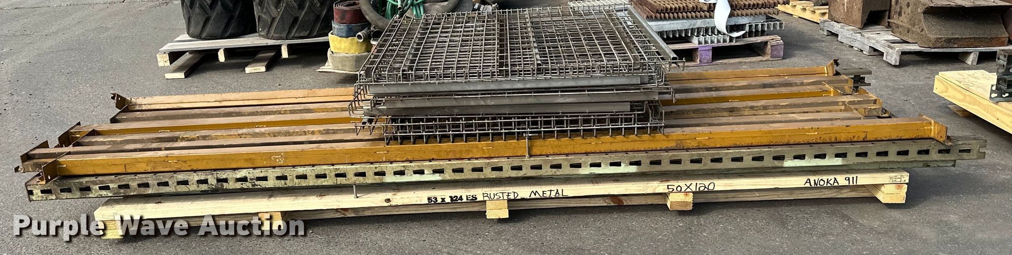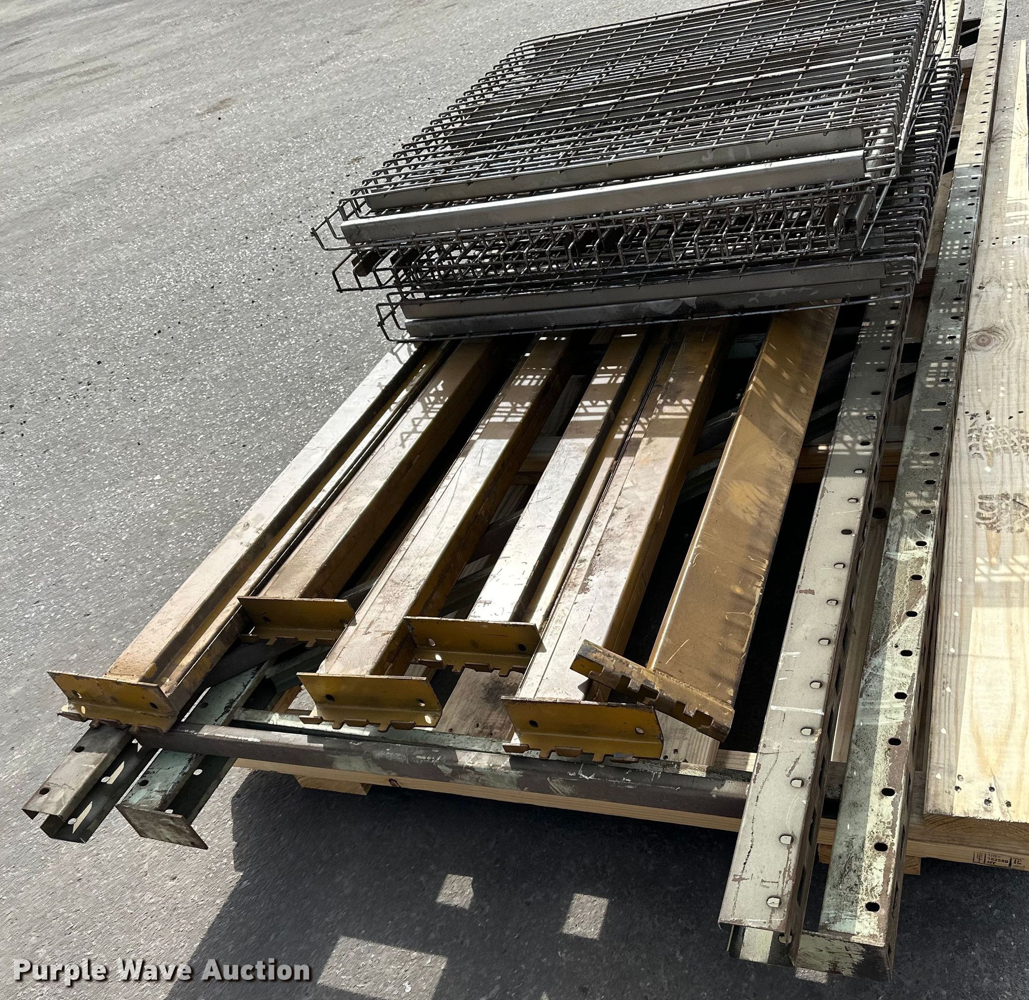 Pallet racking. (2) 12' x 44" ends, (6) 11' cross braces, (8) 45" x 42" shelves. T.A. Schifsky & Sons, Inc - Open Inspection April 6, 10, and 13. 2370 East Hwy 36 North. St. Paul, MN 55109