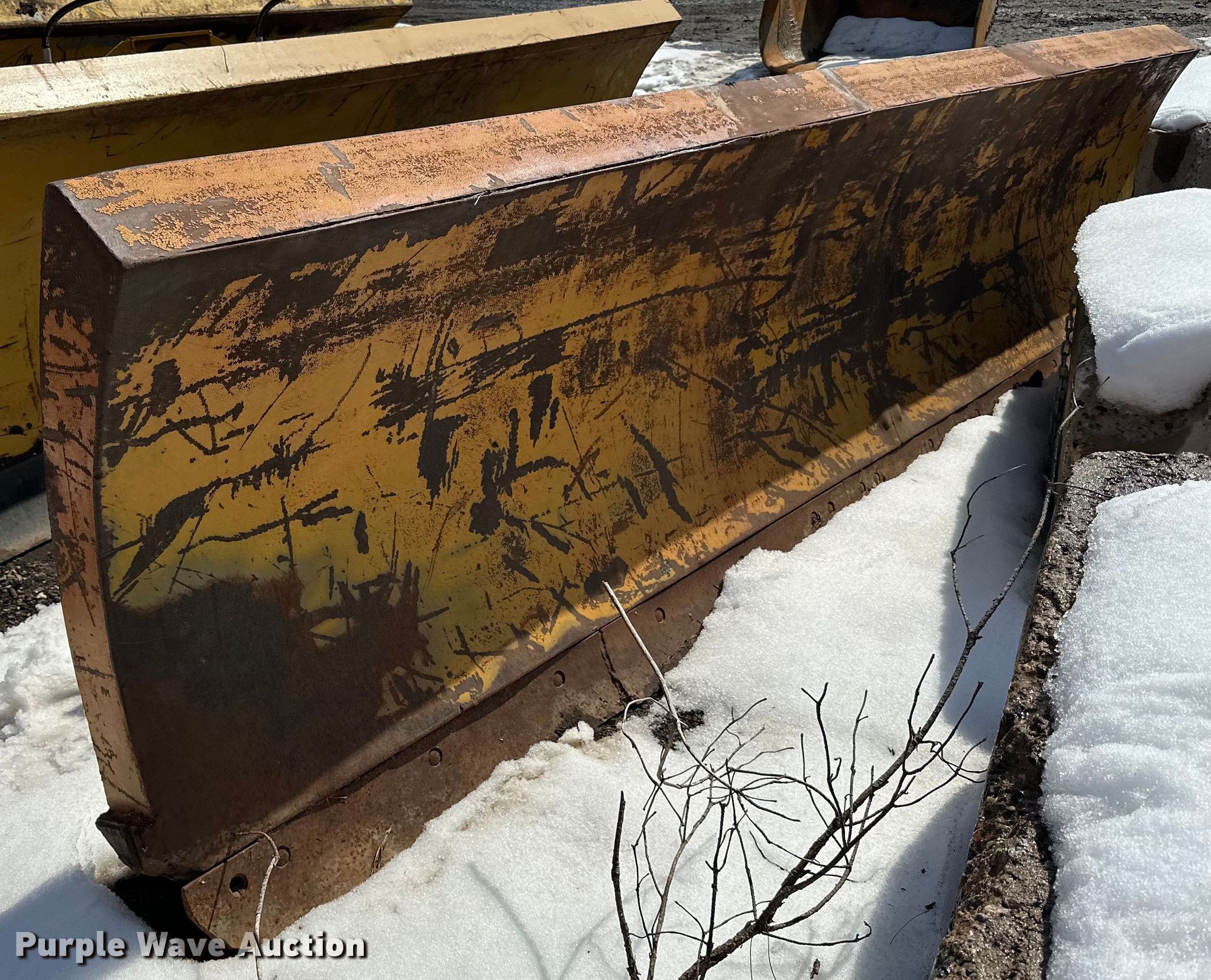14' W wheel loader snow plow. Cutting edge: Bolt-on, Fits Caterpillar 962H wheel loader. T.A. Schifsky & Sons, Inc - Open Inspection April 6, 10, and 13. 6077 Lake Elmo Avenue North. Stillwater, MN 55082