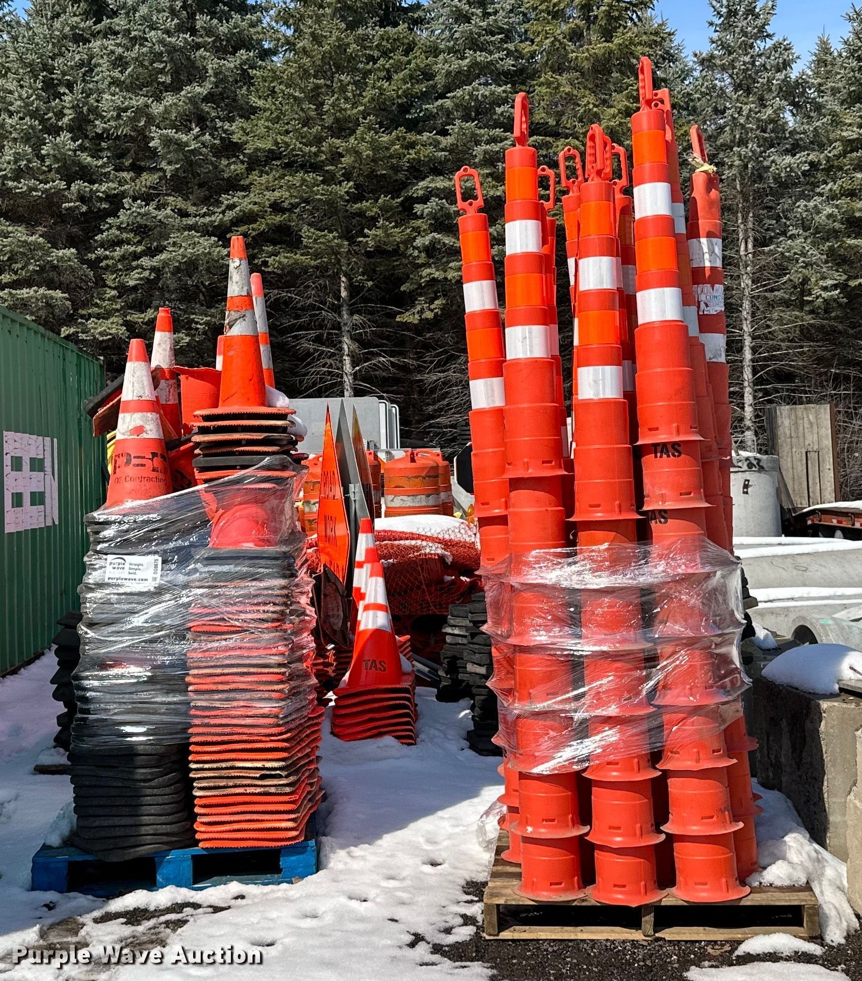 Road safety equipment. Cones, Barricades, Signs. T.A. Schifsky & Sons, Inc - Open Inspection April 6, 10, and 13. 6077 Lake Elmo Avenue North. Stillwater, MN 55082