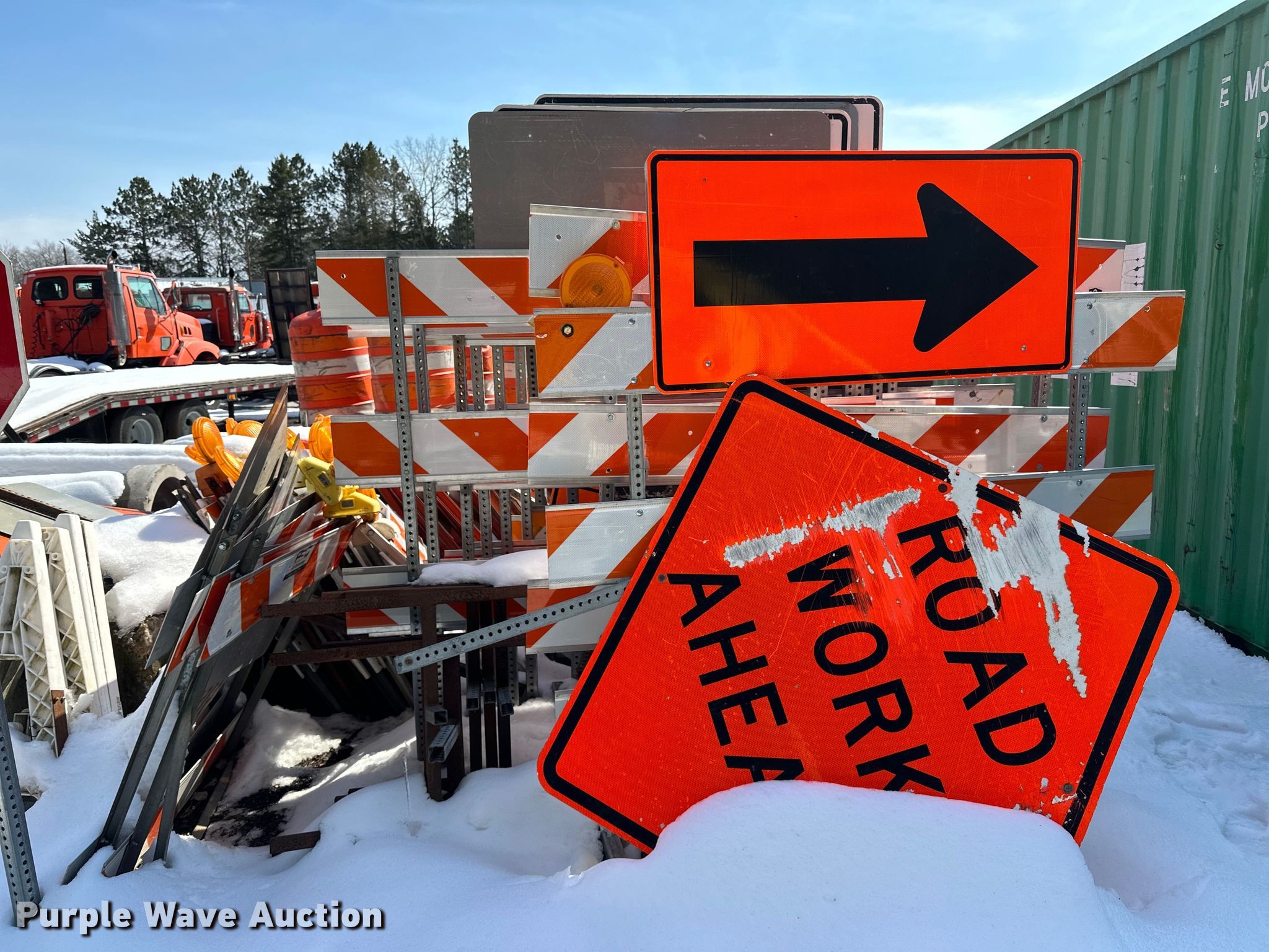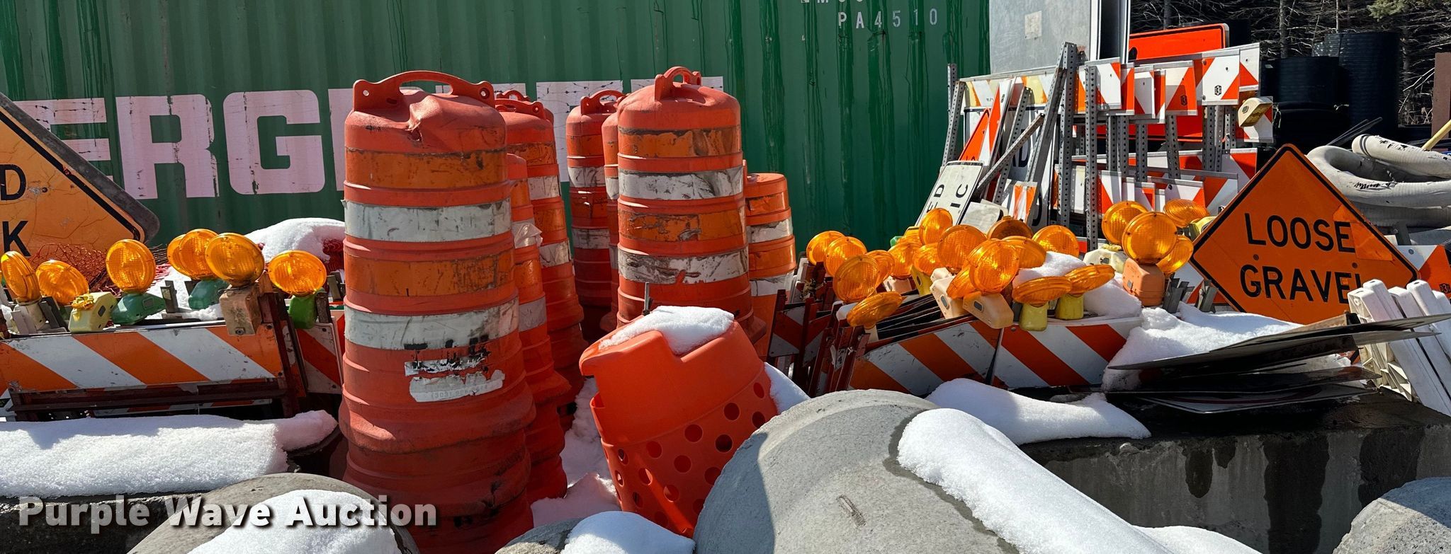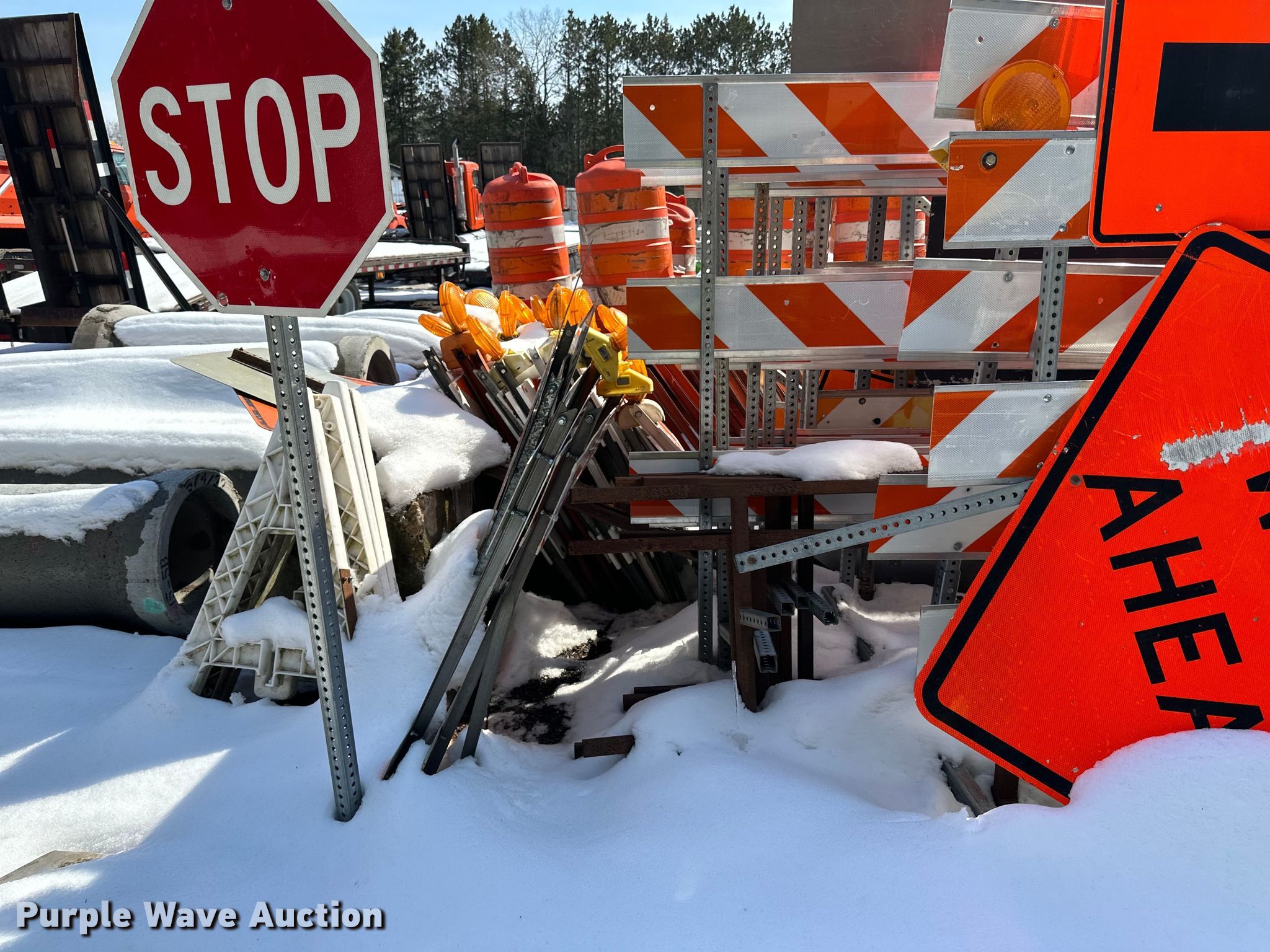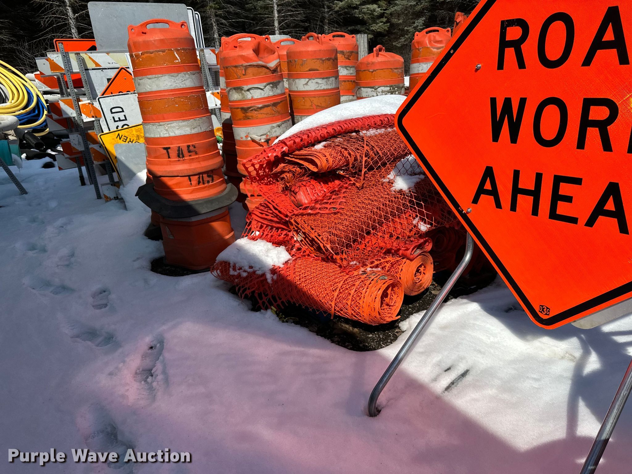 Purple Wave is selling a used Road Safety Equip. in Minnesota. This item is a Road safety equipment with the following: Cones, Barricades, Signs