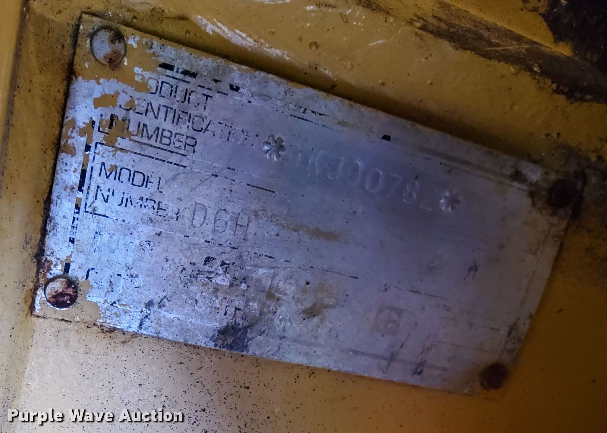 1994 Caterpillar D6H XL dozer. Hours: 7,365 on meter, Serial: 9KJ00782. Engine Caterpillar 3306, Cylinders: 6, Fuel type: Diesel, HP: 180, kW: 134. Transmission Powershift, 3F - 3R. Operators station OROPS, Steering: Differential. Features Rear drawbar, Dozer blade Type: Semi-U, Single-tilt, Width: 11' 4" W. Tracks Width: 30", Grouser pads: Single, Bottom rollers: 7, Track guards. T.A. Schifsky & Sons, Inc - Open Inspection April 6, 10, and 13. 6077 Lake Elmo Avenue North. Stillwater, MN 55082