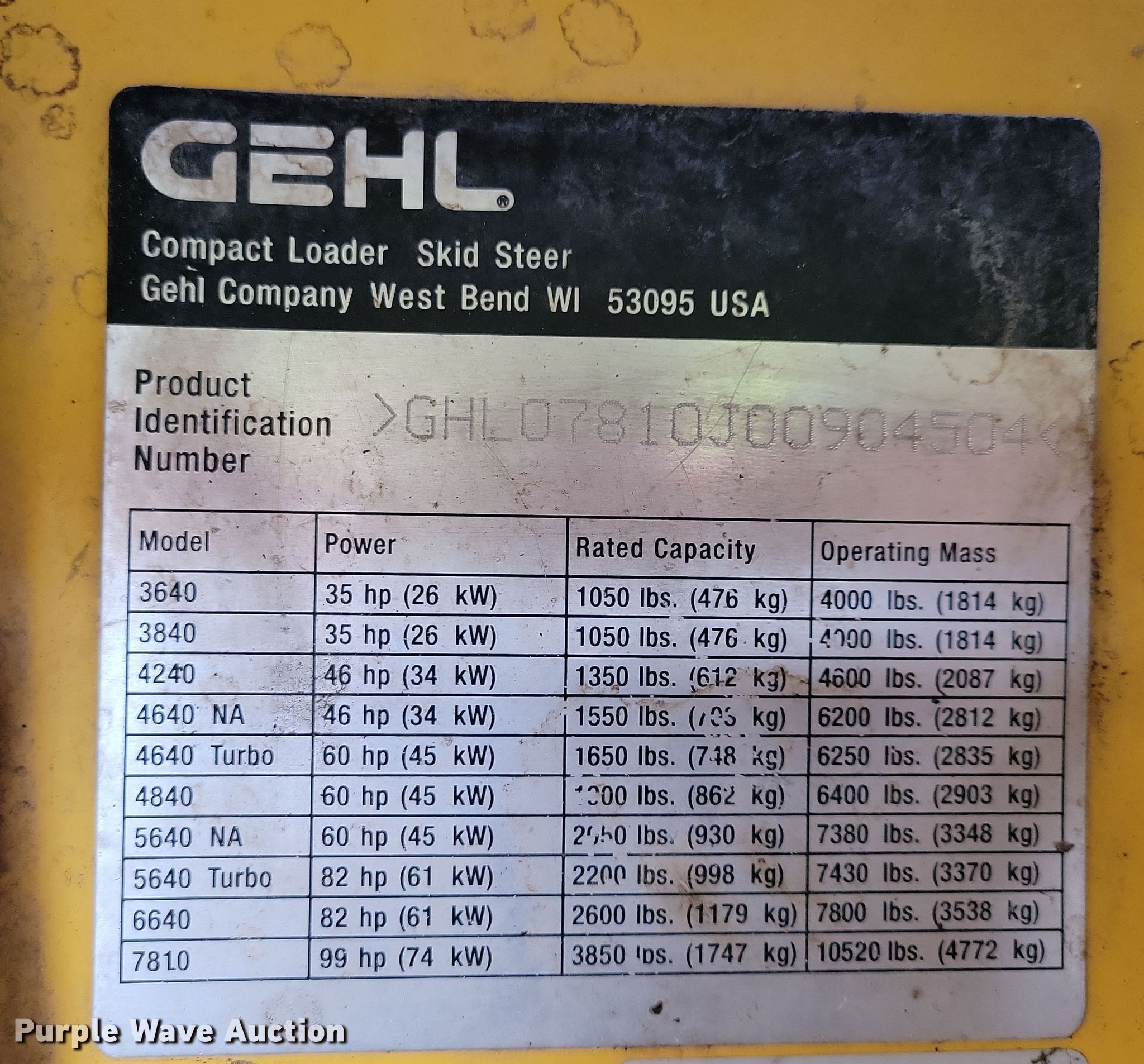 Purple Wave is selling a used Skid Steer Loader in Minnesota. This item is a 2006 Gehl 7810 skid steer loader with the following: Hours: 3,343 on meter, Serial: GHL07810J00904504