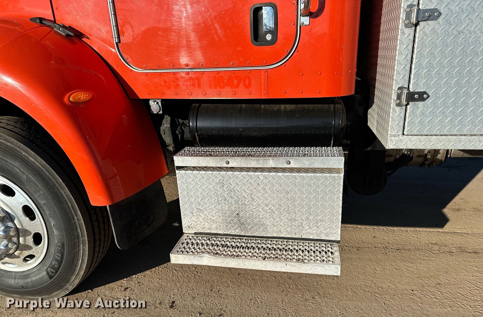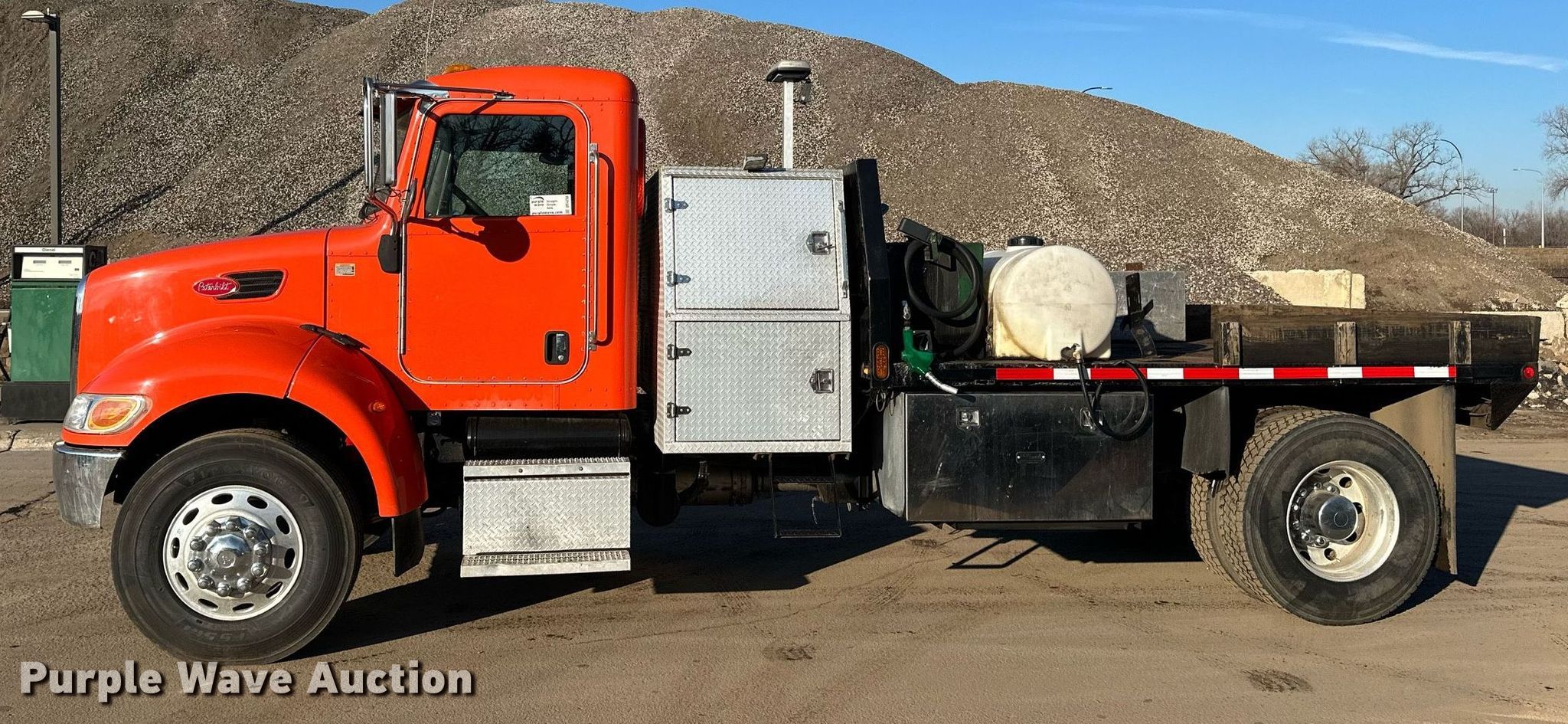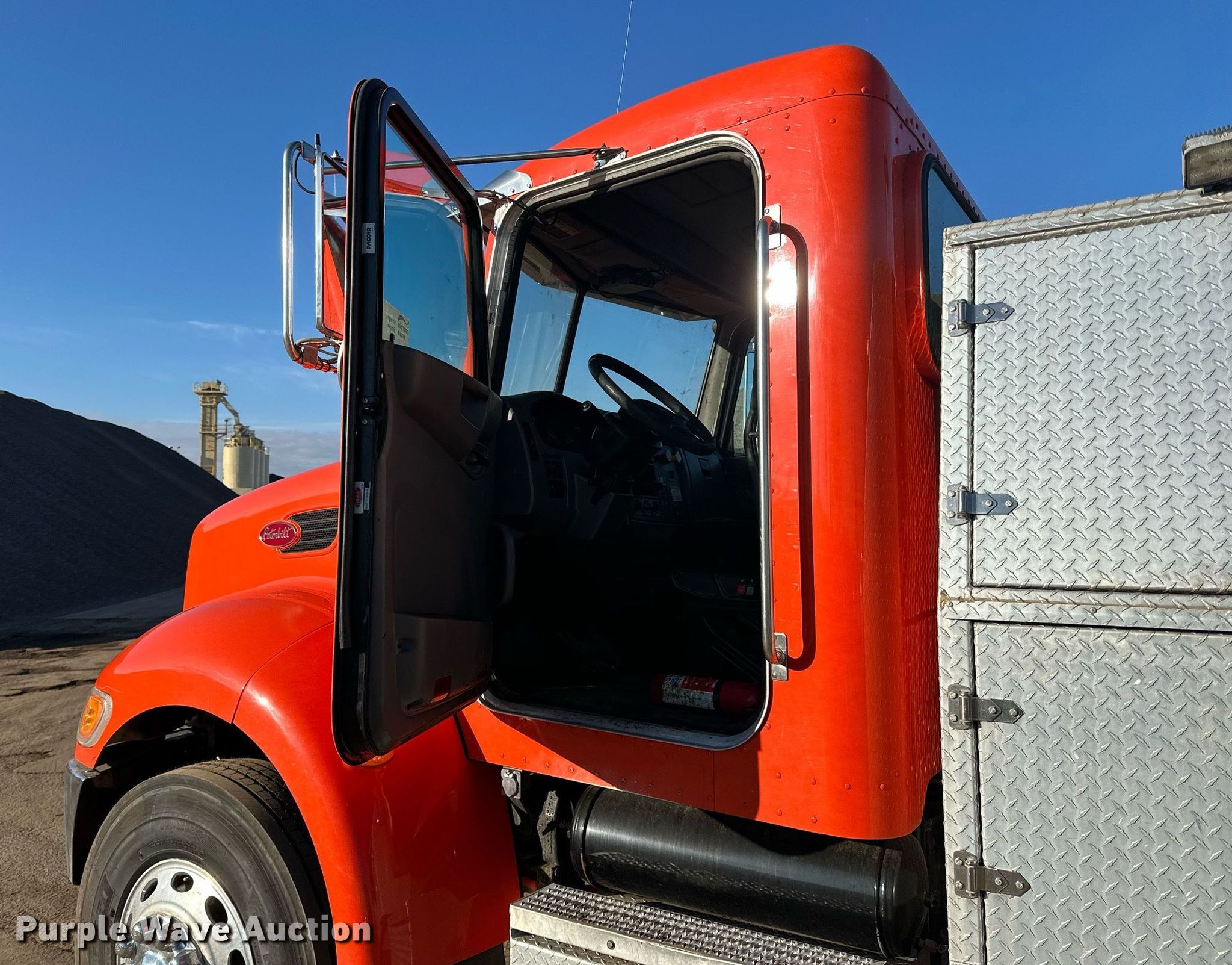 2012 Peterbilt 337 flatbed truck. Miles: 88,994 on odometer, Hours: 4,372 on meter, VIN: 2NP2HN7X1CM165637, Unit #: 12B. Engine Paccar PX-8, Serial: 73301519, Displacement: 8.3L, Cylinders: 6, Fuel type: Diesel, HP: 260. Transmission Allison, Automatic. Chassis Axles: Single, Suspension: Air, Brakes: Air, GVWR: 33,000 lbs. Interior AC, Heat, Heated mirrors, Power windows, Power locks, Cruise control, Brake controller. Features Flatbed 11' 6" L x 96" W, Removable sides. Tires Size: 11R22.5. Notes Pro Tech toolbox, Poly tank Capacity: 65 gallons, Auxiliary fuel tank GPI pump, Nozzle, Hose. Minnesota title. T.A. Schifsky & Sons, Inc - Open Inspection April 6, 10, and 13. 2370 East Hwy 36 North. St. Paul, MN 55109