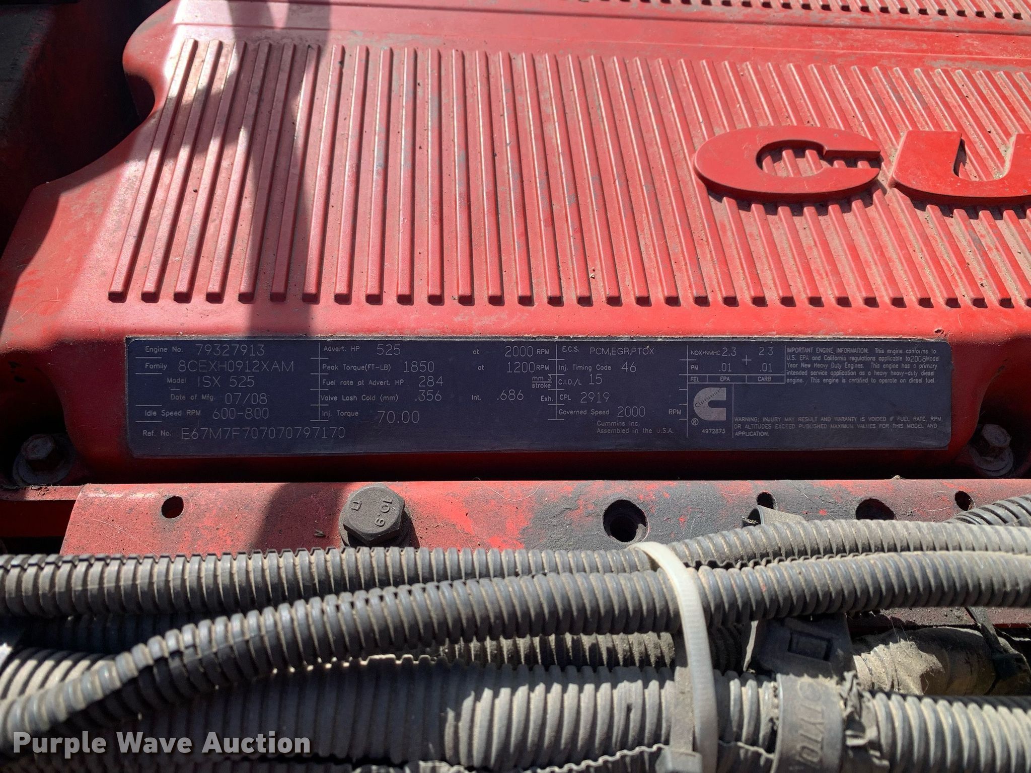 2014 Peterbilt 386 semi truck. Miles: 935,855 on odometer, VIN: 1XPHD49XXED213566. Engine Cummins ISX525, Displacement: 14.9L, Cylinders: 6, Fuel type: Diesel. Transmission Eaton Fuller, Manual. Chassis Axles: Tandem, Differential lock: Full, Suspension: Air Dump valves, Brakes: Air. Interior AC, Heat, Heated mirrors, Cruise control, Air ride cab, Sleeper Sleeper length: 65", Beds: Double bunk, Rear climate control, Auxiliary power unit Ingersoll-Rand, Engine Yanmar TK270M, Cylinders: 2, Displacement:.570L. Features Deck plate: Aluminum, Fifth wheel type: Air operated, Sliding, Fuel tank: Dual. Tires Size: 295/75R22.5. Notes Windshield chipped or cracked, Dead battery, Non-operational unit. Texas title. 902 Mansfield Webb Road. Arlington, TX 76002