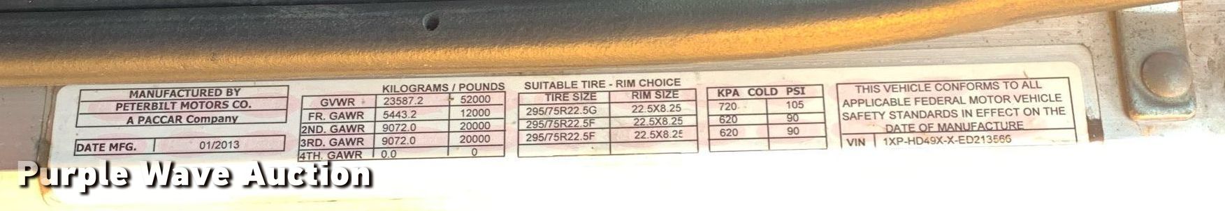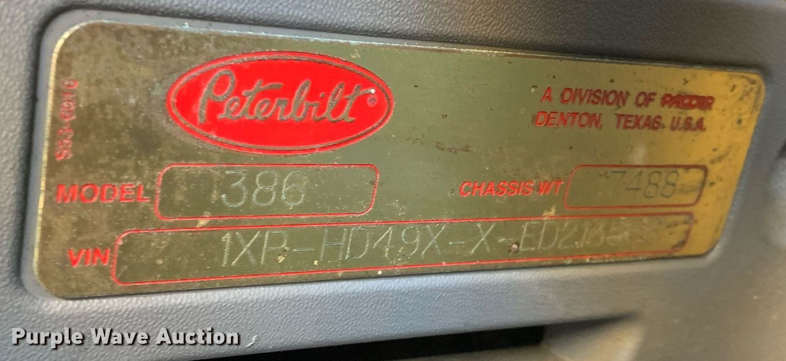 Purple Wave is selling a used Truck Tractor in Texas. This item is a 2014 Peterbilt 386 semi truck with the following: Miles: 935,855 on odometer, VIN: 1XPHD49XXED213566