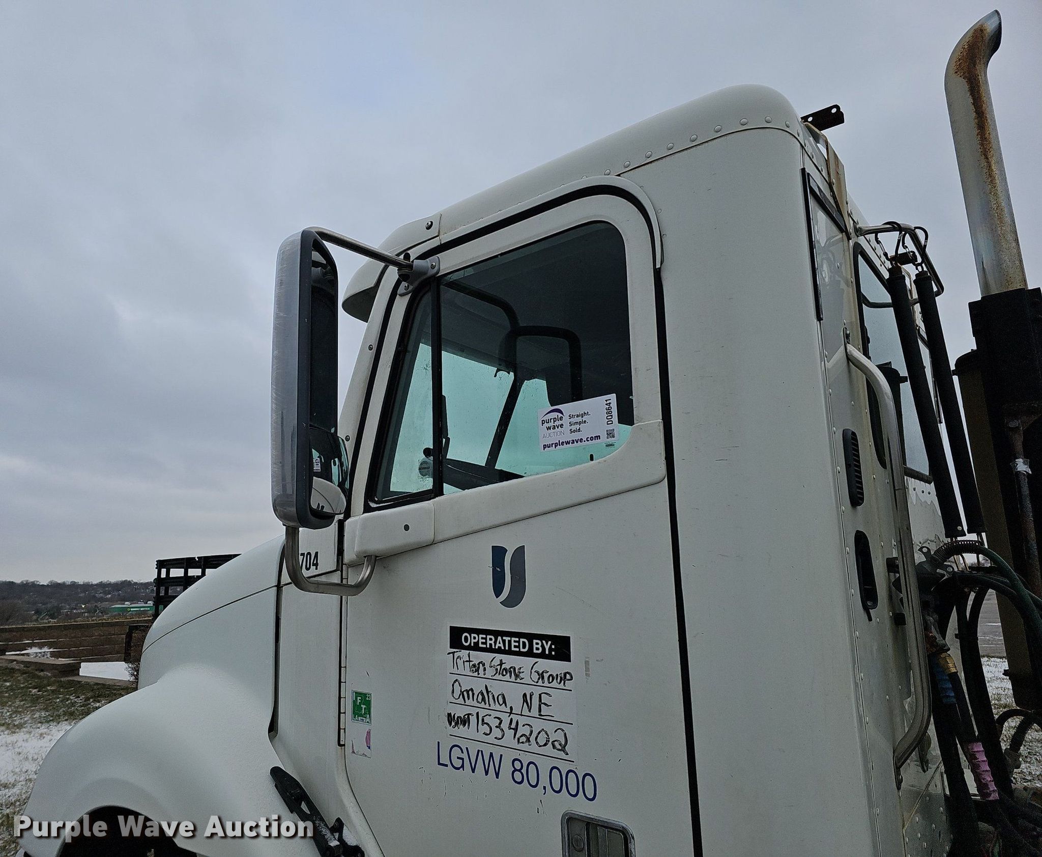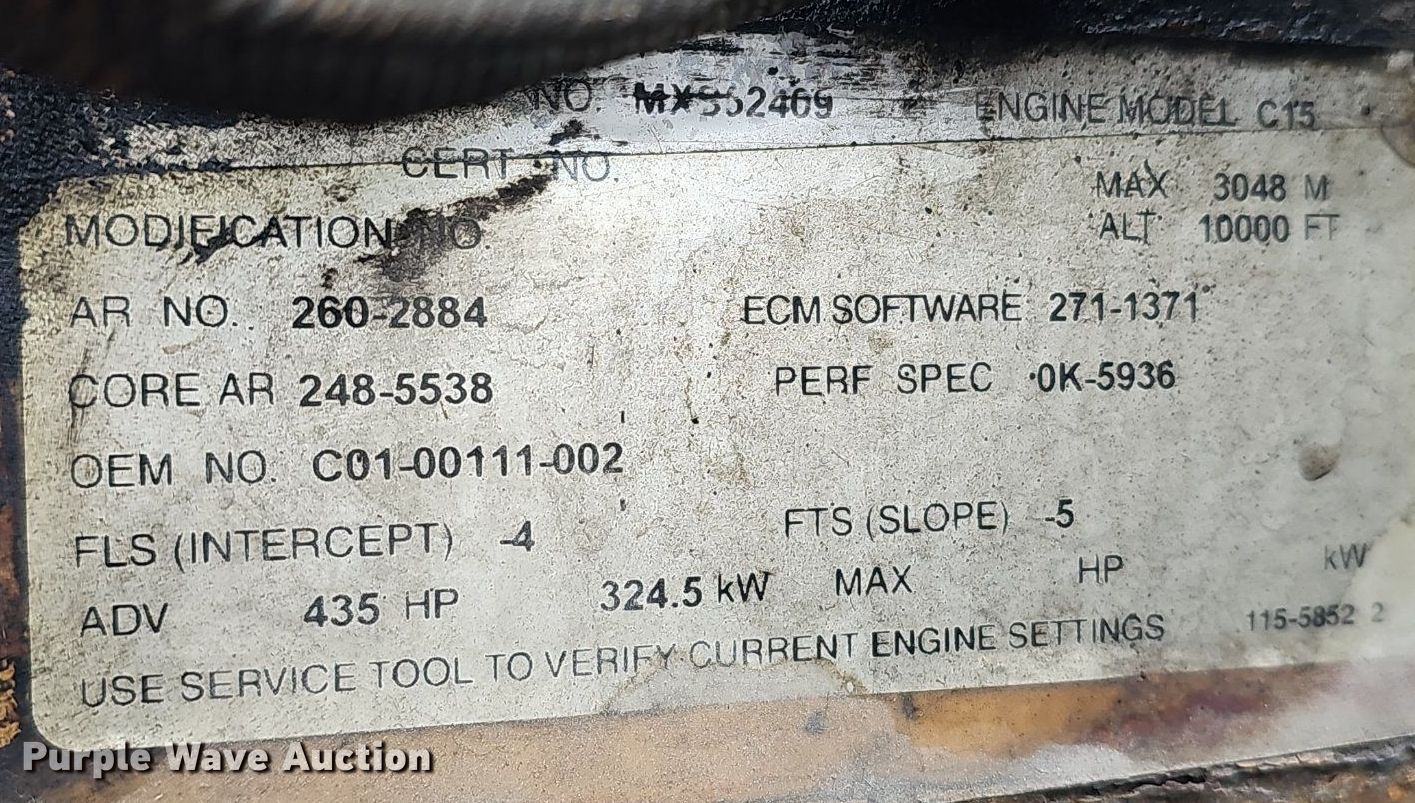 2007 Freightliner Columbia 120 semi truck. Miles: 67,030 on odometer Actual mileage unknown, Hours: 1,458 on meter Actual hours unknown, VIN: 1FUJA6AV37LY83818. Engine Caterpillar C15 Acert, Displacement: 14.6L, Cylinders: 6, Fuel type: Diesel, Engine brake. Transmission Freightliner, Manual, Speed: 10. Chassis Axles: Tandem, Differential lock: Inter-axle, Suspension: Air Dump valves, Brakes: Air, GVWR: 52,000 lbs FAWR: 12,000 lbs, IAWR: 20,000 lbs, RAWR: 20,000 lbs, Wheelbase: 172". Interior AC, Heat, Heated mirrors, Cruise control, Air ride cab. Features Deck plate: Aluminum, Fifth wheel type: Air operated, Sliding, Fuel tank: Dual. Tires Front: 295/75R22.5, Rear: 445/50R22.5. Notes Dash warning indicator: ECU 128, Windshield chipped or cracked, Unknown operating condition. Louisiana title. Mileage has not been verified. Exempt will be written in the odometer disclosure on the title. Triton Stone Group. 13436 Industrial Frontage Road North. Omaha, NE 68137