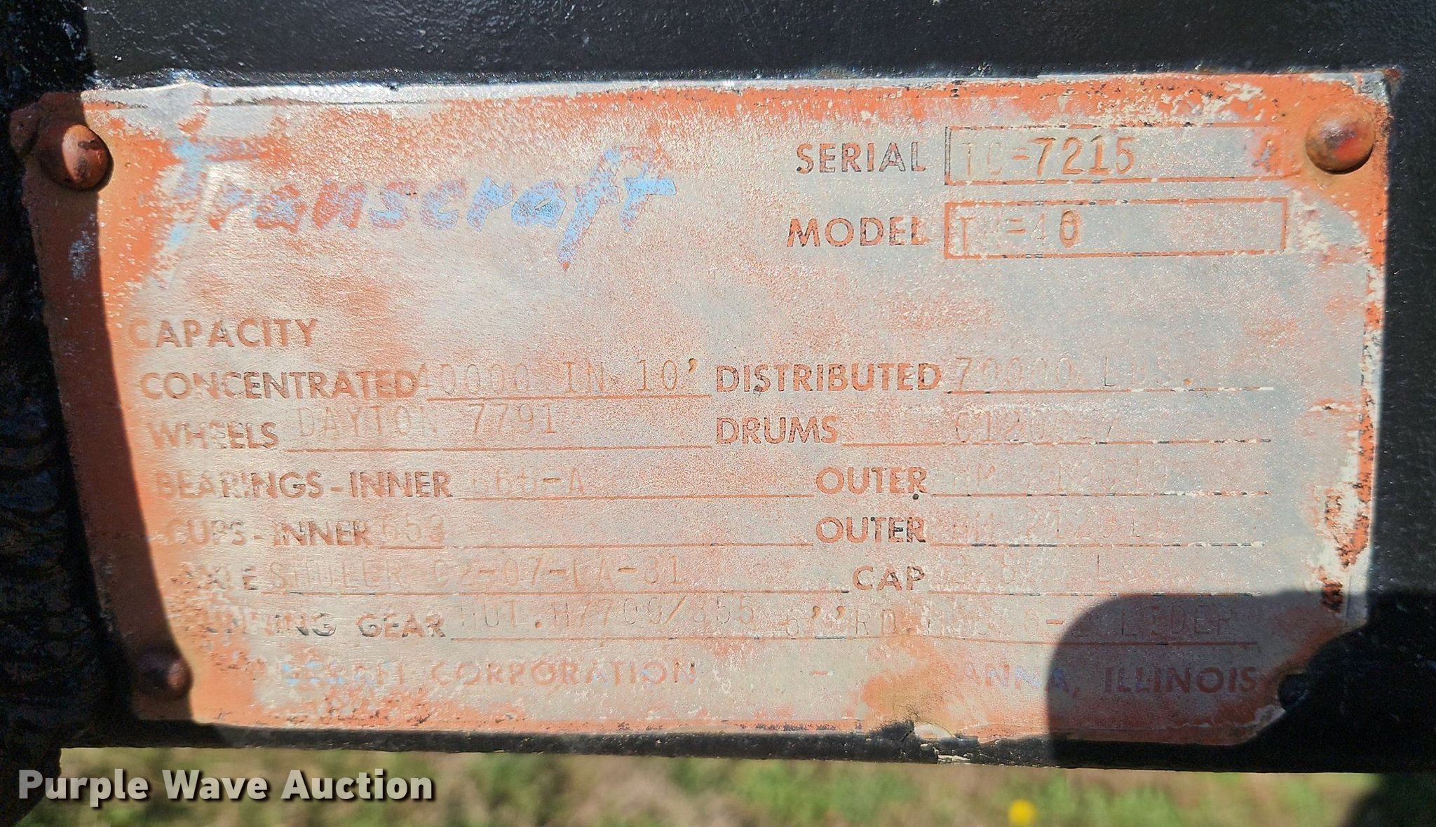 Purple Wave is selling a used Trailer Other in Kansas. This item is a 1974 Transcraft TH40 scrap trailer with the following: Serial: TC7215