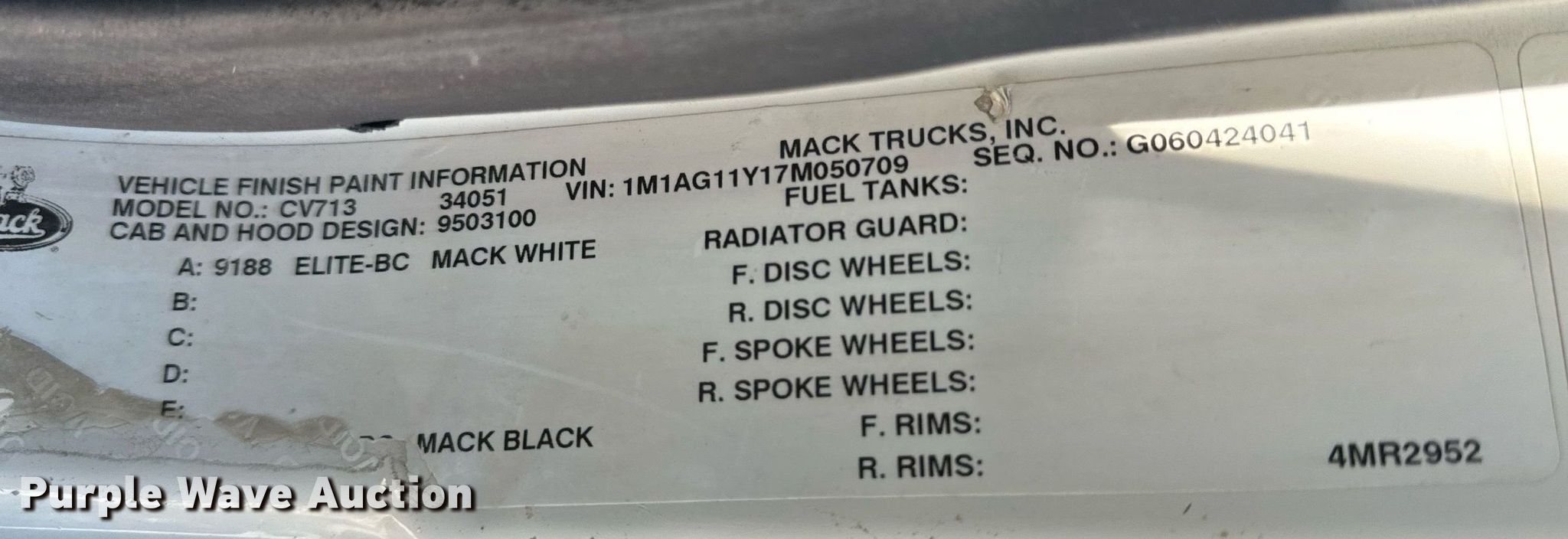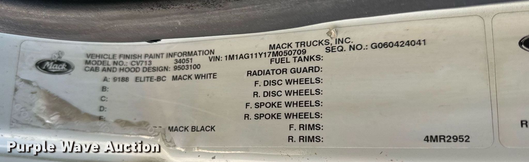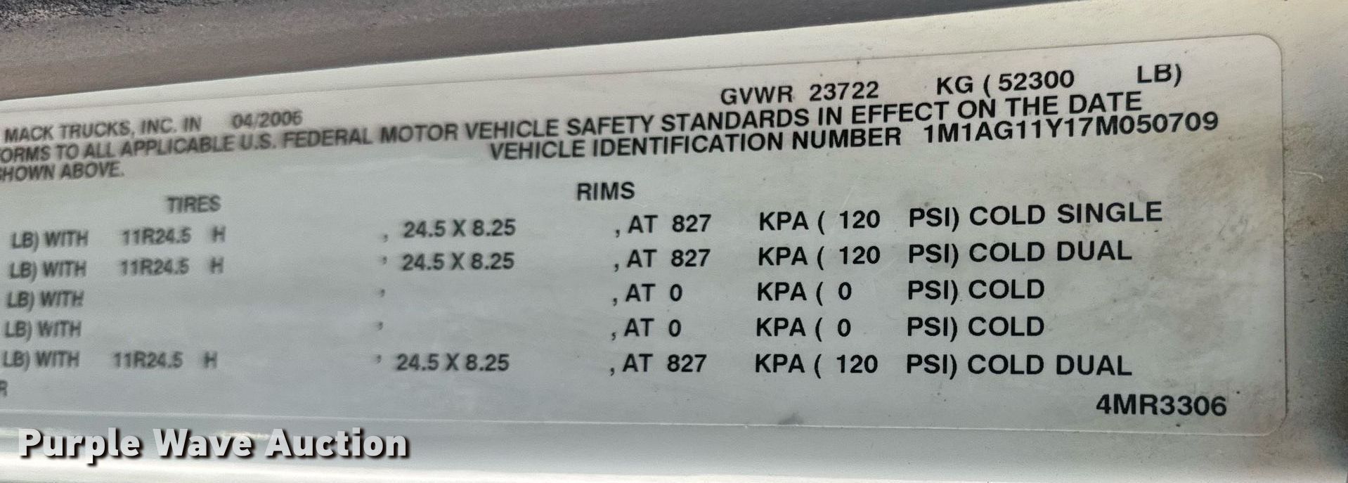 - VIN: 1M1AG11Y17M050709