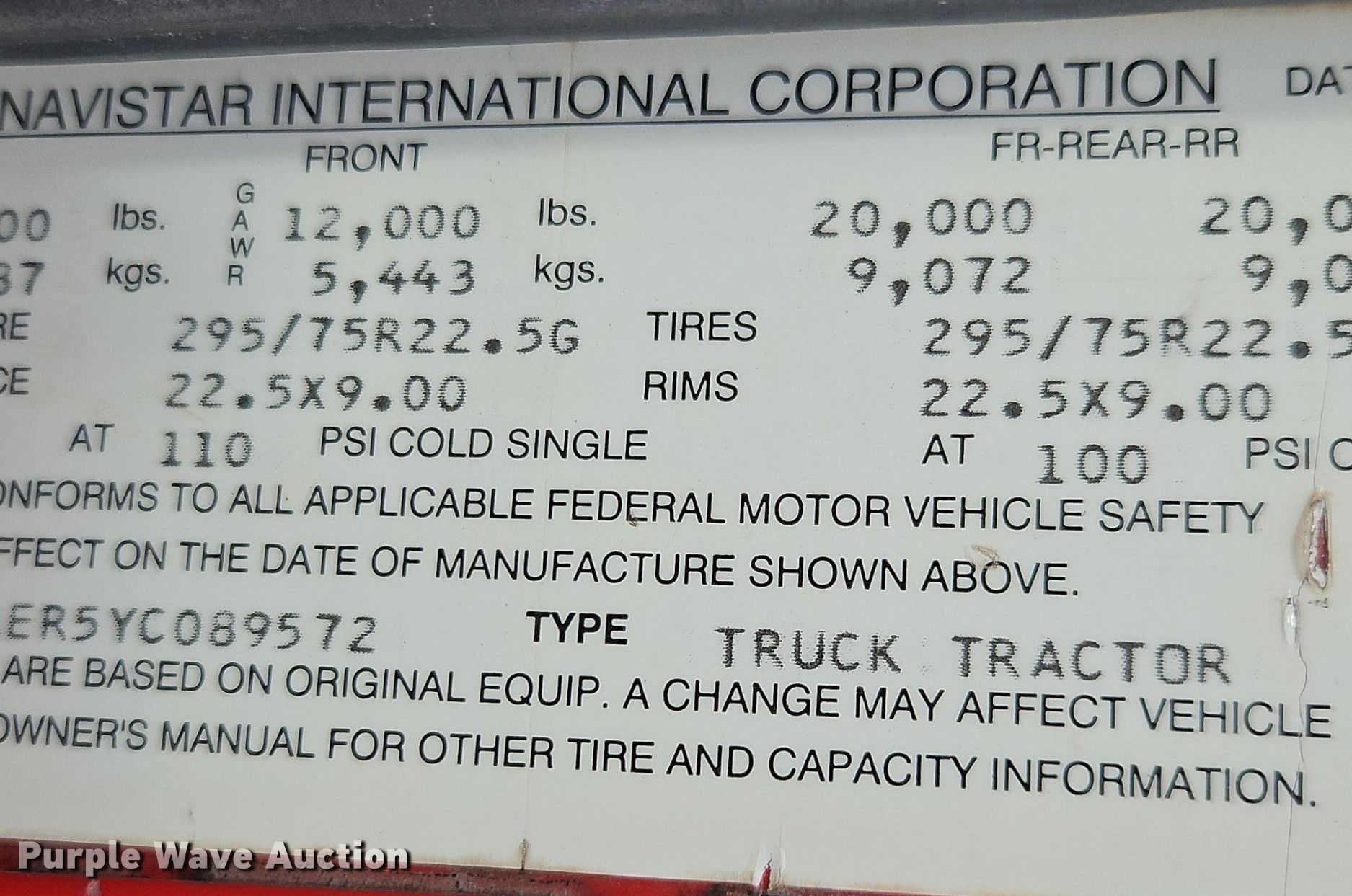 - VIN: 2HSCNAER5YC089572