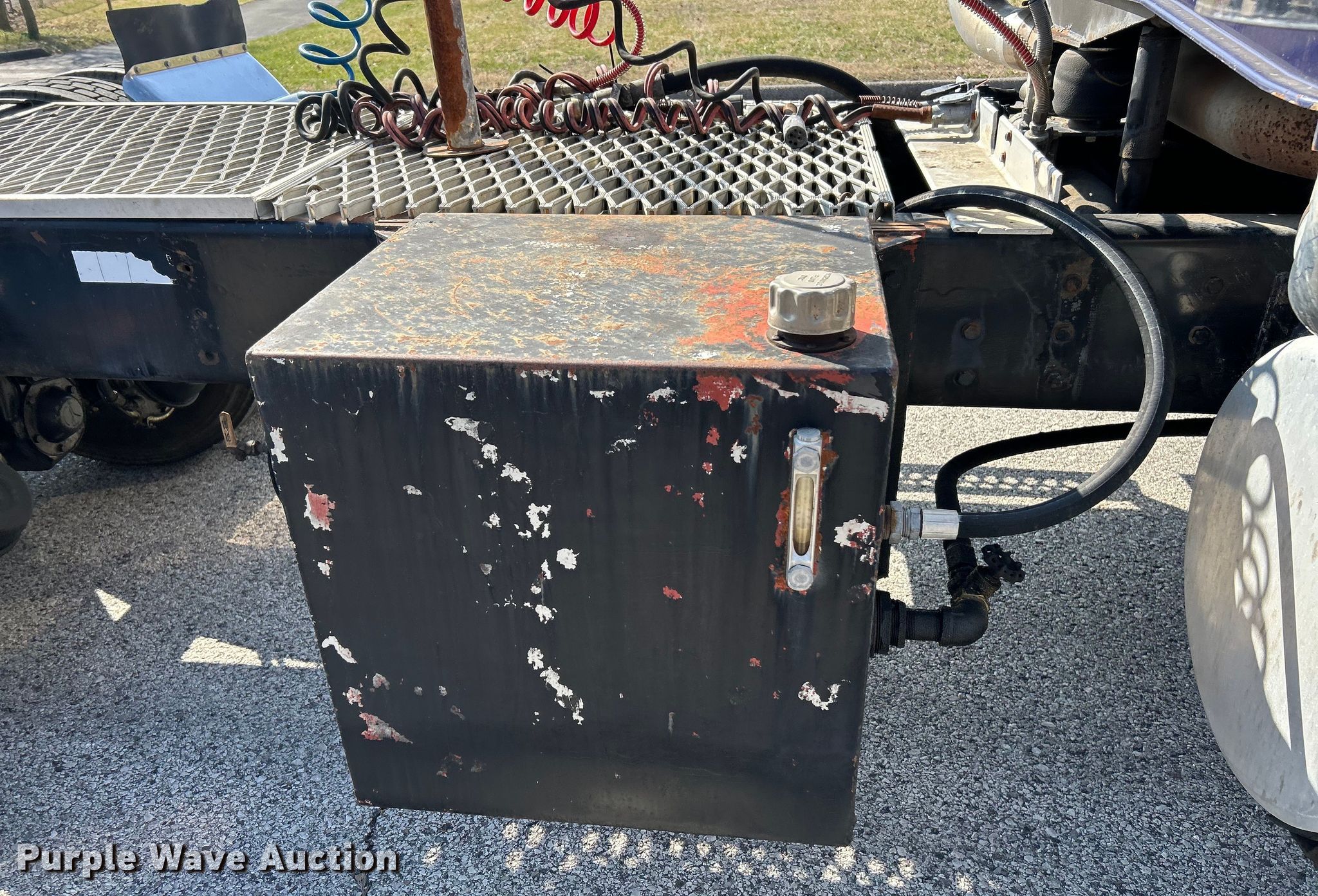 1998 Western Star 4964FX semi truck. Miles: 463,519 on odometer, VIN: 2WKPDDJH1WK951802. Engine Cummins N14 Plus, Displacement: 14.0L, Cylinders: 6, Fuel type: Diesel, Engine brake. Transmission Eaton Fuller, Manual, Speed: 10. Chassis Axles: Tandem, Differential lock: Inter-axle, Suspension: Air, Brakes: Air, PTO, Wet kit, GVWR: 52,000 lbs FAWR: 12,000 lbs, IAWR: 20,000 lbs, RAWR: 20,000 lbs. Interior AC, Heat, Heated mirrors, Cruise control. Features Deck plate: Aluminum, Fifth wheel type: Air operated, Sliding, Fuel tank: Dual. Tires Size: 11R24.5. Notes Windshield chipped or cracked. Missouri title. Title distribution may be delayed up to 14 days from verification of funds. Fuel Carriers Inc. Retirement Auction. St. Charles, MO 63301