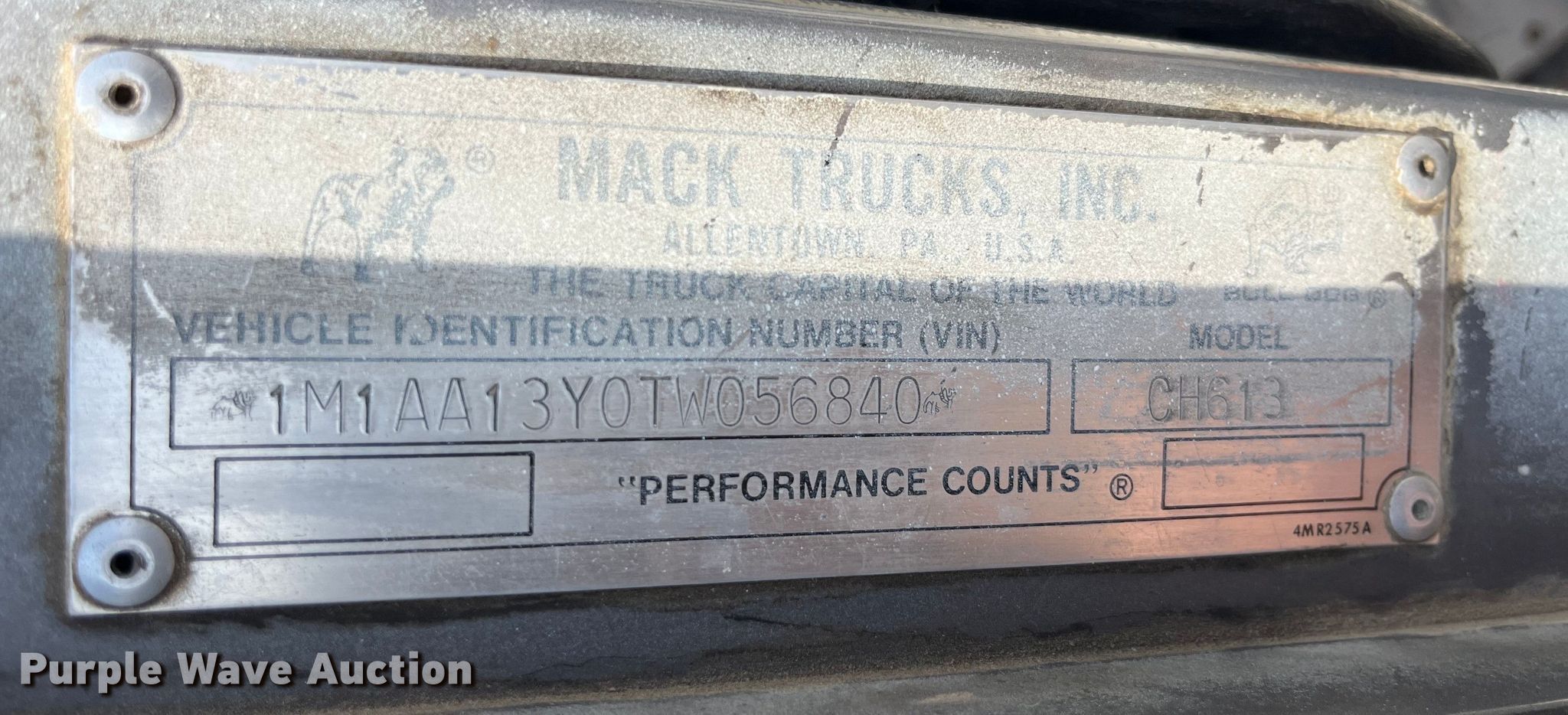 Purple Wave is selling a used Truck Tractor in Illinois. This item is a 1996 Mack CH613 semi truck with the following: Miles: 924,996 on odometer, Hours: 36,557 on meter, VIN: 1M1AA13Y0TW056840