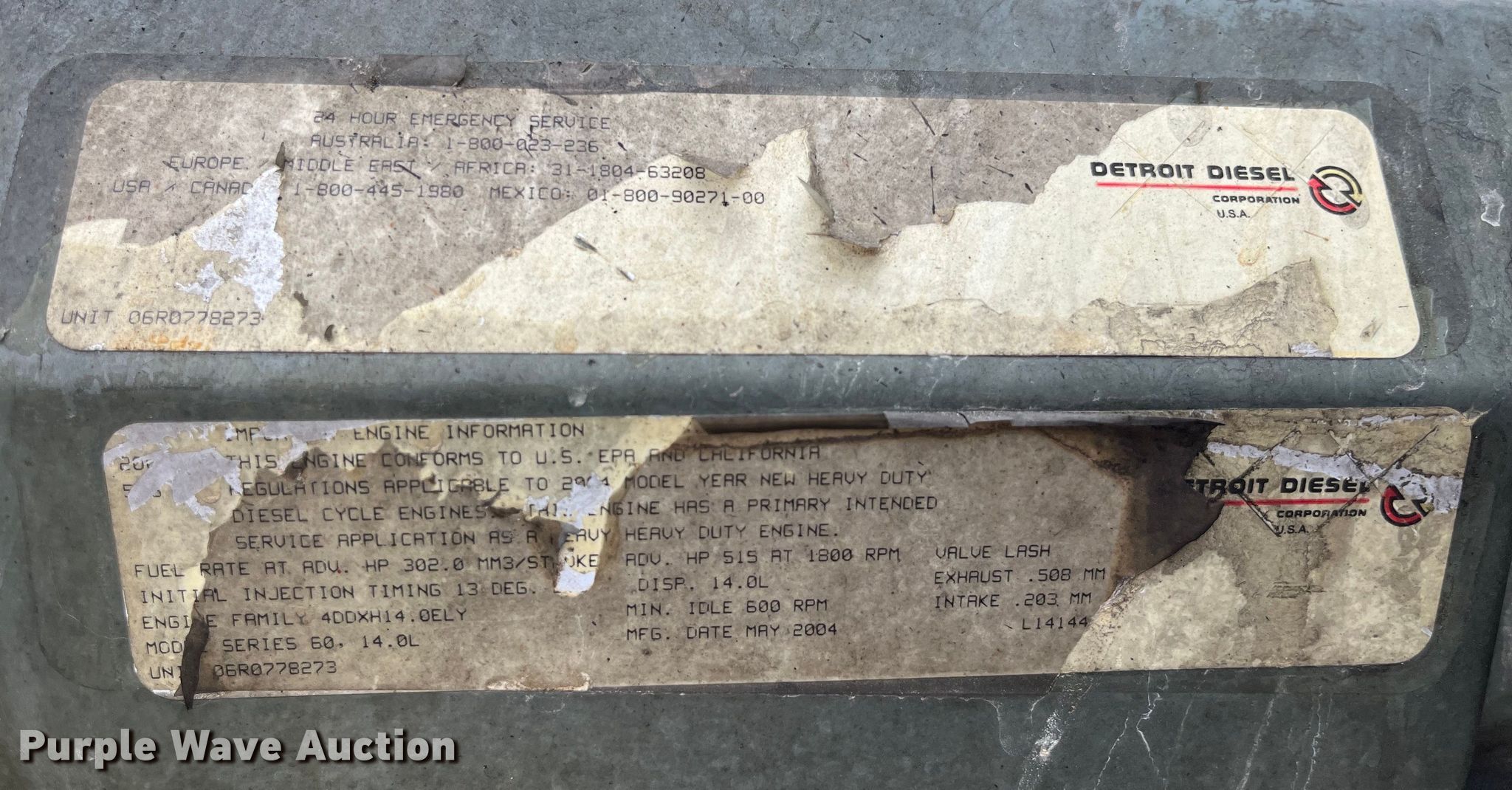 2005 Western Star 4900EX semi truck. Miles: 323,395 on odometer, VIN: 5KJJALCK75PN70983, Unit #: 21. Engine Detroit Series 60, Displacement: 14.0L, Cylinders: 6, Fuel type: Diesel, Engine brake. Transmission Eaton Fuller, Manual. Chassis Axles: Tandem, Differential lock: Inter-axle, Suspension: Air Dump valves, Brakes: Air, GVWR: 52,000 lbs FAWR: 12,000 lbs, IAWR: 20,000 lbs, RAWR: 20,000 lbs. Interior AC, heat, Heated mirrors, Cruise control, Sleeper Sleeper length: 72", Beds: Single, Rear climate control. Features Deck plate: Aluminum, Fifth wheel type: Air operated, sliding, Fuel tank: Dual. Tires Size: 11R22.5. Notes Windshield chipped or cracked, Unit will need to be towed or hauled, Engine issues , Non-operational unit. Illinois title. Title has a lien that will be released following the close of the auction. Title distribution may be delayed up to 30 days from verification of funds. Zac Pruett Inc.. 27957 380th Street. New Salem, IL 62357