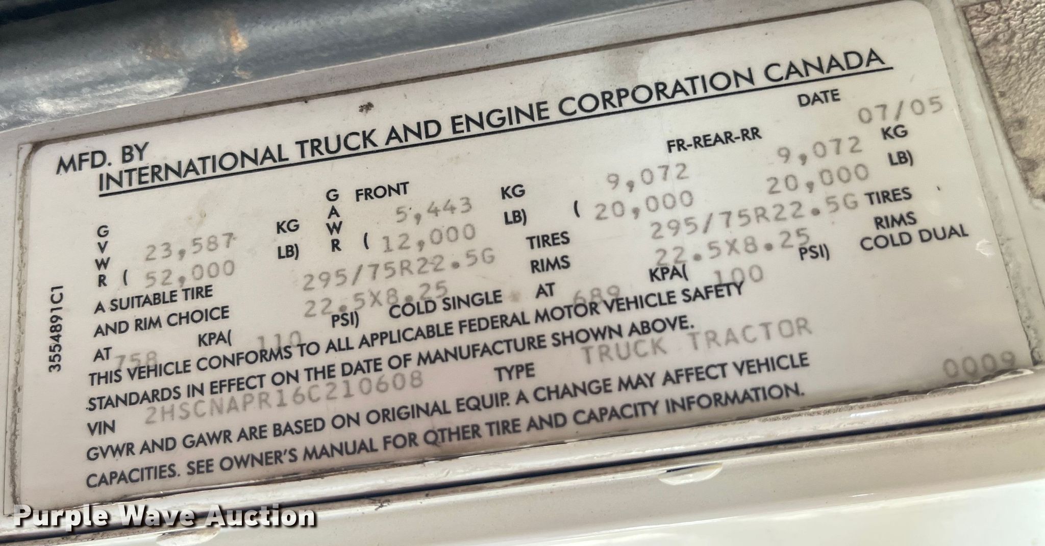 2006 International 9400i semi truck. Miles: 1,194,042 on odometer, Hours: 36,891 on meter, VIN: 2HSCNAPR16C210608, Unit #: 32. Engine Cummins, Serial: 26021949, Displacement: 15.0L, Cylinders: 6, Fuel type: Diesel, Engine brake. Transmission Eaton Fuller, Manual, Speed: 10. Chassis Axles: Tandem, Differential lock: Inter-axle, Suspension: Air Dump valves, Brakes: Air, PTO, Wet kit, GVWR: 52,000 lbs FAWR: 12,000 lbs, IAWR: 20,000 lbs, RAWR: 20,000 lbs, Wheelbase: 228". Interior AC, heat, Heated mirrors, Cruise control, Air ride cab, Sleeper Sleeper length: 66", Beds: Single, Rear climate control. Features Deck plate: Aluminum, Fifth wheel type: Fixed, Fuel tank: Dual. Tires Size: 295/75R22.5. Notes Dash warning indicator: (6) faults, Windshield chipped or cracked, Oil leak, Hydraulic oil leak, Engine issues, locked up , Non-operational unit. Illinois title. Title has a lien that will be released following the close of the auction. Title distribution may be delayed up to 30 days from verification of funds. 8751 Arenzville Road. Beardstown, IL 62618