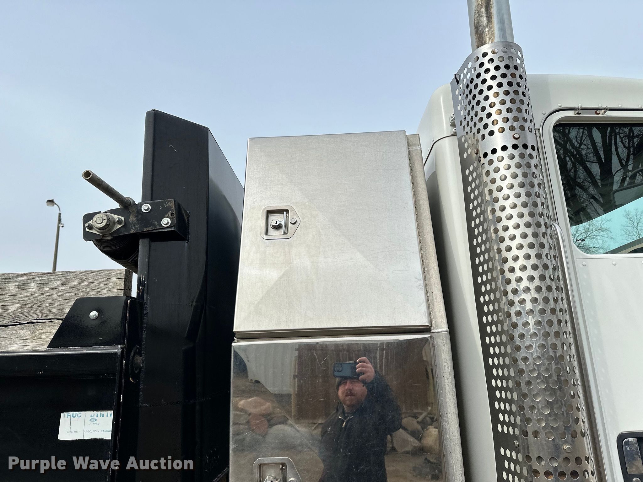 2013 Kenworth T370 dump truck. Miles: 113,601 on odometer, Hours: 7,422 on meter, VIN: 2NKHHN7X9DM341237. Engine Paccar PX-8, Displacement: 8.3L, Cylinders: 6, Fuel type: Diesel, HP: 270. Transmission Allison, Automatic. Chassis Axles: Single, Differential lock: Inter-axle, Suspension: Air, Brakes: Air, PTO, GVWR: 33,000 lbs FAWR: 12,000 lbs. Interior AC, Heat, Heated mirrors, Power windows, Cruise control, Brake controller. Features Dump bed Beau Roc ULT 14.00X" 15" X24", 14' L x 8' W, Side height: 19", Side board height: 7.5", Bed type: Steel, Roll tarp, Ram: Single, End gate: Manual, Auxiliary fuel tank Capacity: 36 gallons, Pump. Tires Size: 11R22.5. Minnesota title. Title has a lien that will be released following the close of the auction. Title distribution may be delayed up to 30 days from verification of funds. Turner Bros Inc. - Open inspection April 13 and April 18. 12540 Nevada Ave S. Savage, MN 55378
