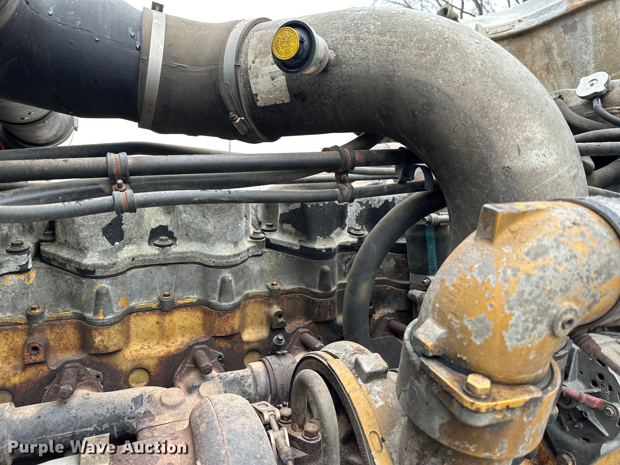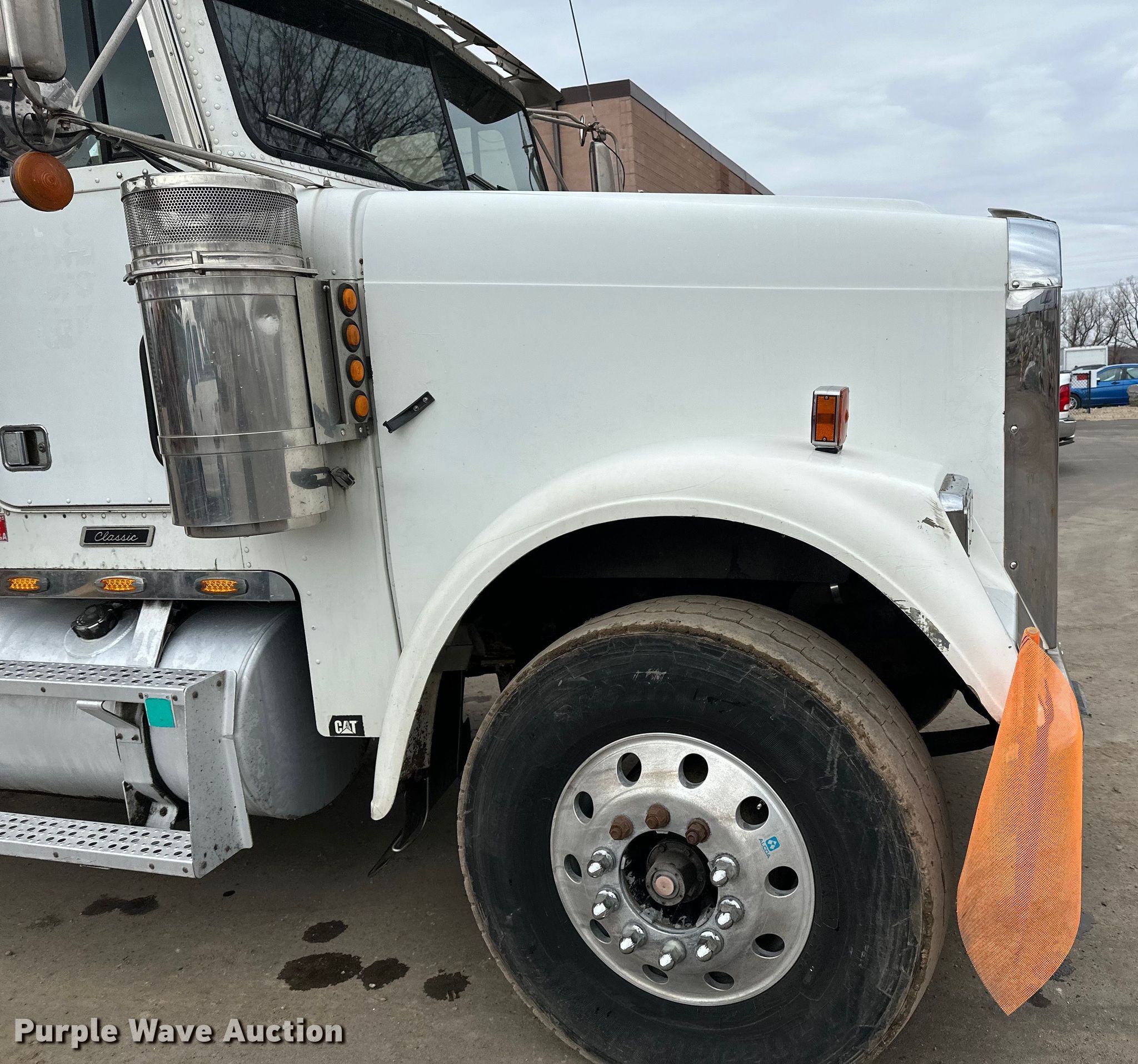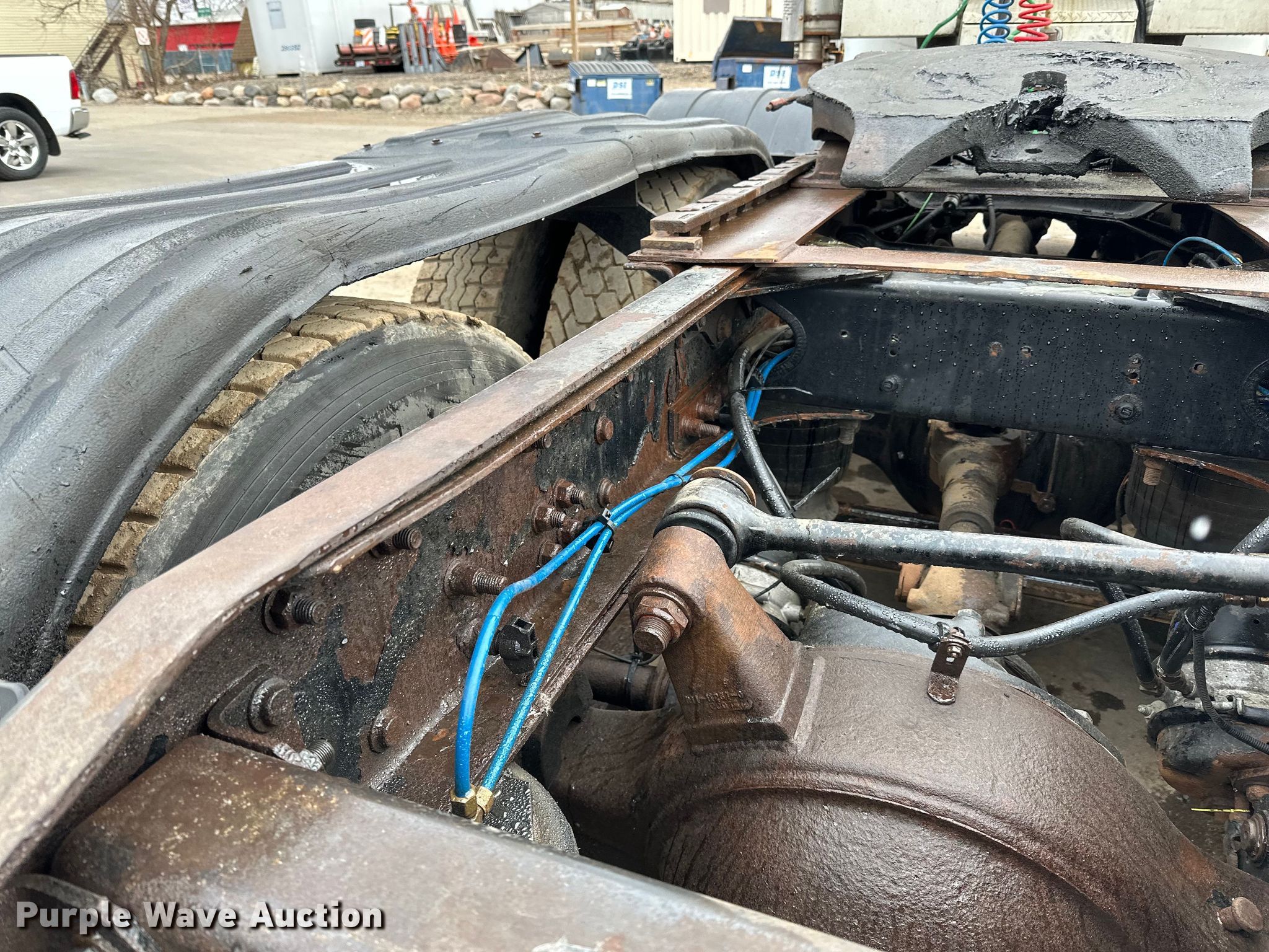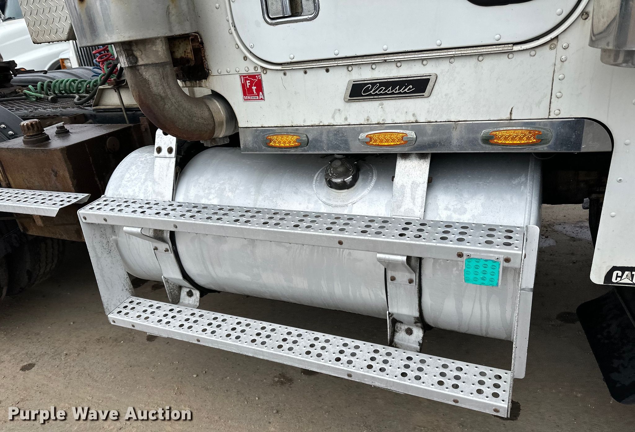 2000 Freightliner FLD120 semi truck. Miles: 831,765 on odometer, Hours: 4,999 on meter, VIN: 1FUPFXYB0YLG39254. Engine Caterpillar C15, Cylinders: 6, Fuel type: Diesel, HP: 450, kW: 335, Engine brake. Transmission Eaton Fuller, Manual, Speed: 18. Chassis Axles: Triple, Pusher axle, Differential lock: Inter-axle, Suspension: Air Dump valves, Brakes: Air, PTO, Wet kit. Interior AC, Heat, Heated mirrors, Cruise control, Air ride cab. Features Deck plate: Steel, Fifth wheel type: Air operated, Sliding, Fuel tank: Dual. Tires Front: 315/80R22.5, Rear: 11R24.5, Lift axle: 295/75R22.5. Minnesota title. Title distribution may be delayed up to 14 days from verification of funds. Turner Bros Inc. - Open inspection April 13 and April 18. 12540 Nevada Ave S. Savage, MN 55378